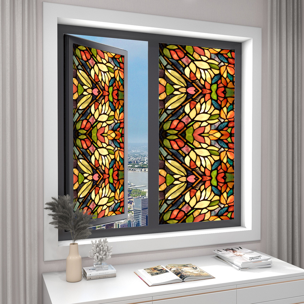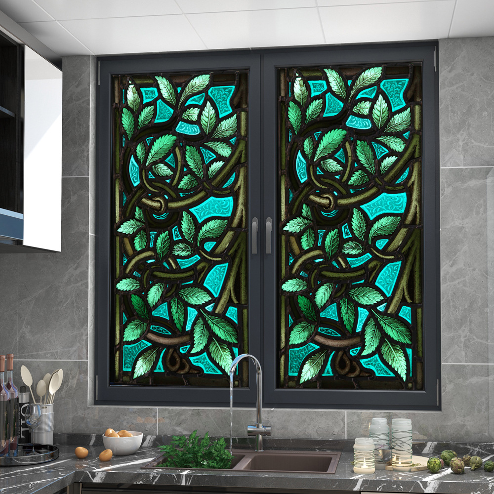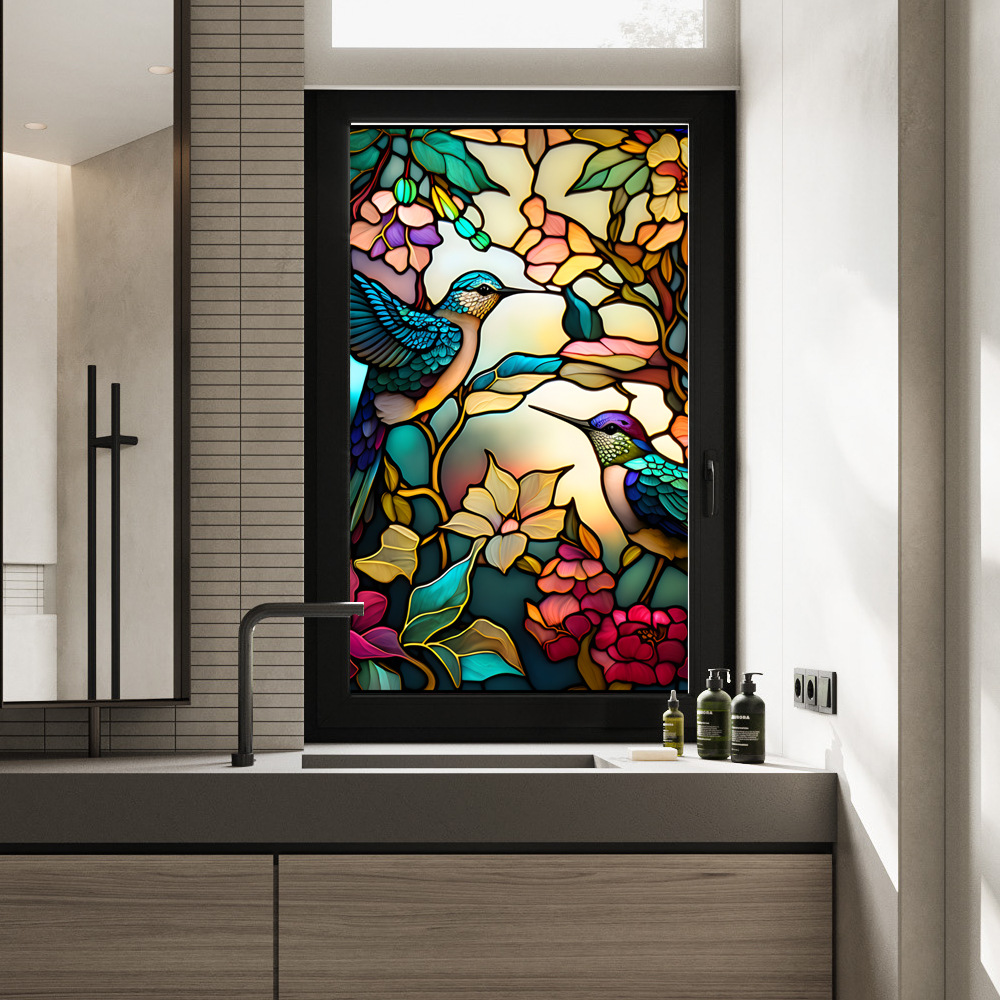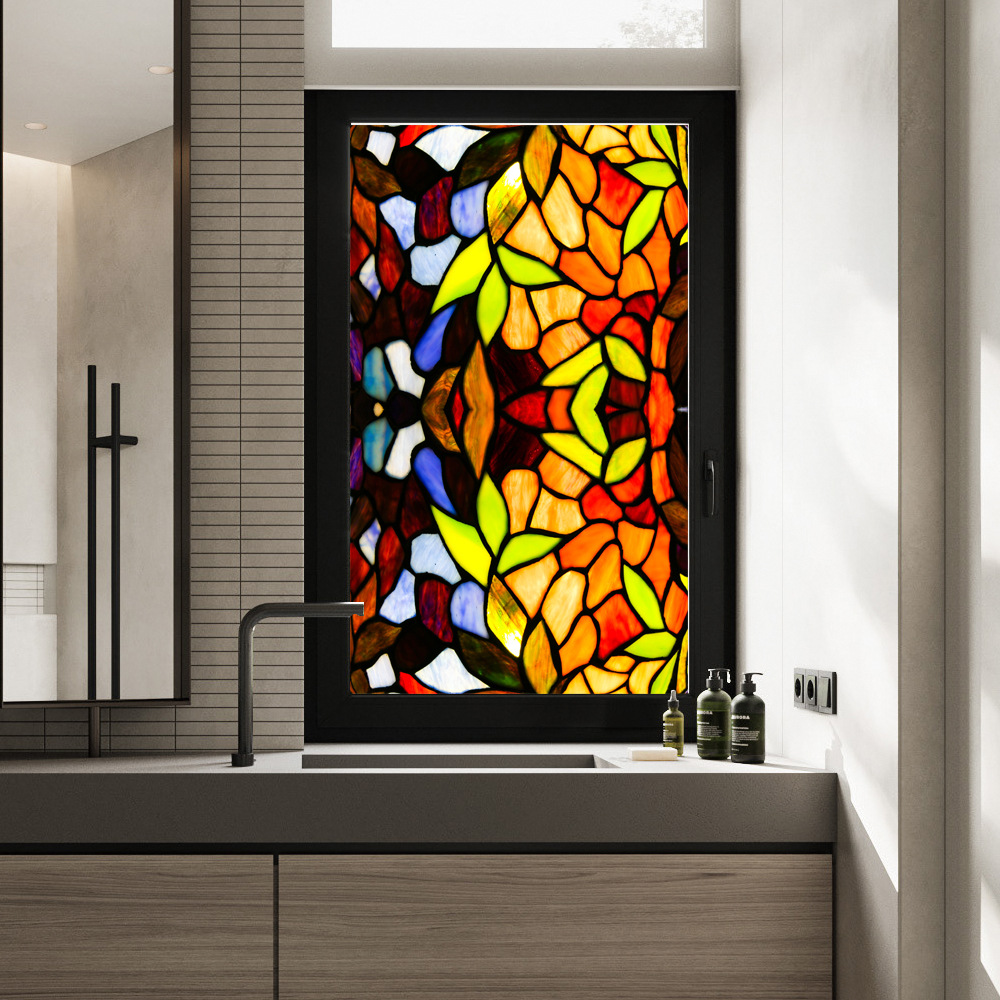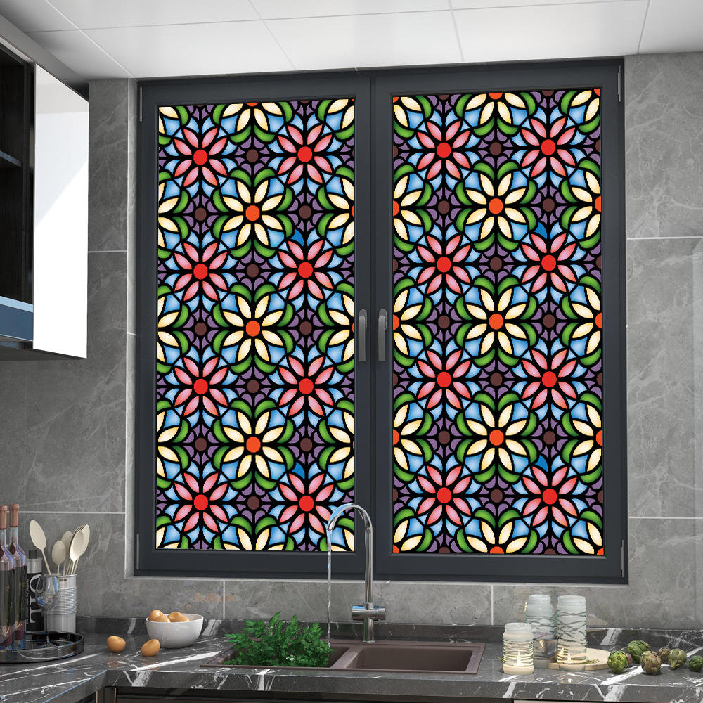 BL112-191 색 복고풍 꽃과 새 PVC 정전기 유리 스티커 접착제 창 필름 이동식 유리 창 그릴