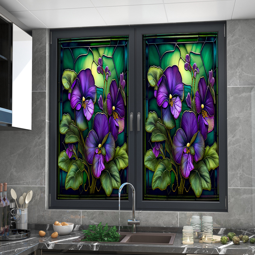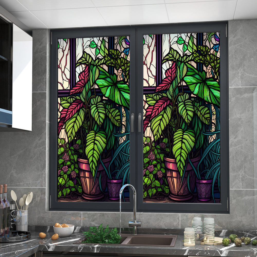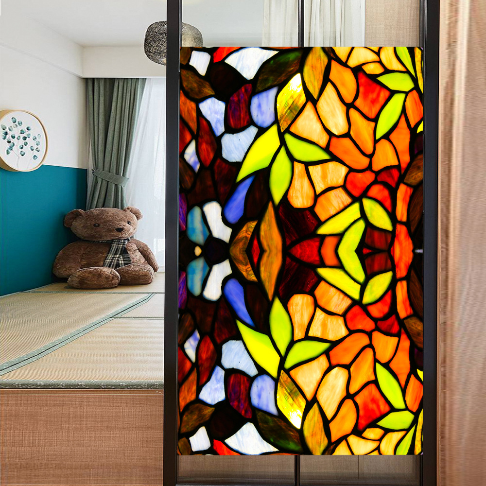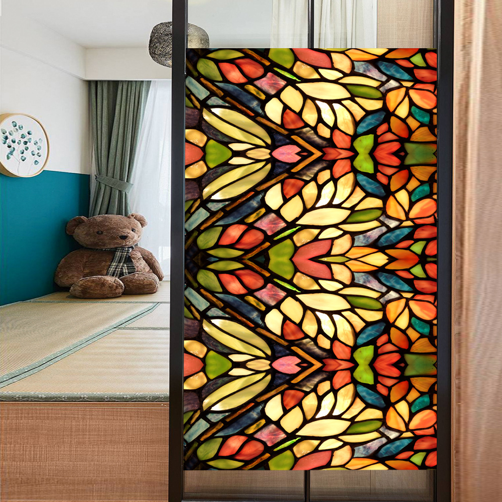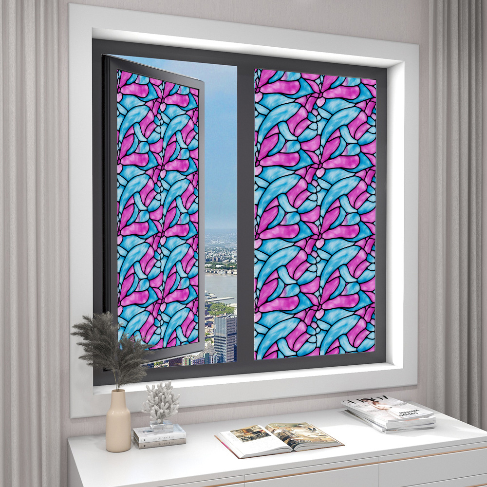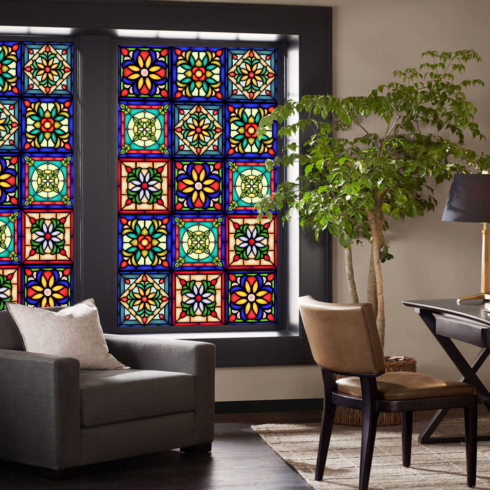 BL112-191 색 복고풍 꽃과 새 PVC 정전기 유리 스티커 접착제 창 필름 이동식 유리 창 그릴