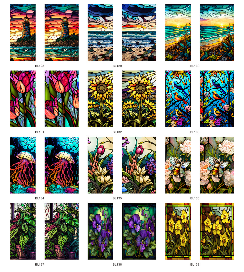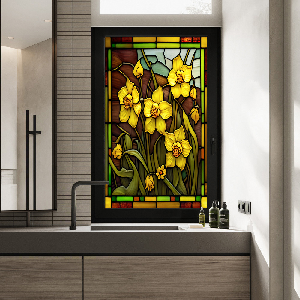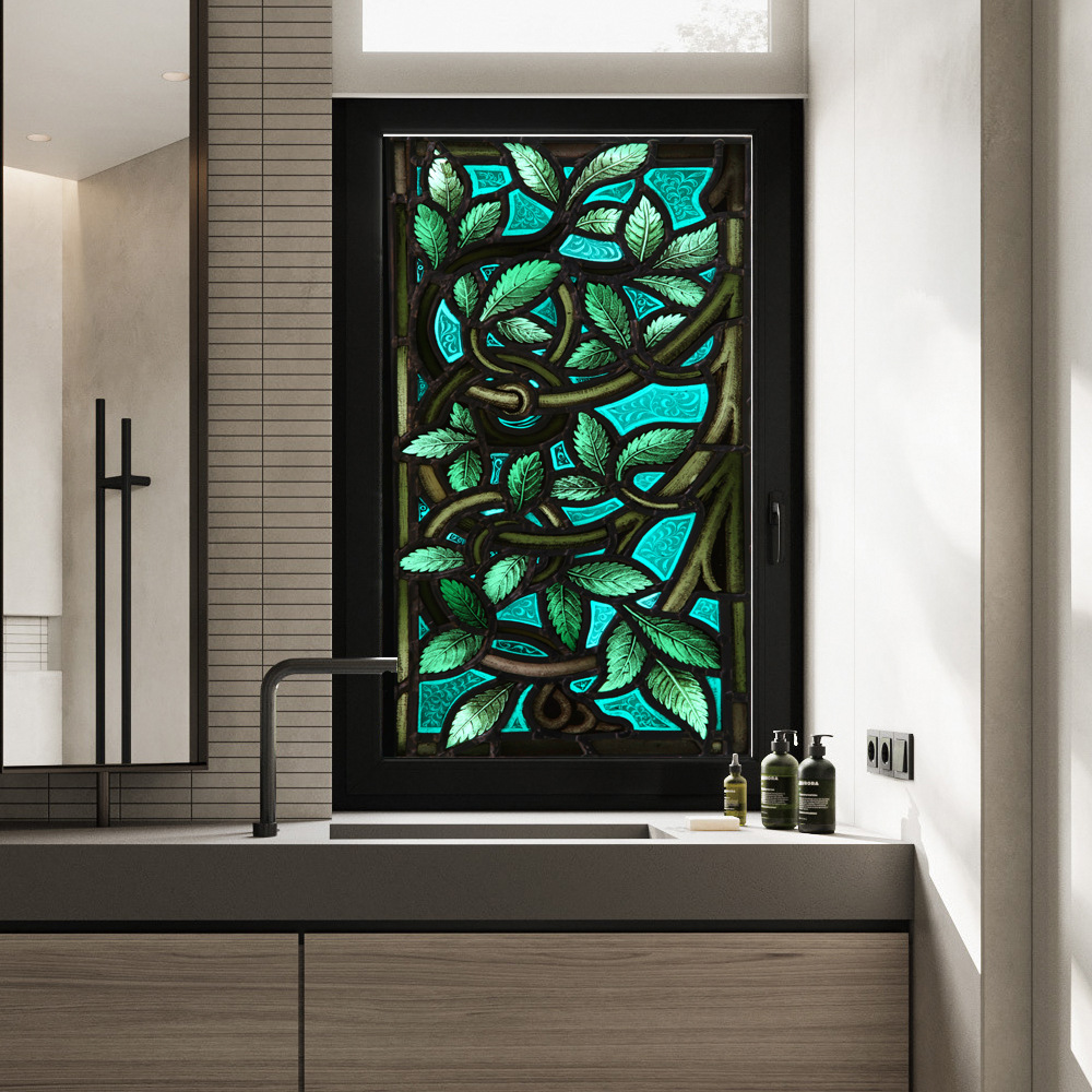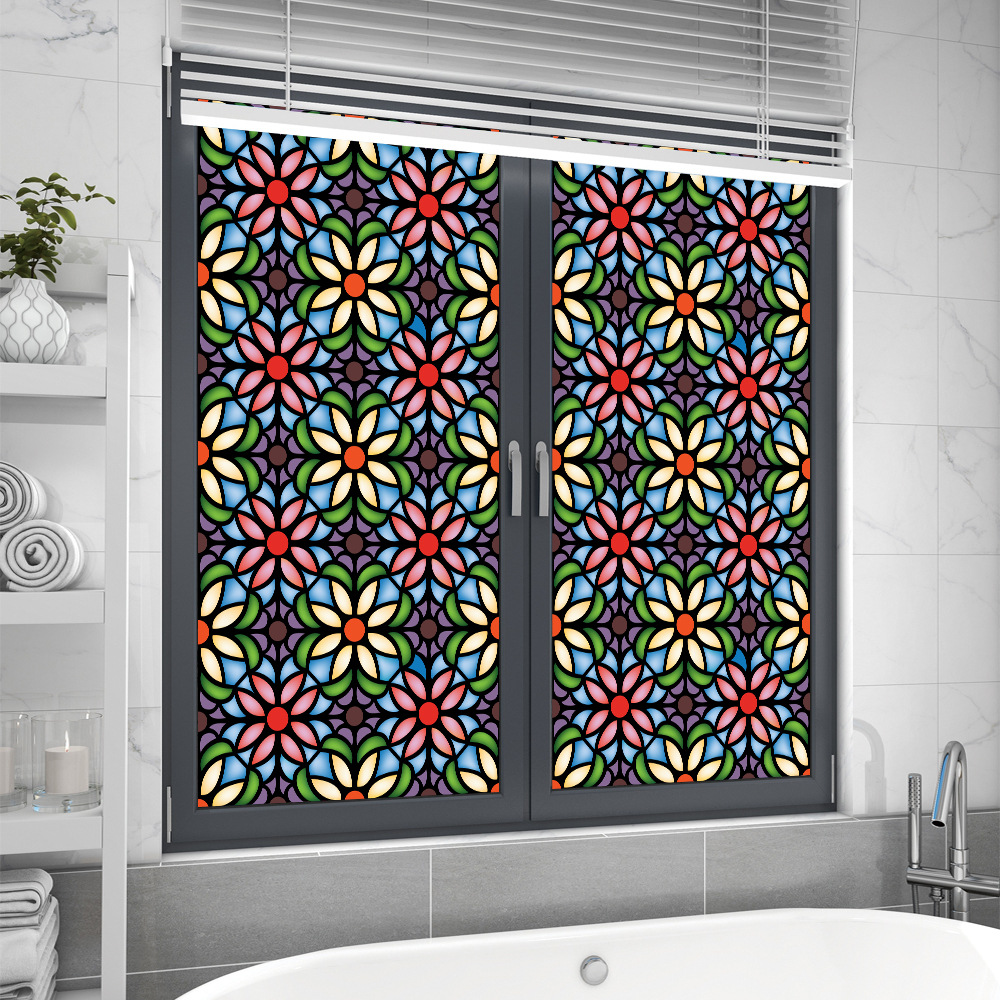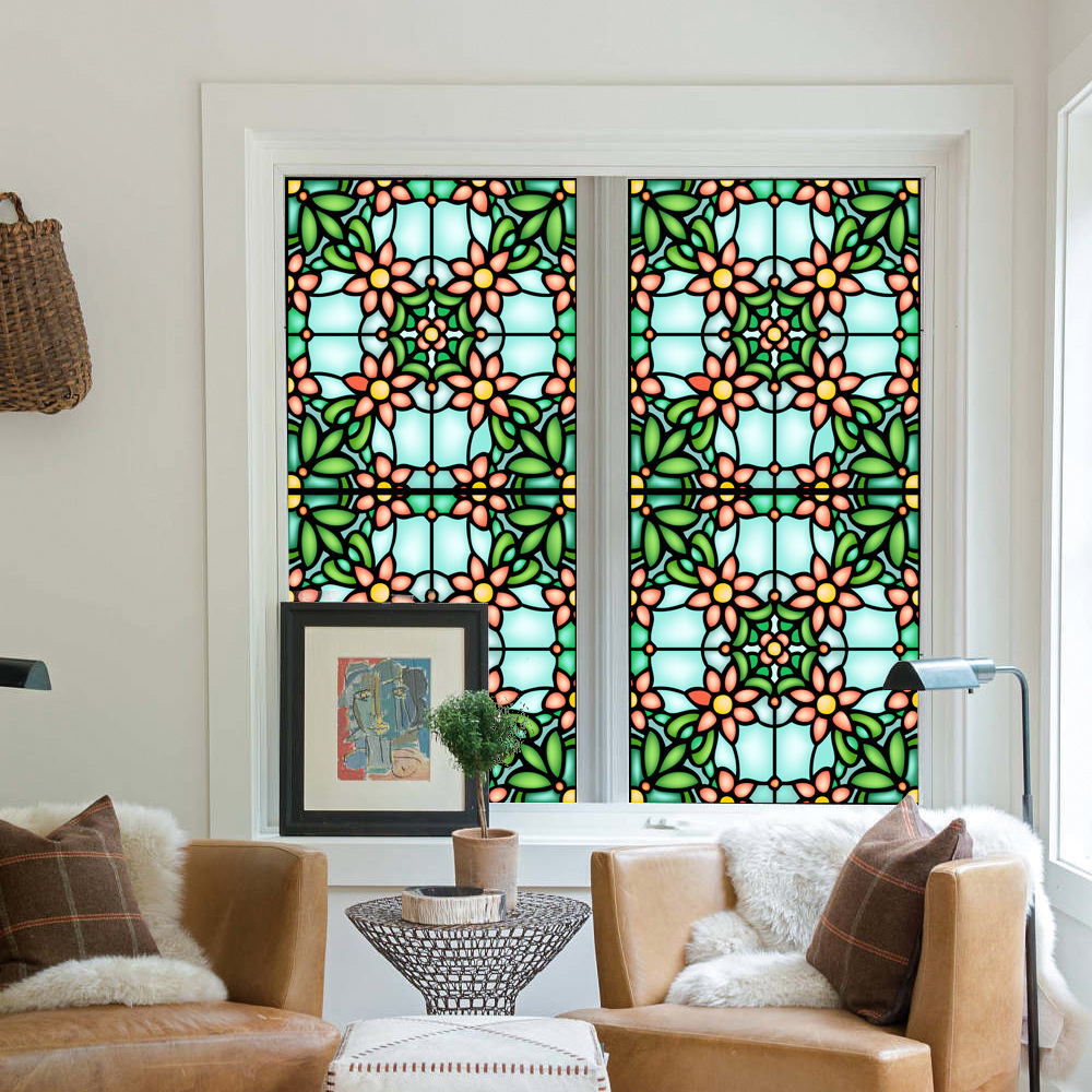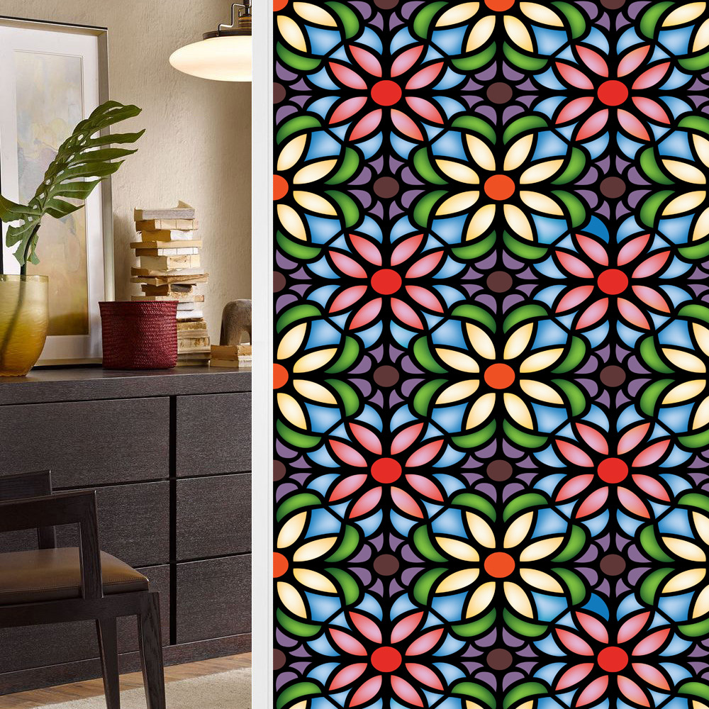 BL112-191 색 복고풍 꽃과 새 PVC 정전기 유리 스티커 접착제 창 필름 이동식 유리 창 그릴