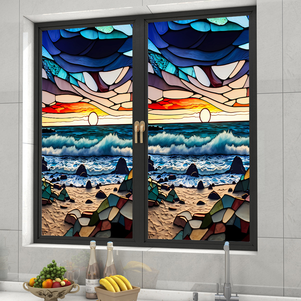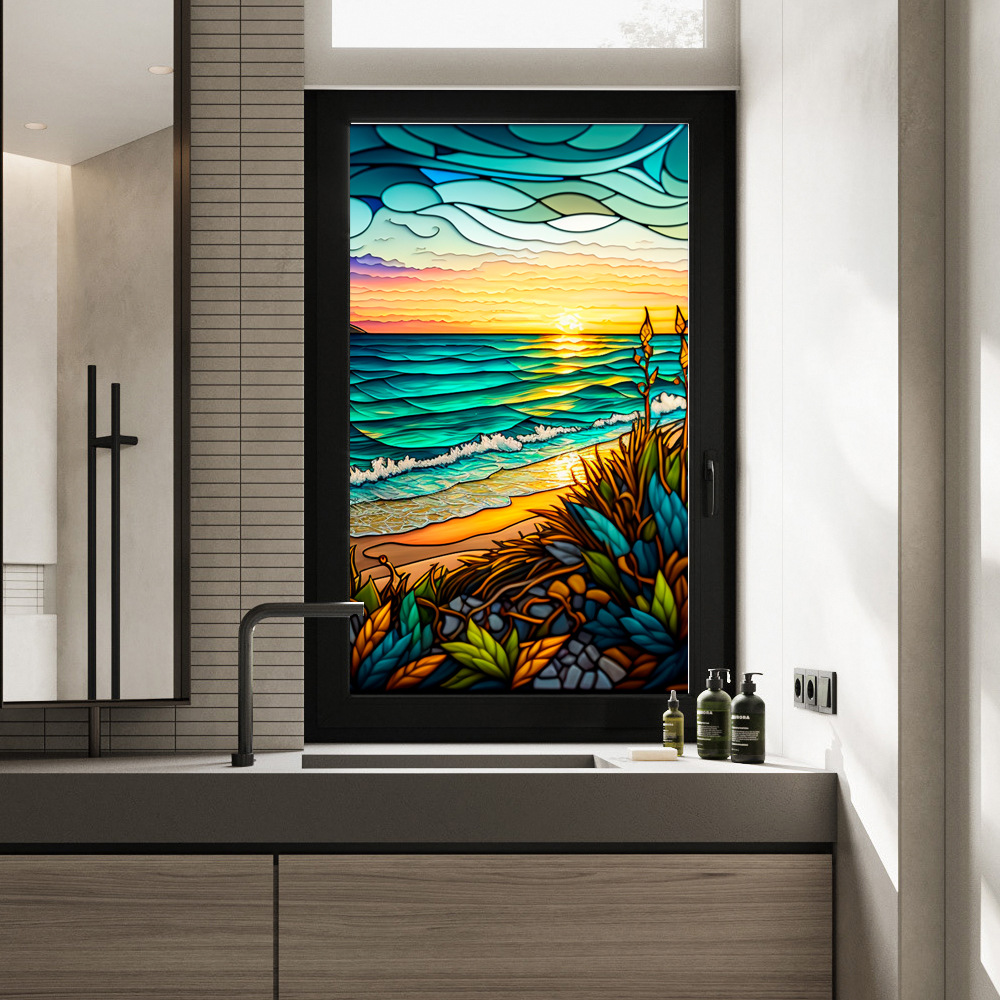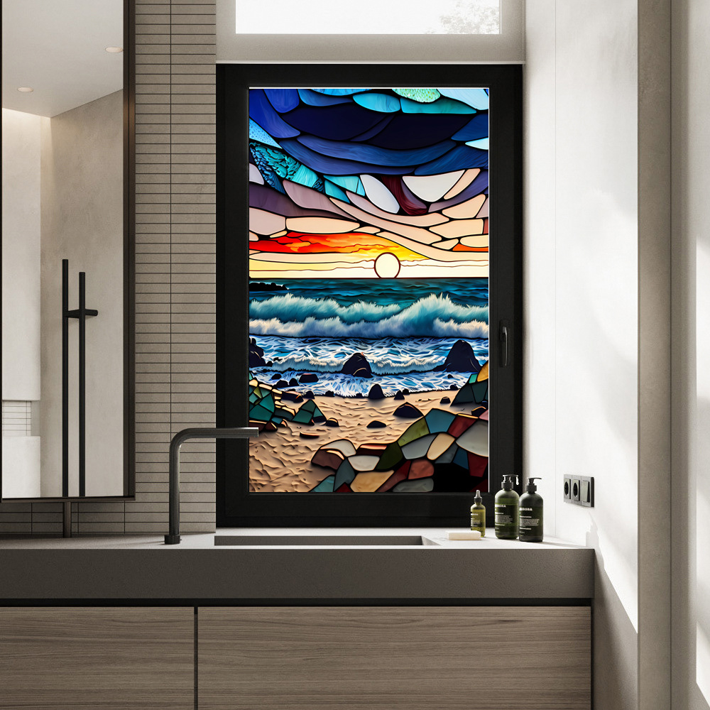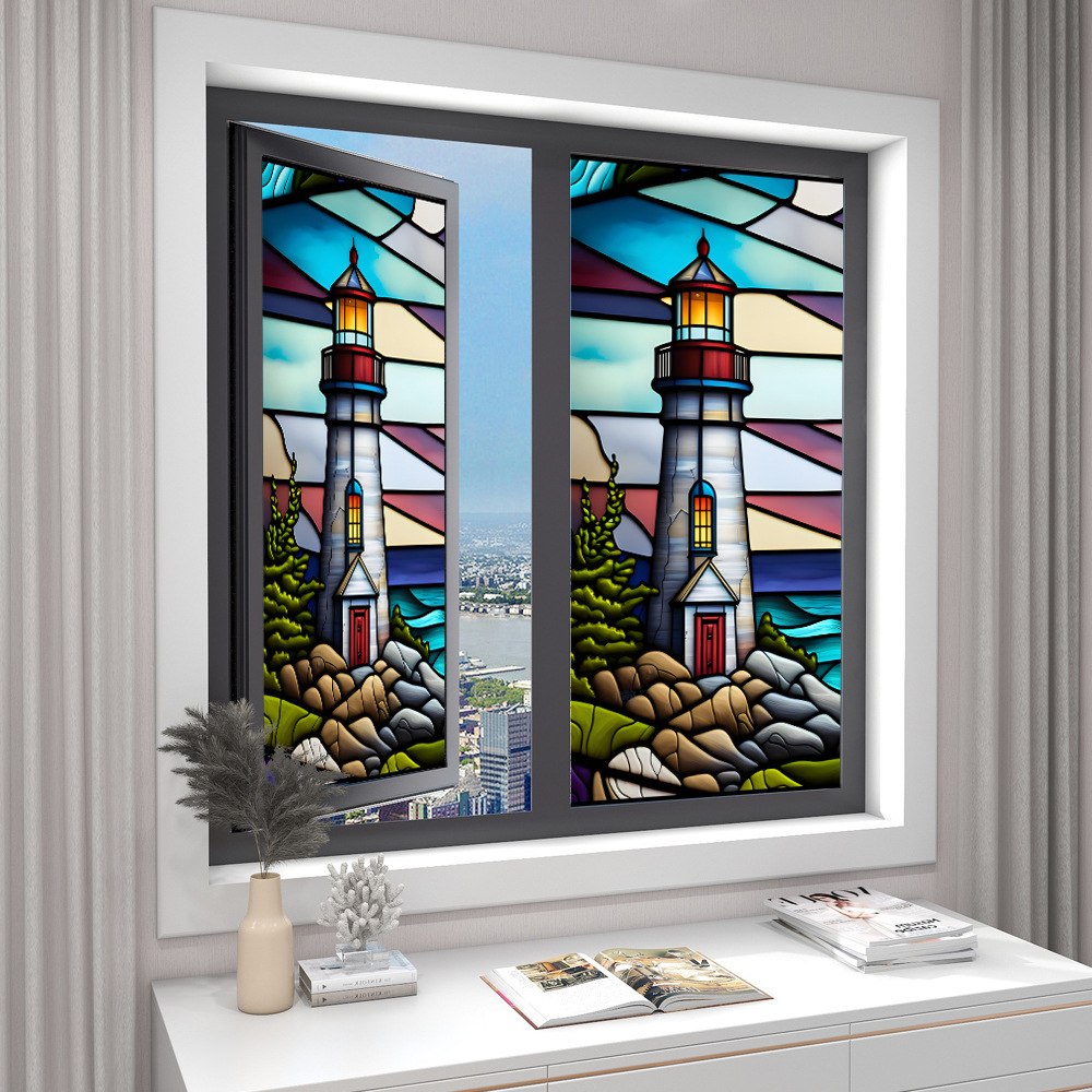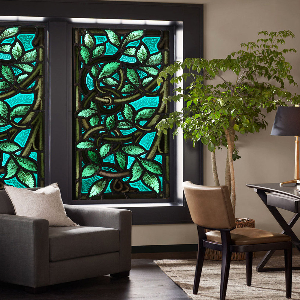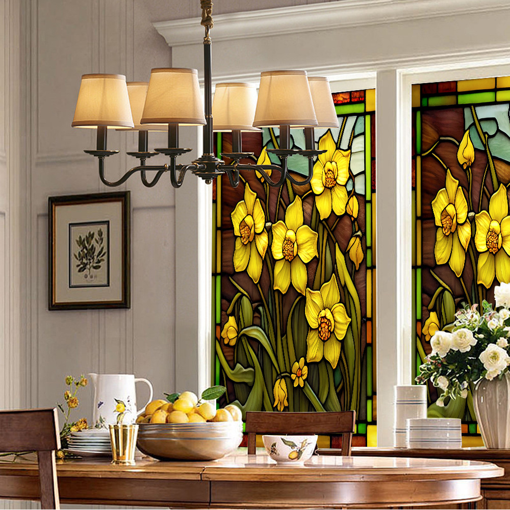 BL112-191 색 복고풍 꽃과 새 PVC 정전기 유리 스티커 접착제 창 필름 이동식 유리 창 그릴
