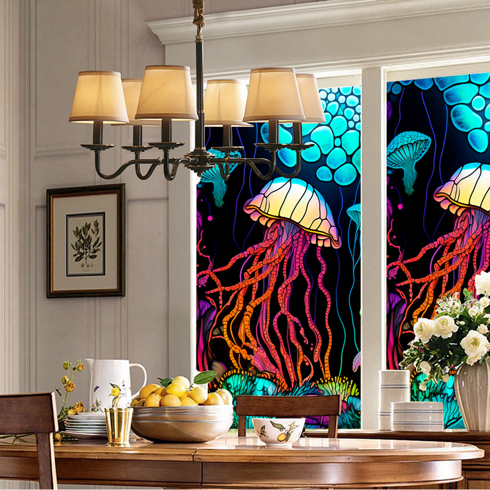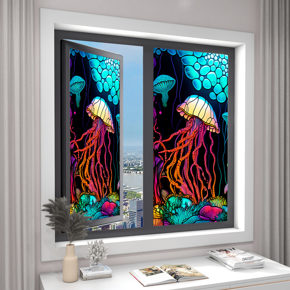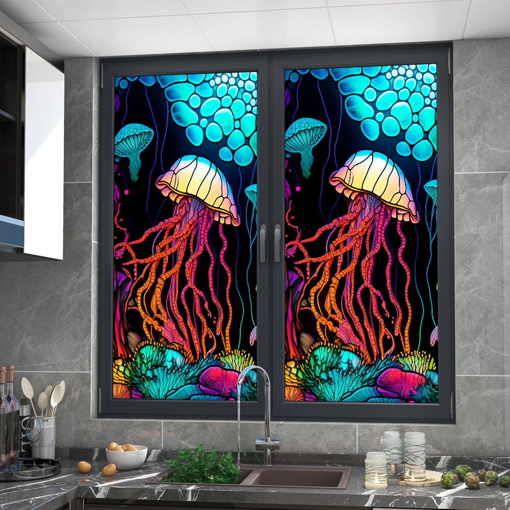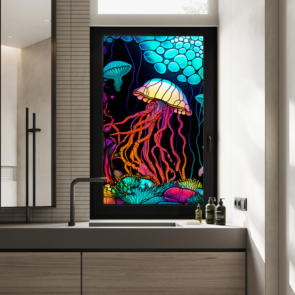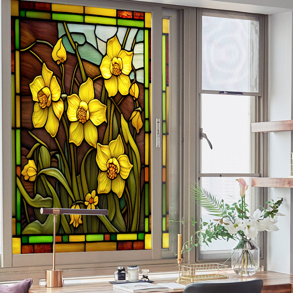 BL112-191 색 복고풍 꽃과 새 PVC 정전기 유리 스티커 접착제 창 필름 이동식 유리 창 그릴