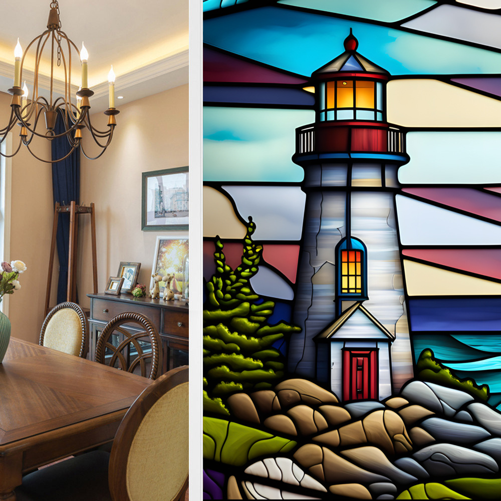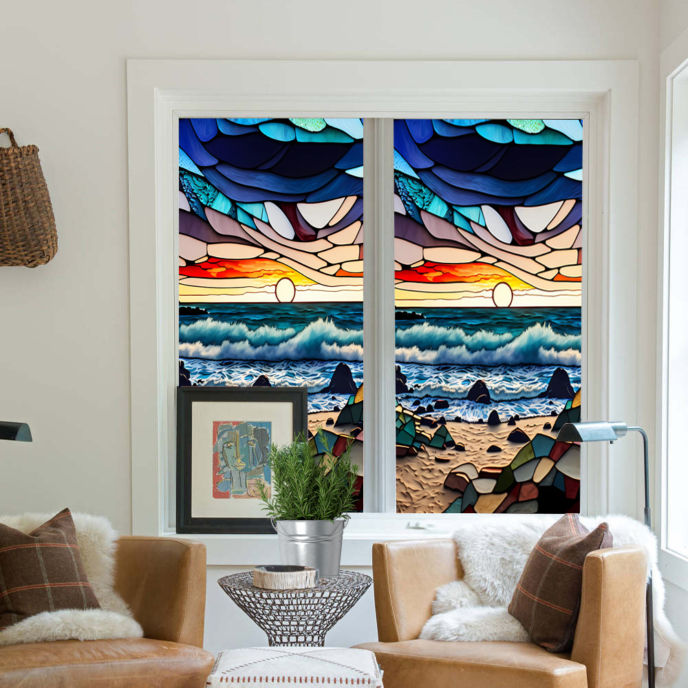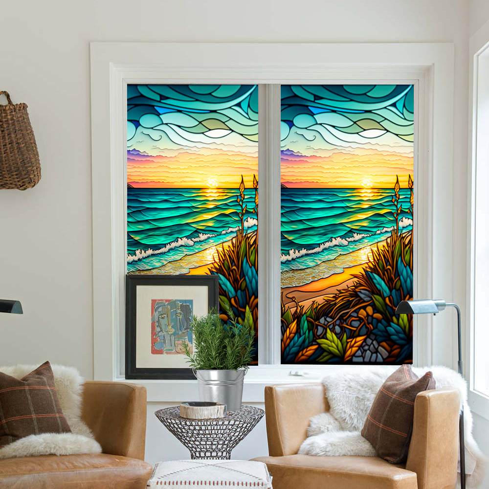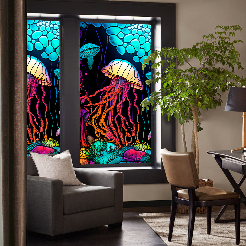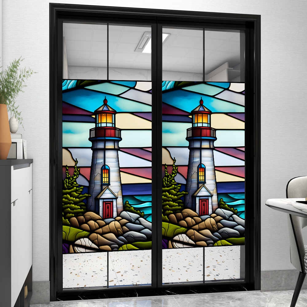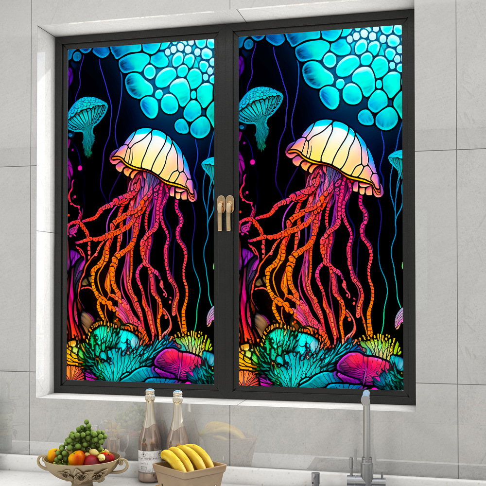 BL112-191 색 복고풍 꽃과 새 PVC 정전기 유리 스티커 접착제 창 필름 이동식 유리 창 그릴