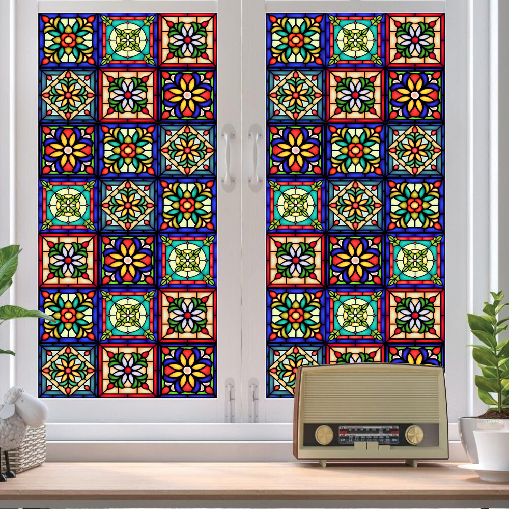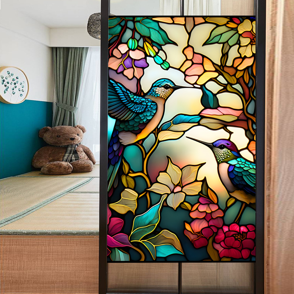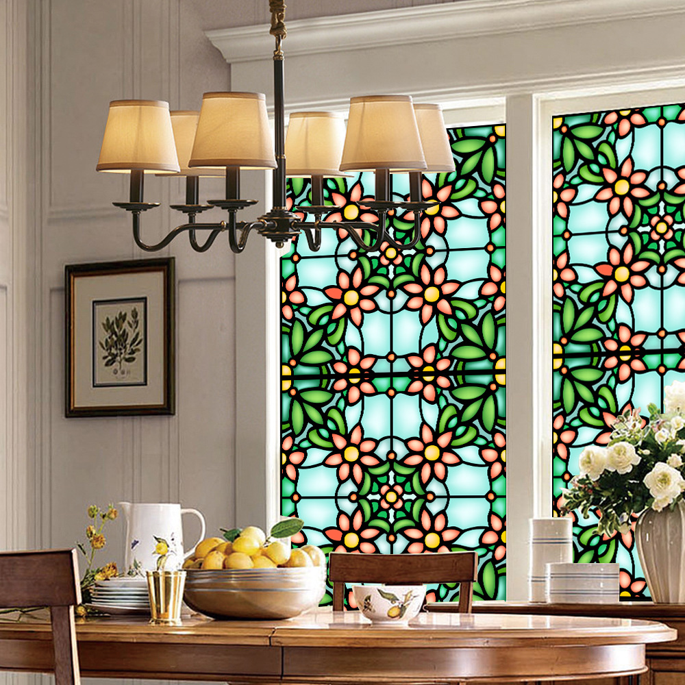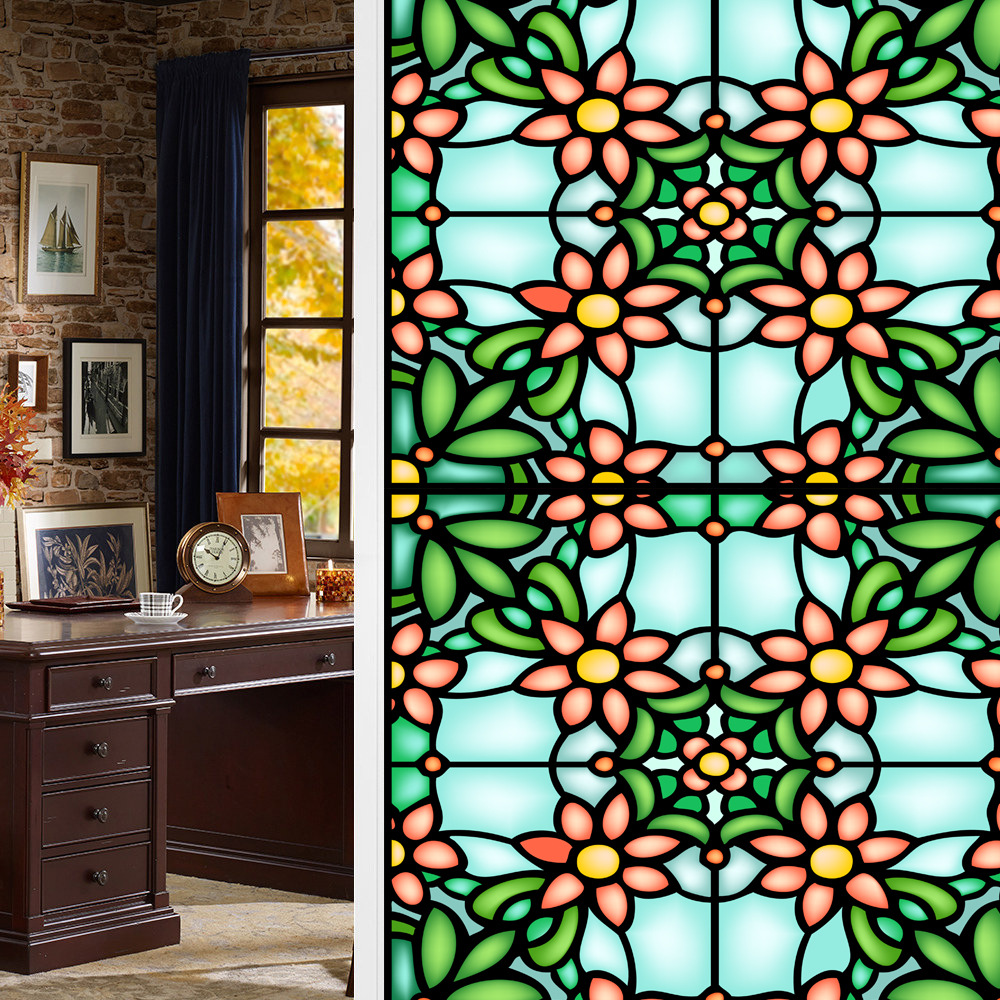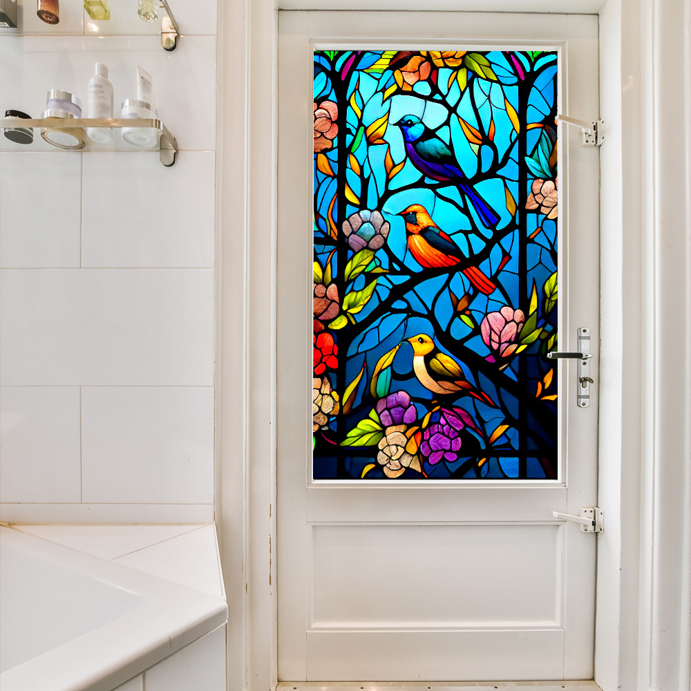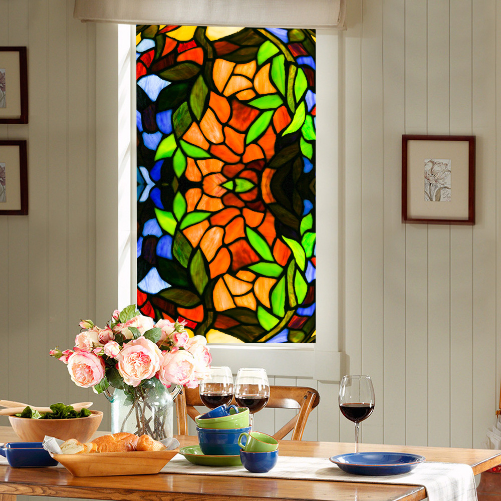 BL112-191 색 복고풍 꽃과 새 PVC 정전기 유리 스티커 접착제 창 필름 이동식 유리 창 그릴스토어 가기