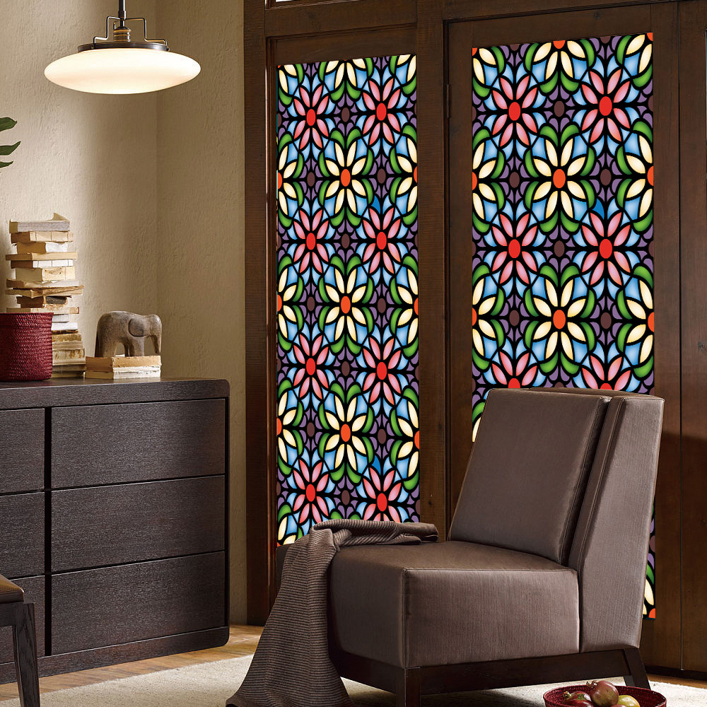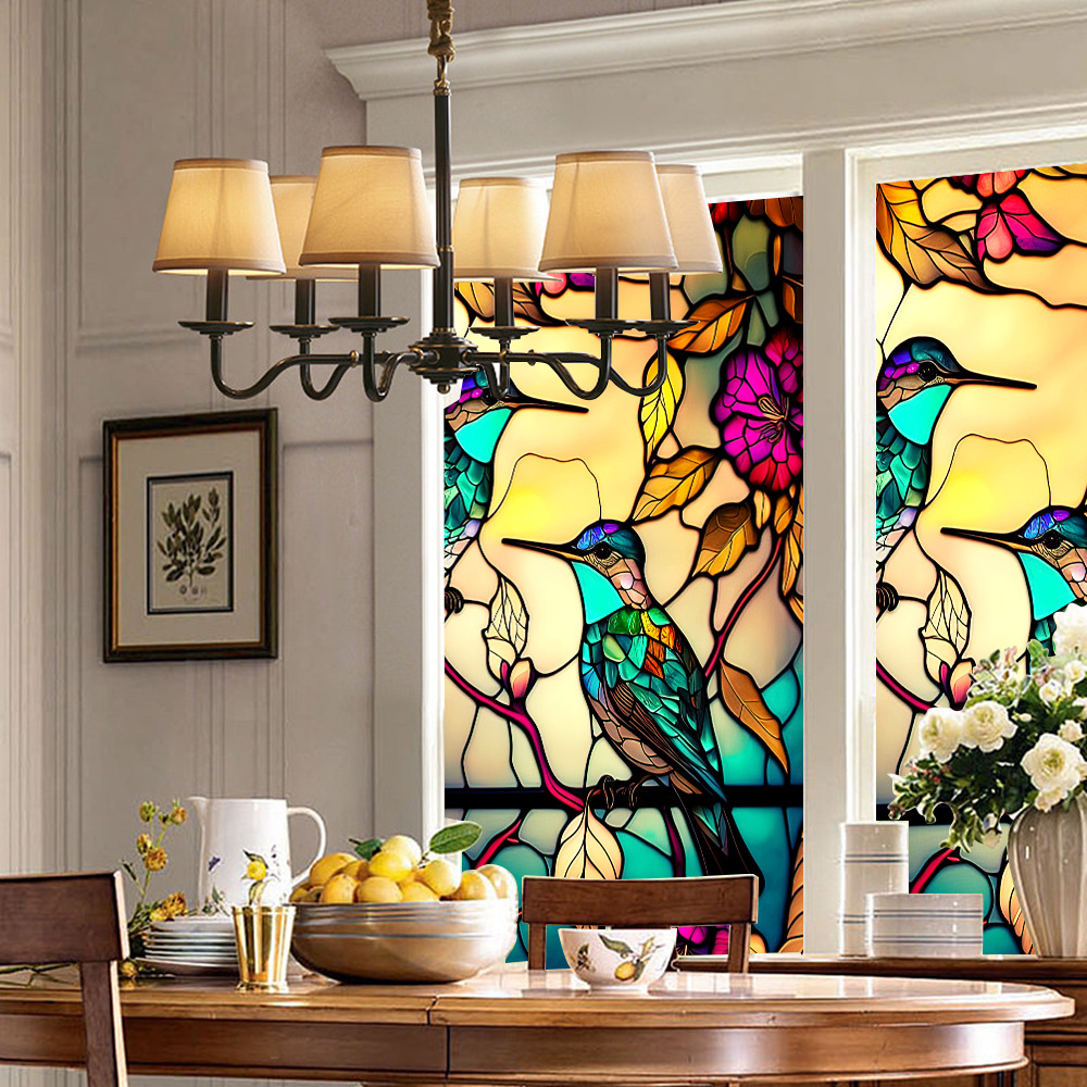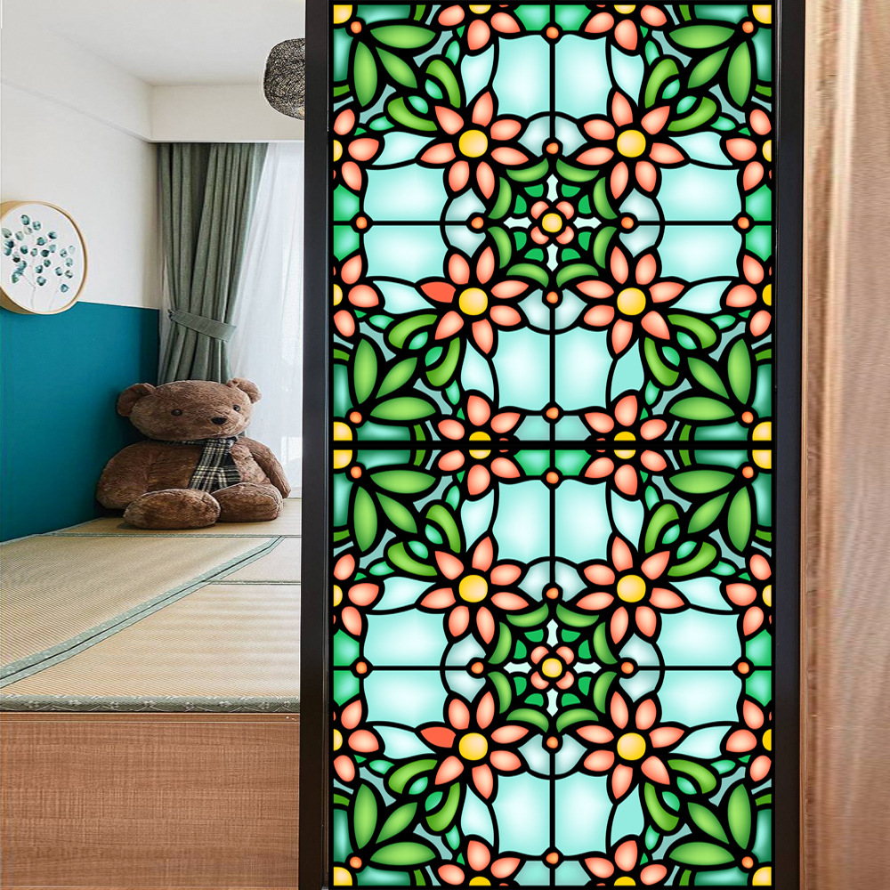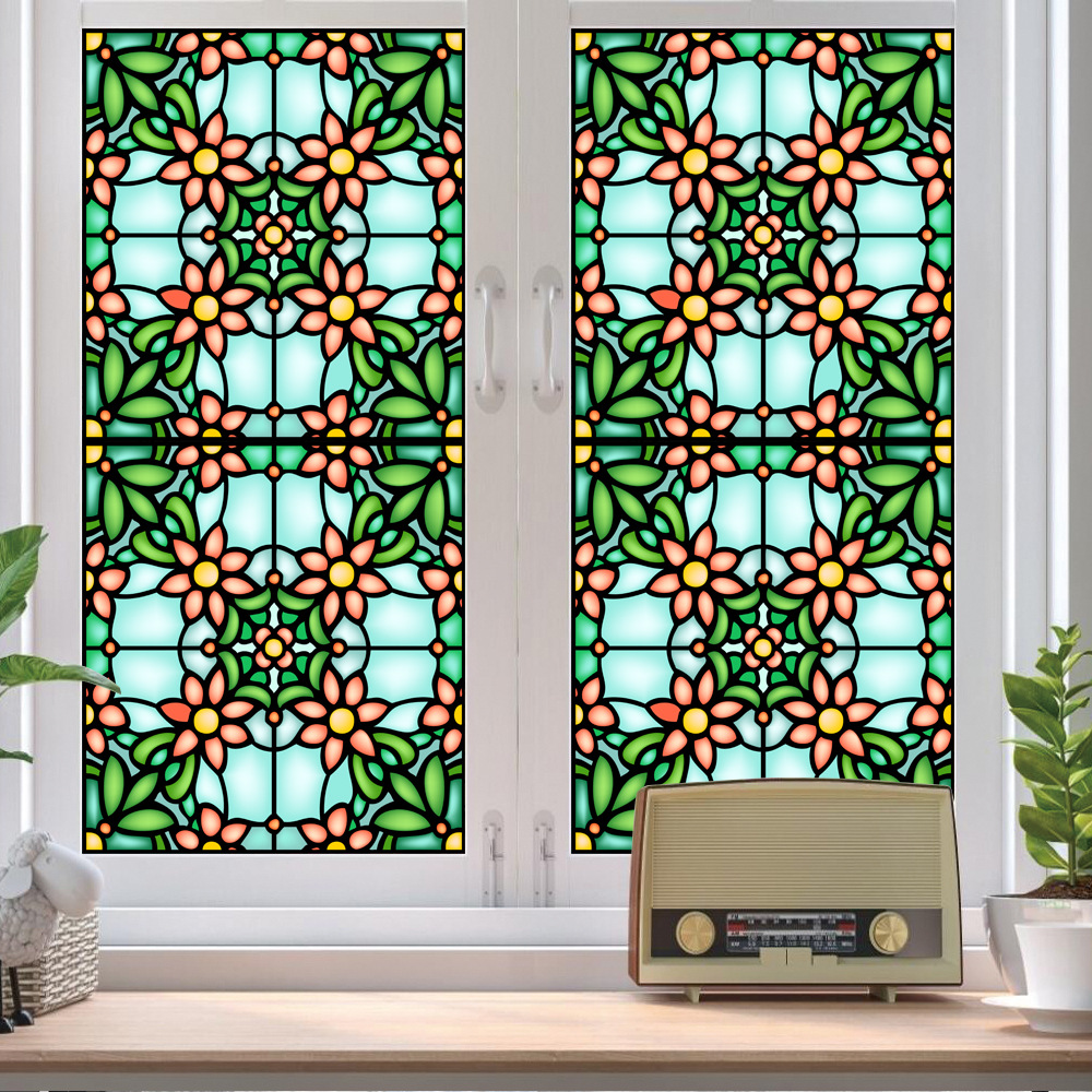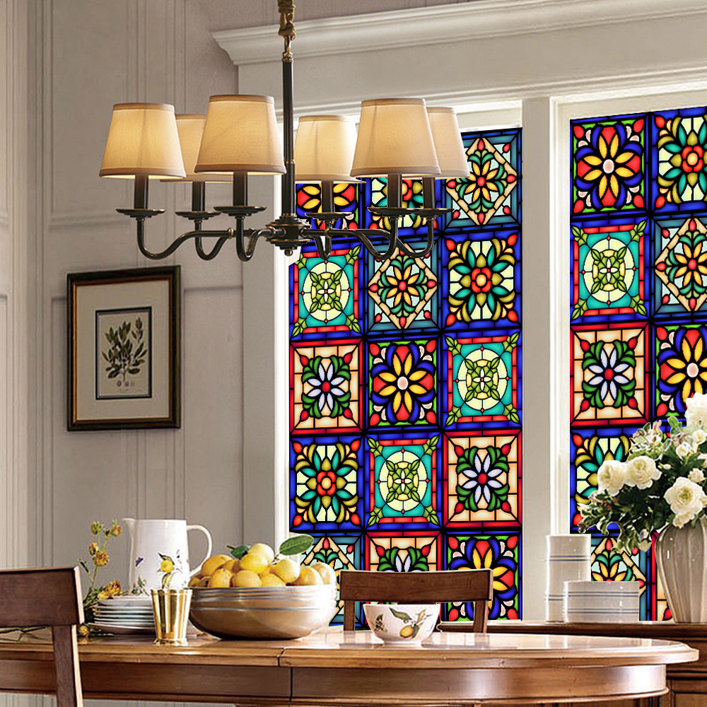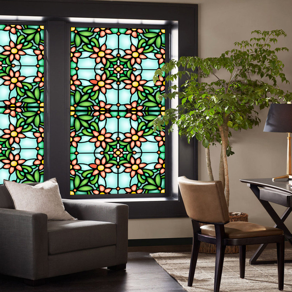 BL112-191 색 복고풍 꽃과 새 PVC 정전기 유리 스티커 접착제 창 필름 이동식 유리 창 그릴스토어 가기