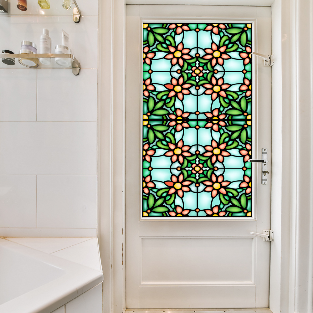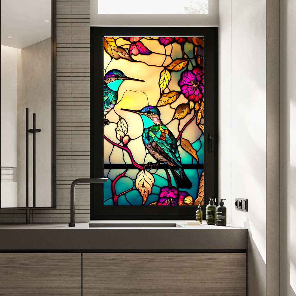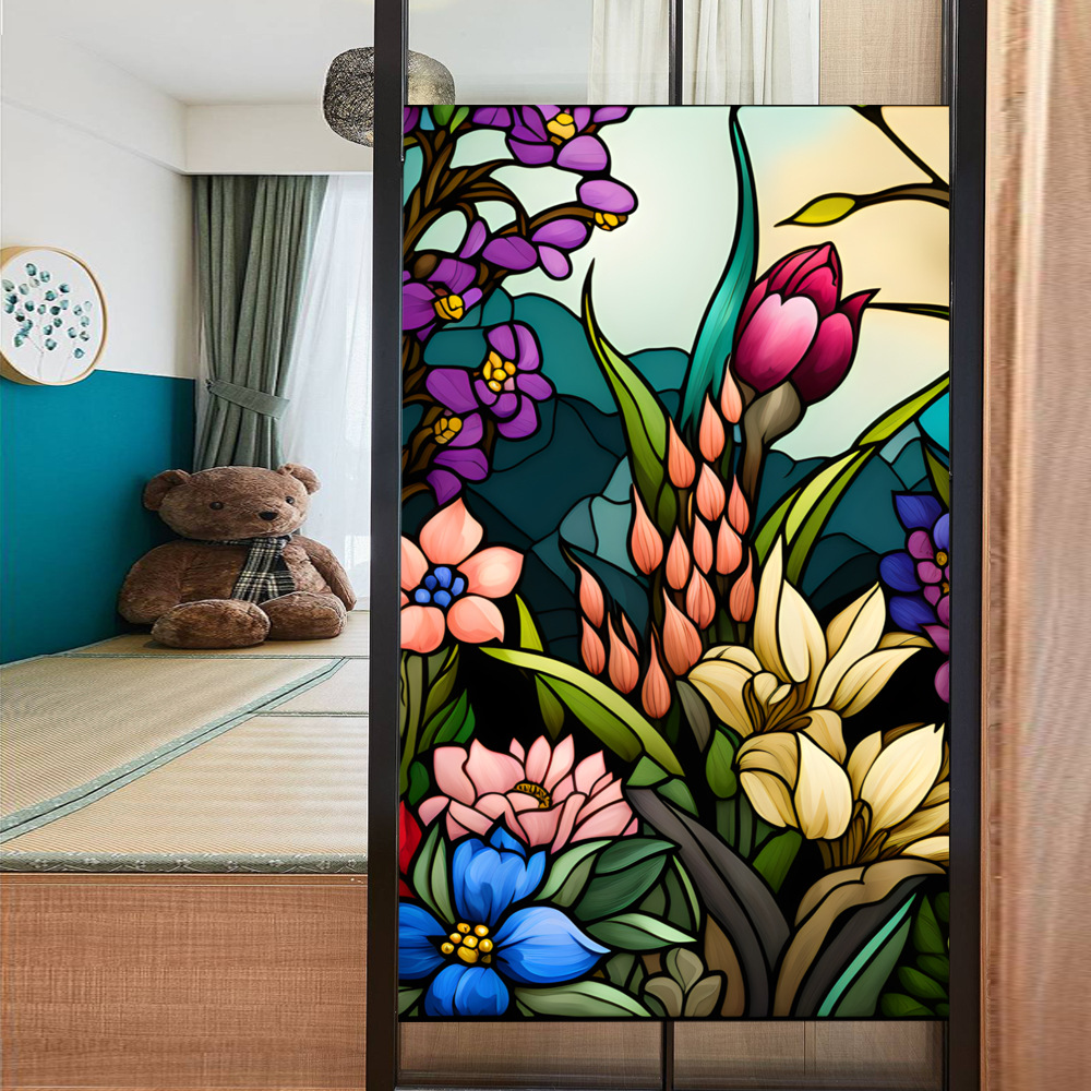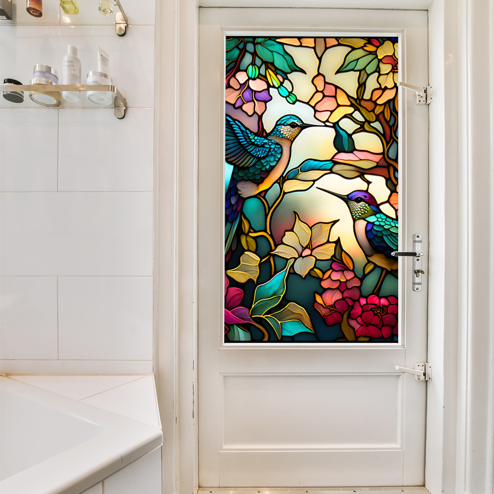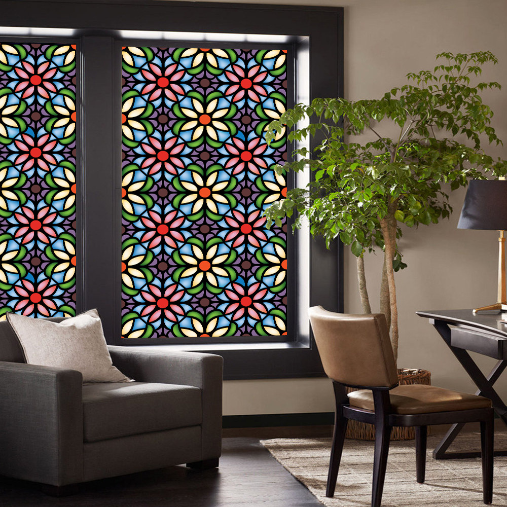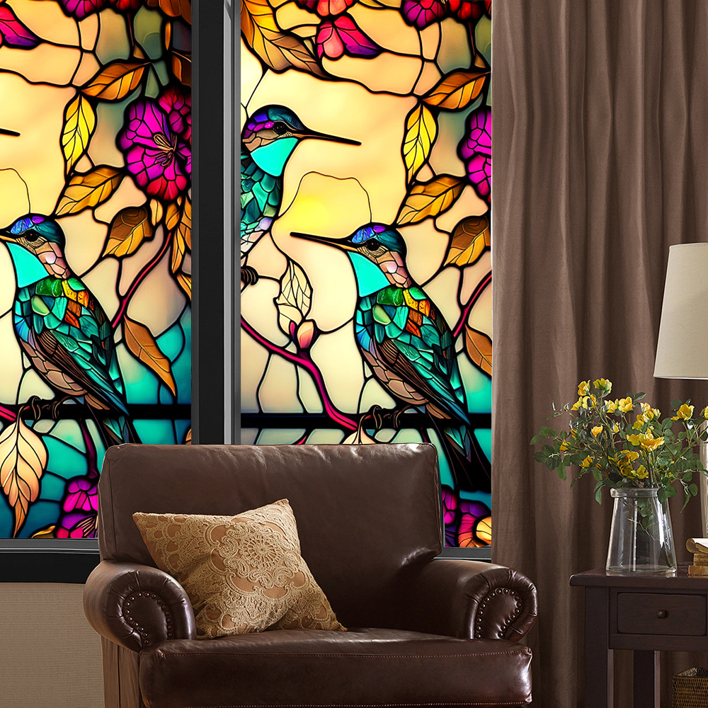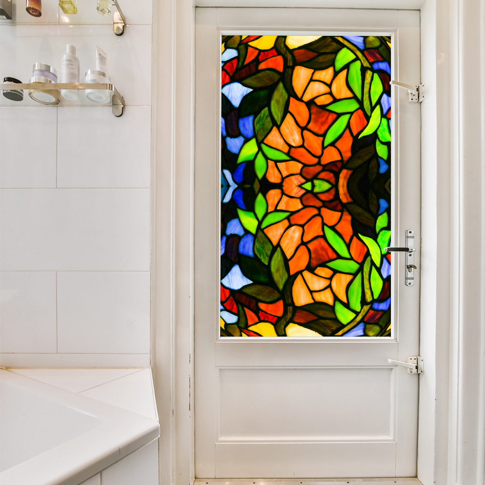 BL112-191 색 복고풍 꽃과 새 PVC 정전기 유리 스티커 접착제 창 필름 이동식 유리 창 그릴스토어 가기