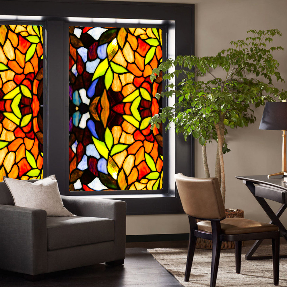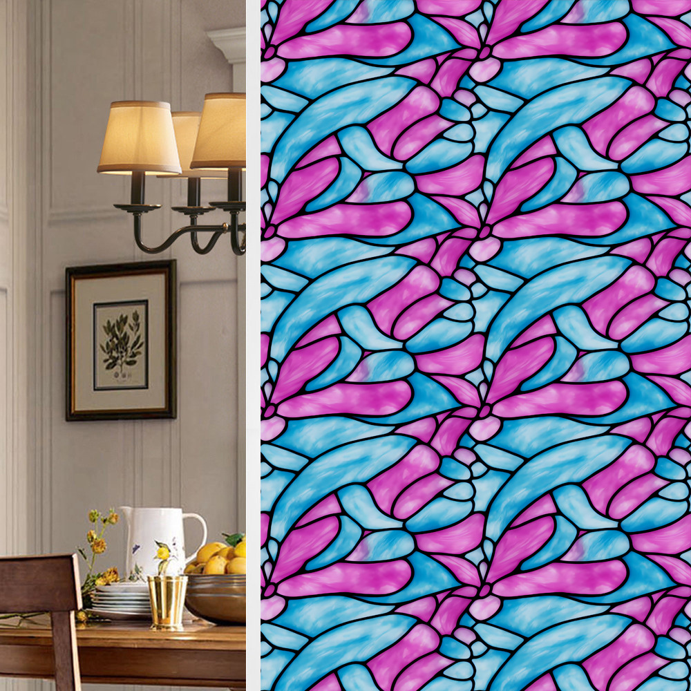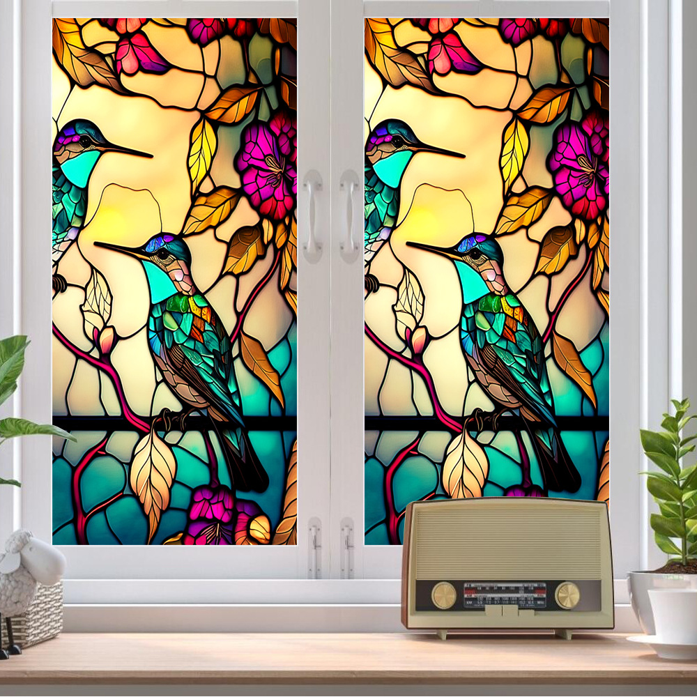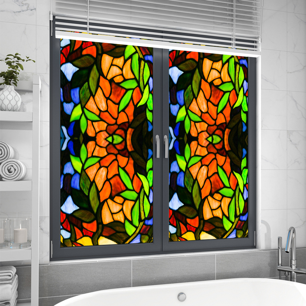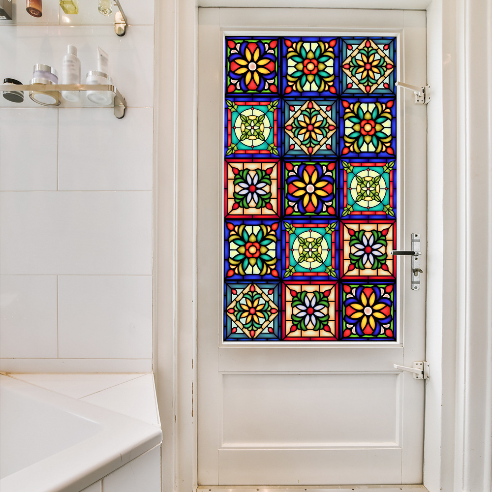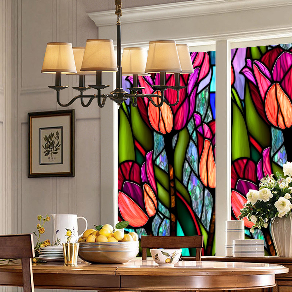 BL112-191 색 복고풍 꽃과 새 PVC 정전기 유리 스티커 접착제 창 필름 이동식 유리 창 그릴스토어 가기