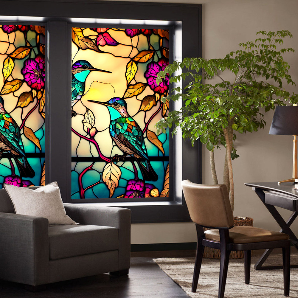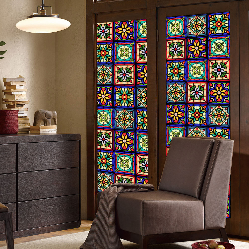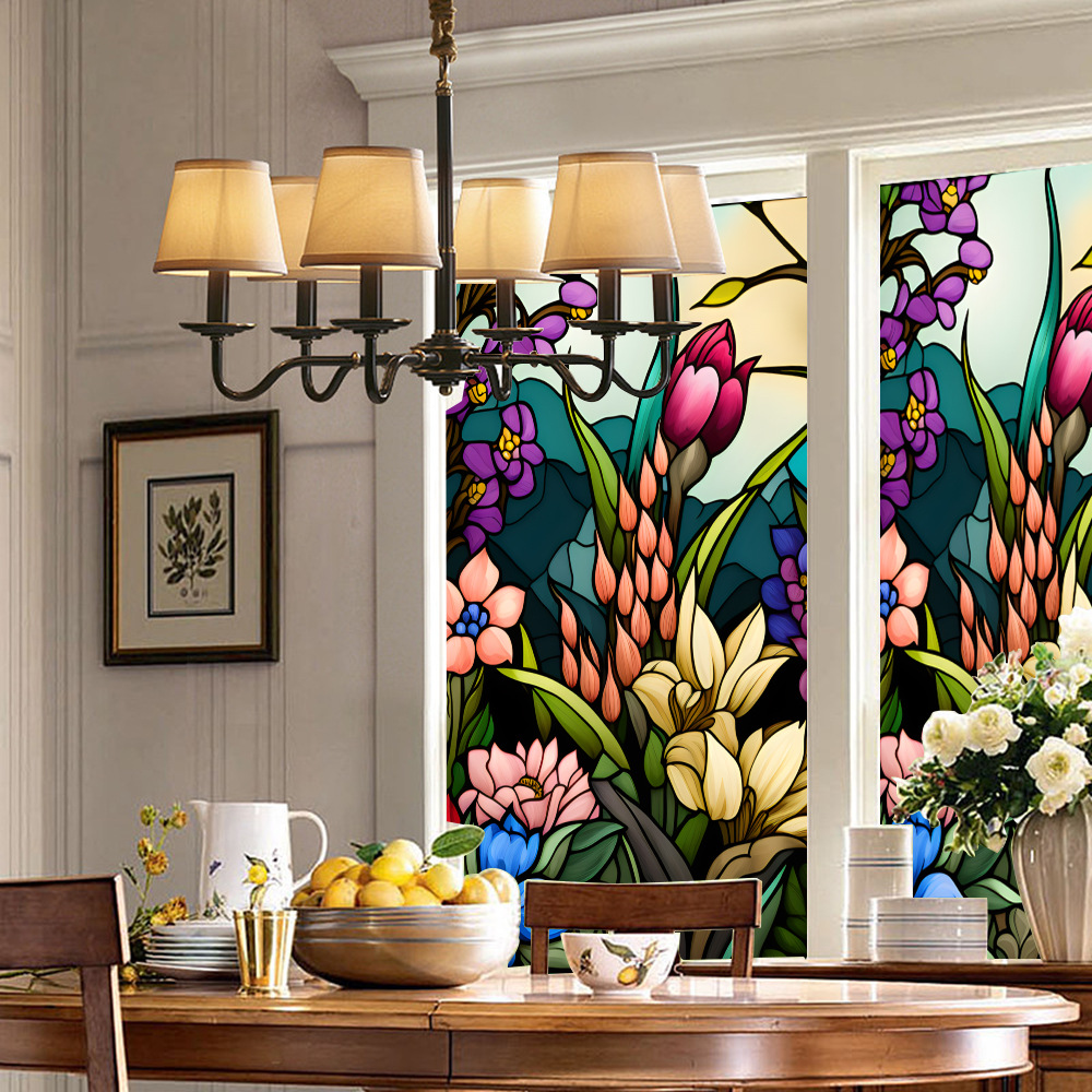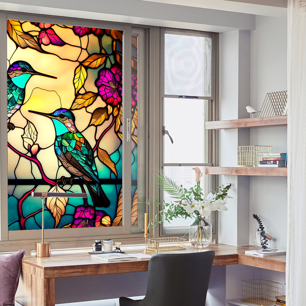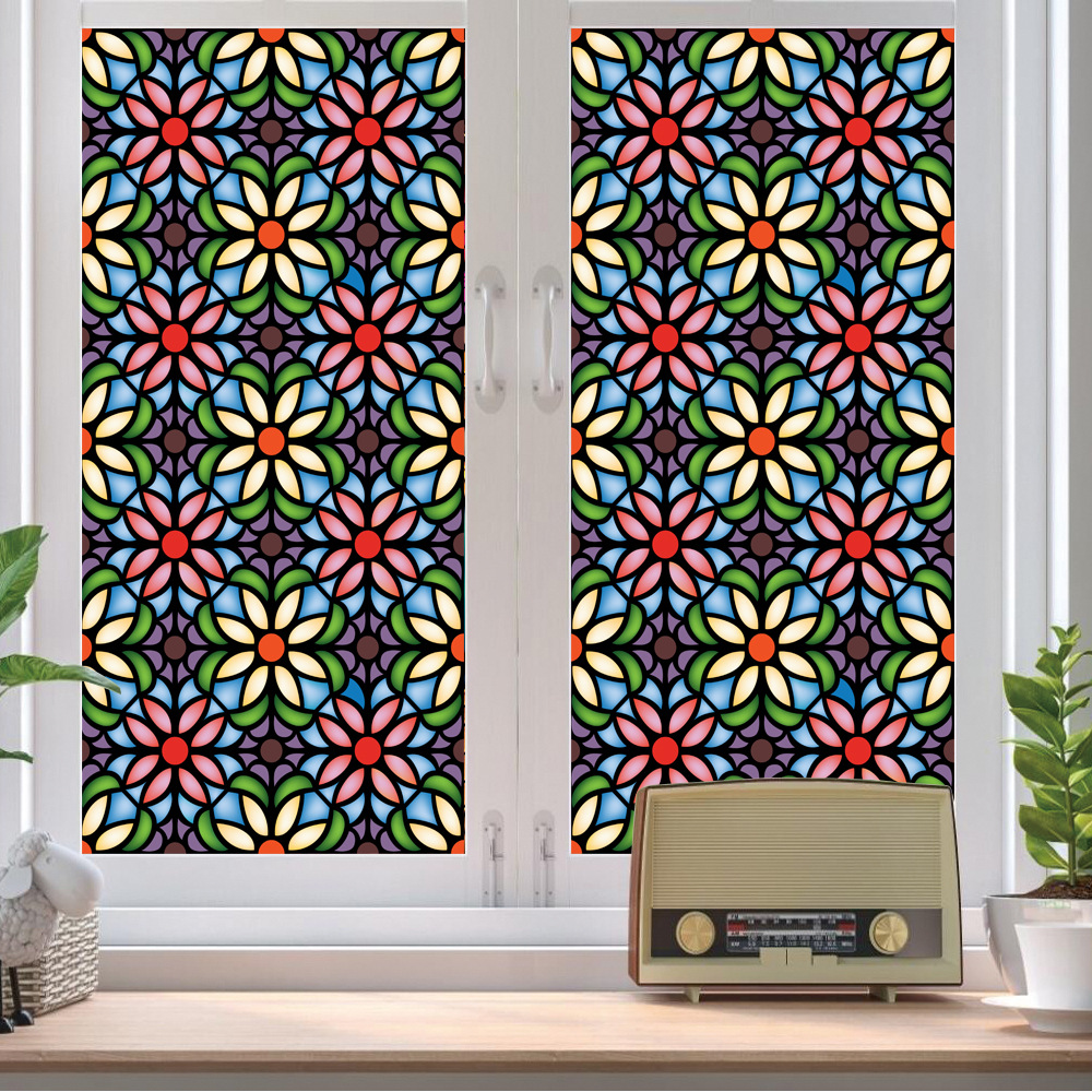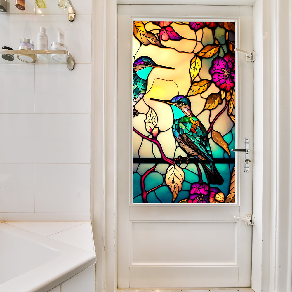 BL112-191 색 복고풍 꽃과 새 PVC 정전기 유리 스티커 접착제 창 필름 이동식 유리 창 그릴스토어 가기