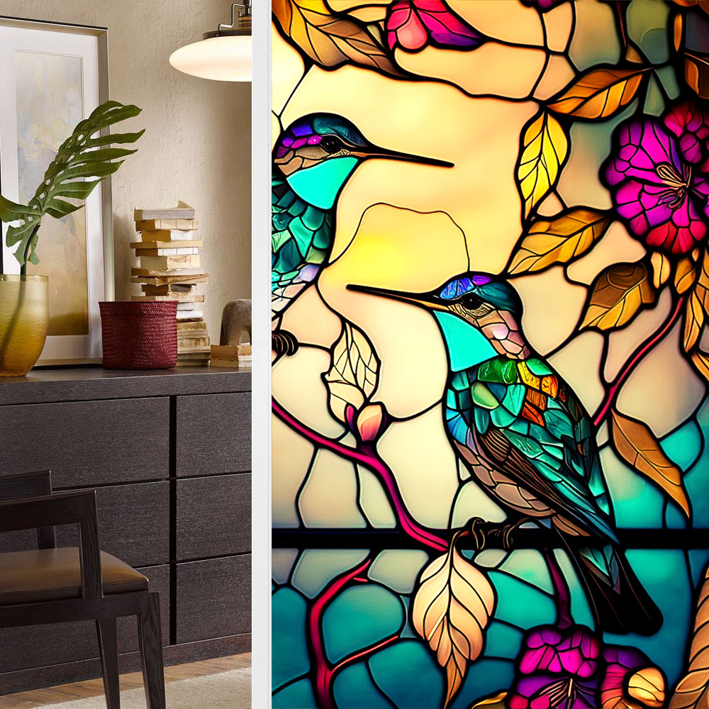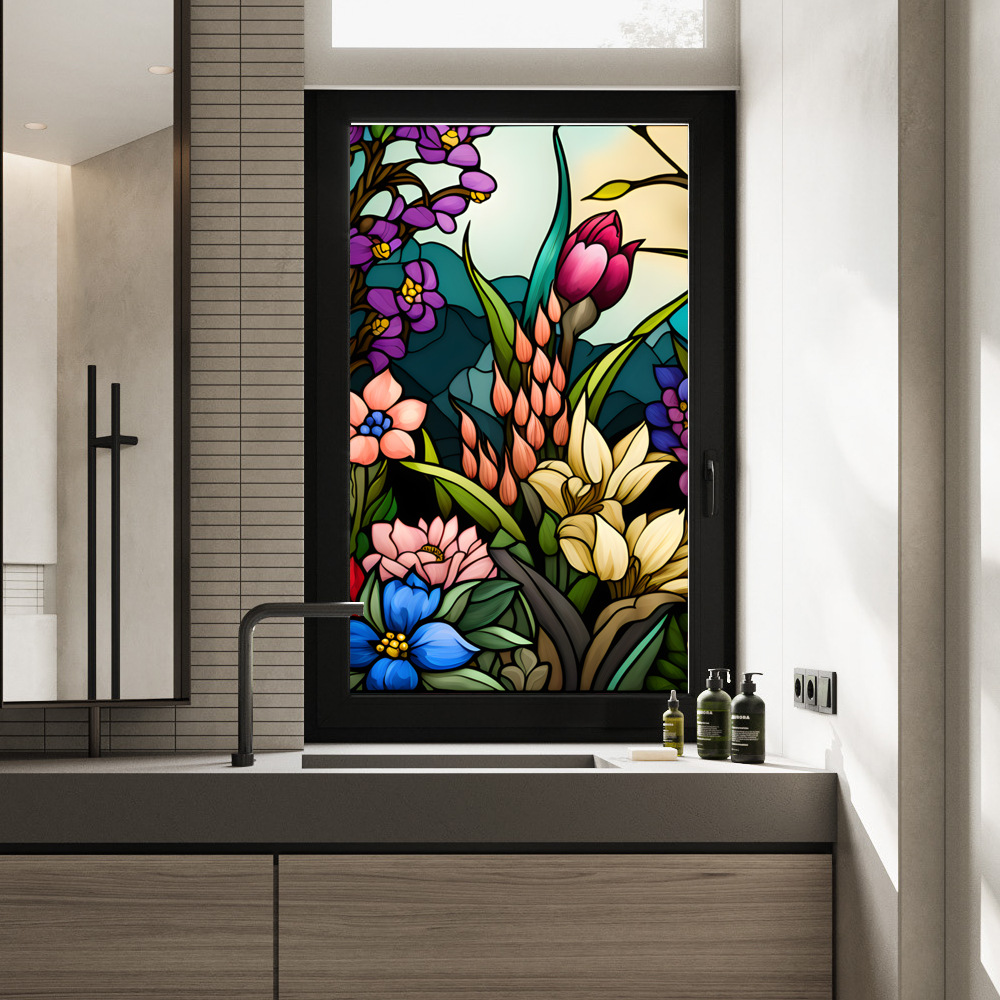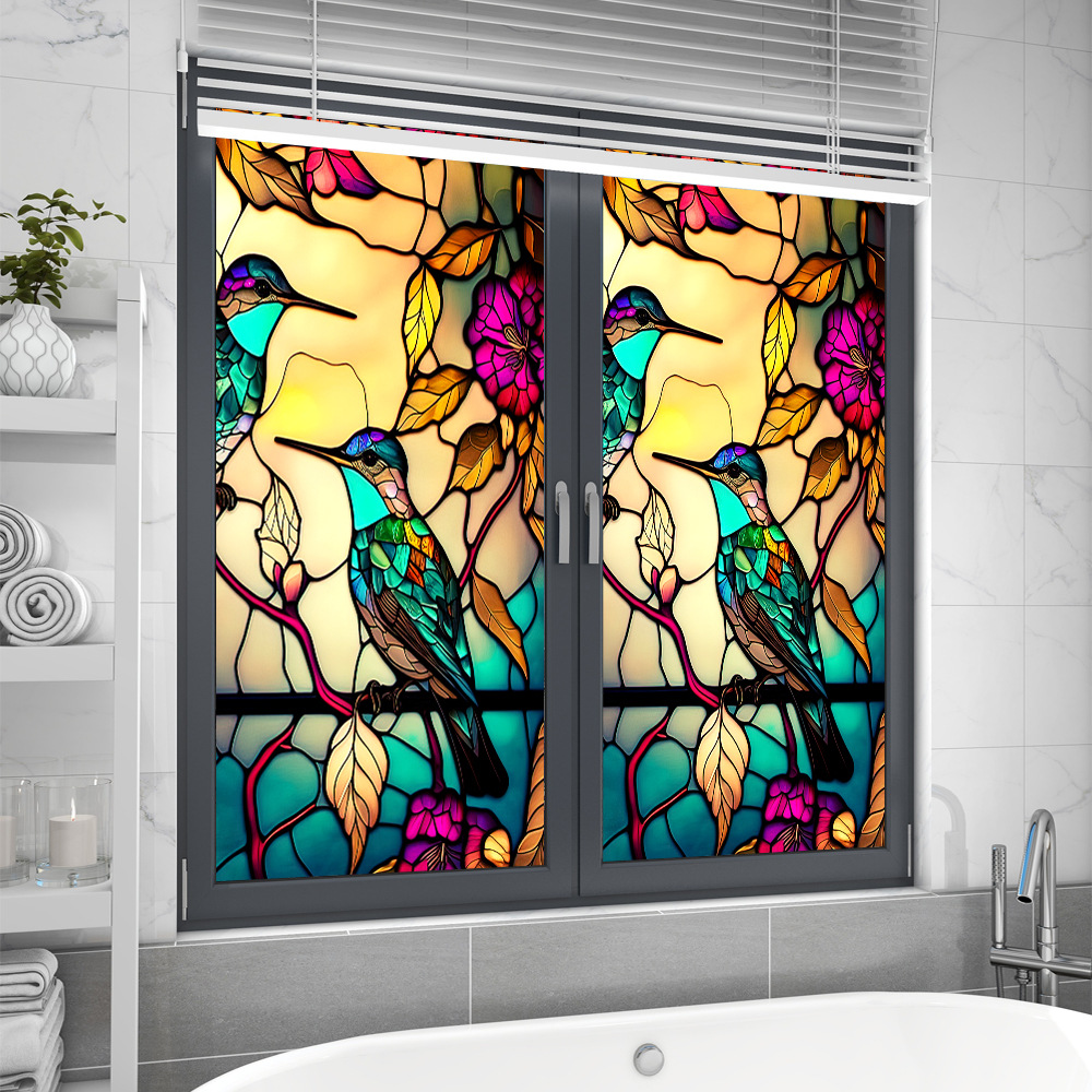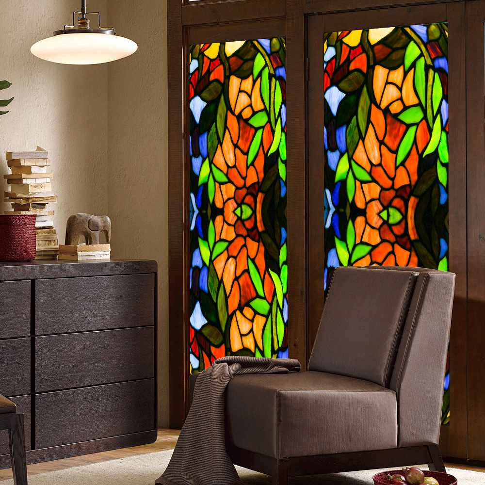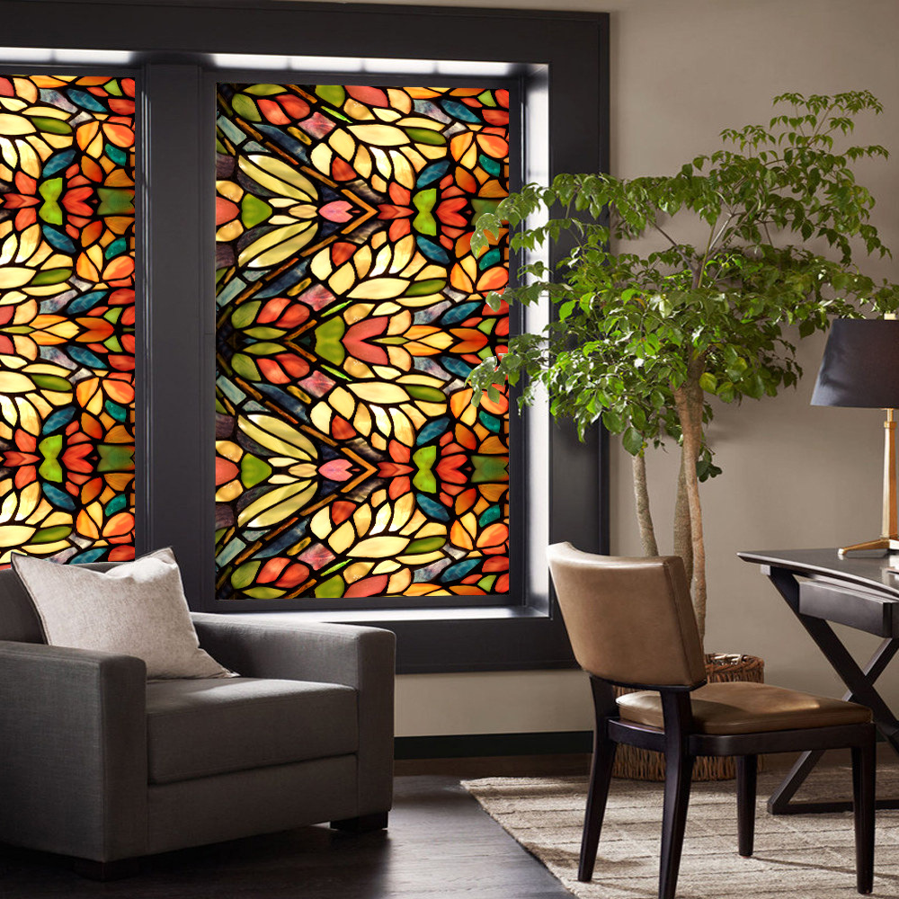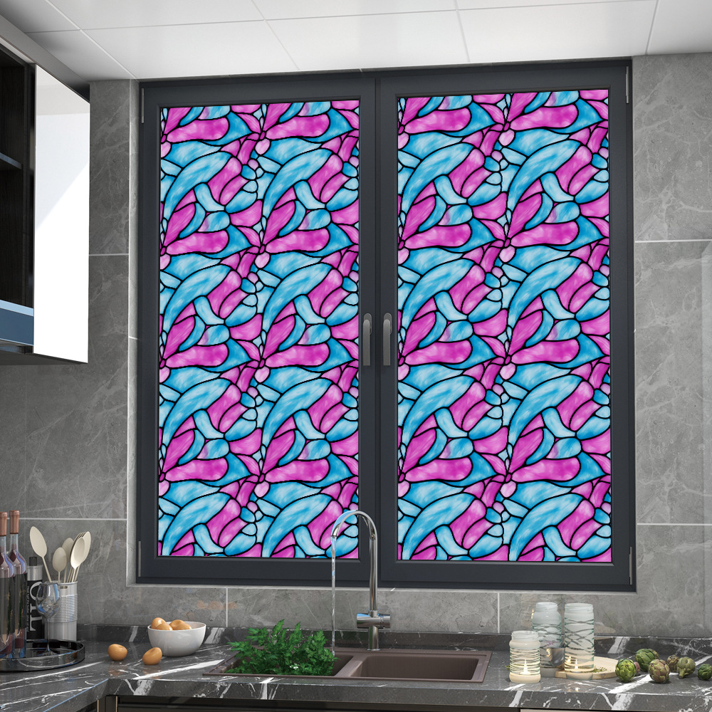 BL112-191 색 복고풍 꽃과 새 PVC 정전기 유리 스티커 접착제 창 필름 이동식 유리 창 그릴스토어 가기