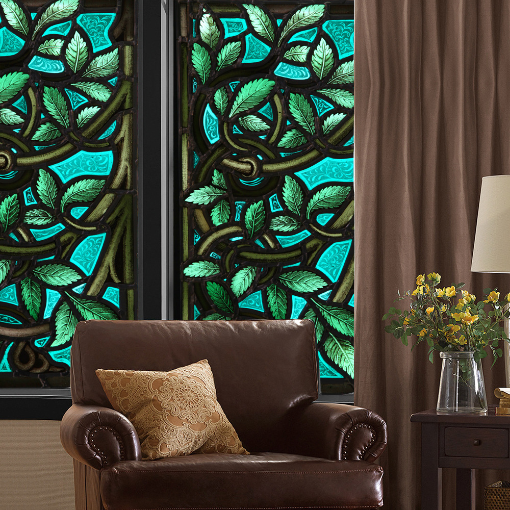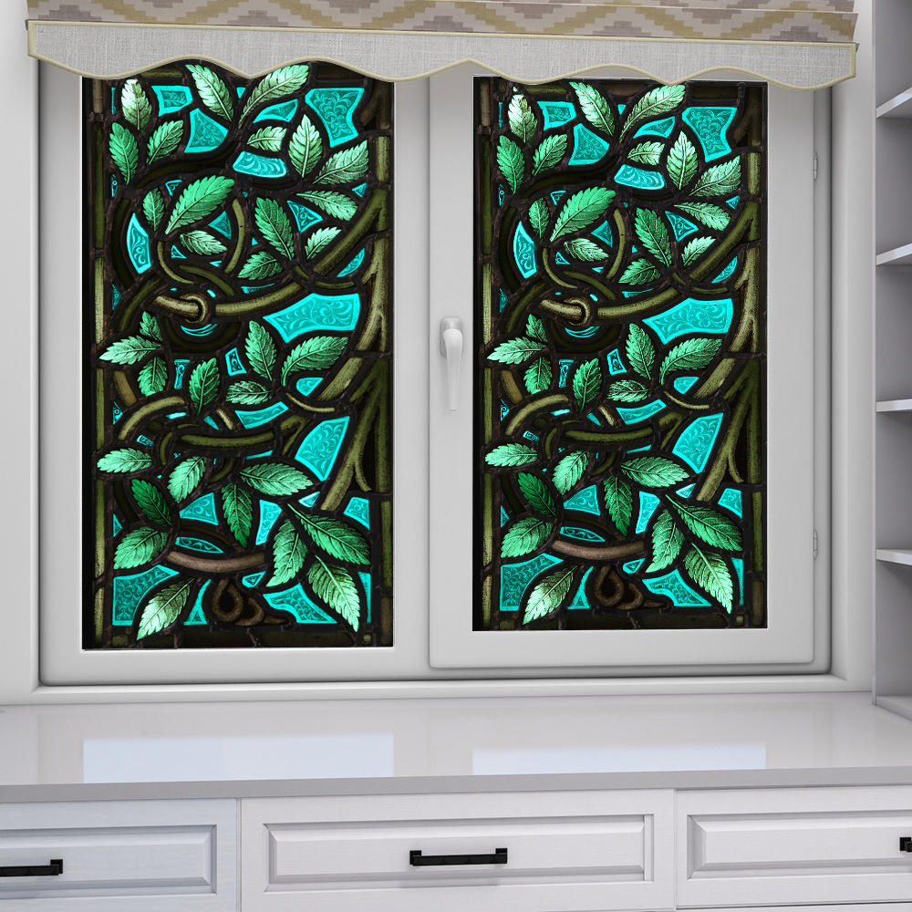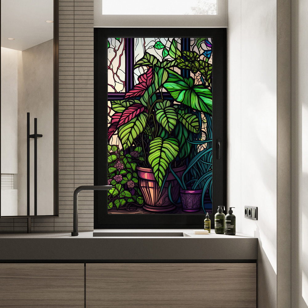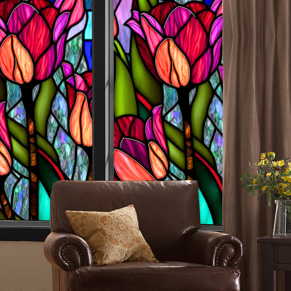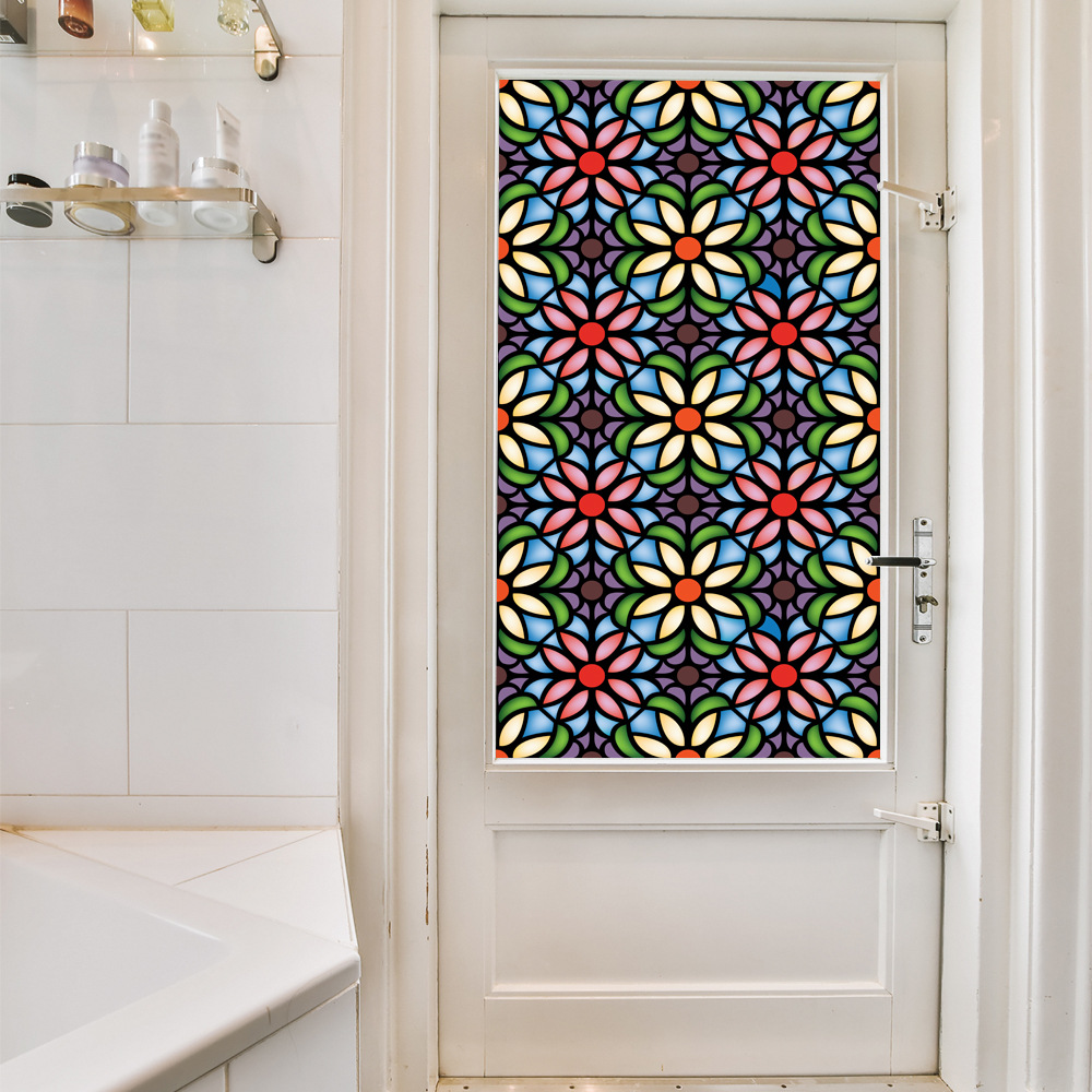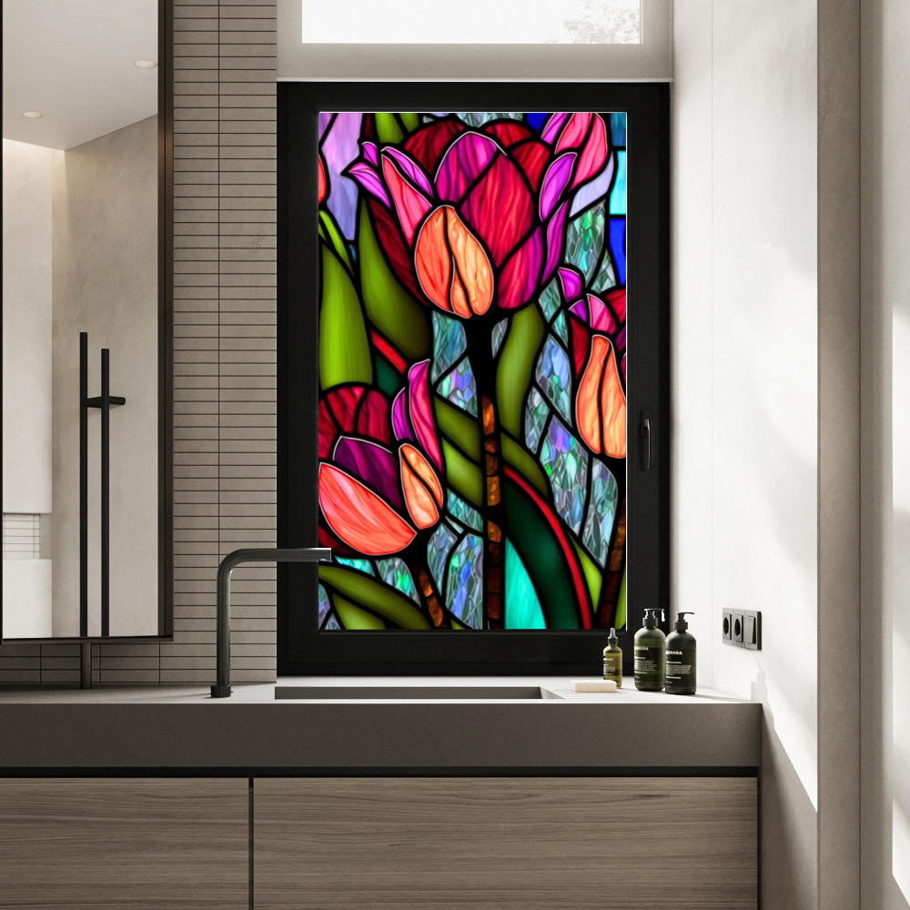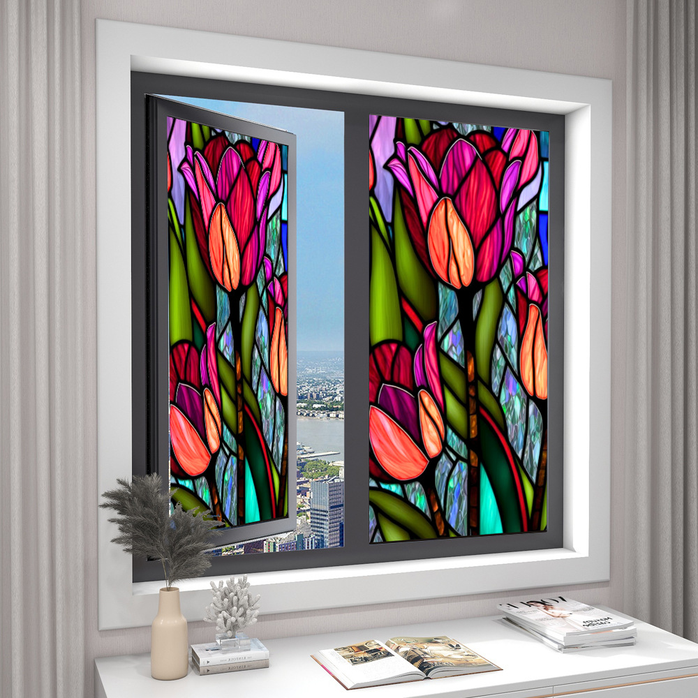 BL112-191 색 복고풍 꽃과 새 PVC 정전기 유리 스티커 접착제 창 필름 이동식 유리 창 그릴스토어 가기
