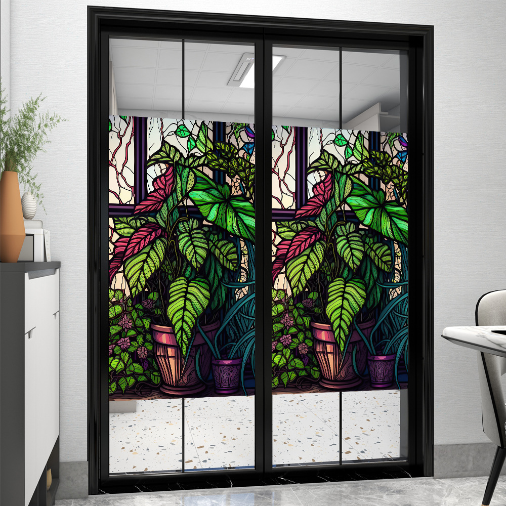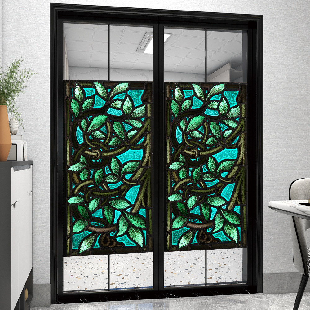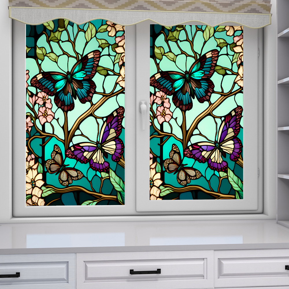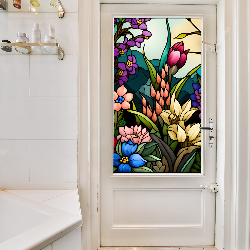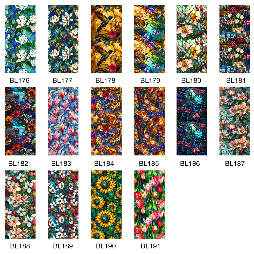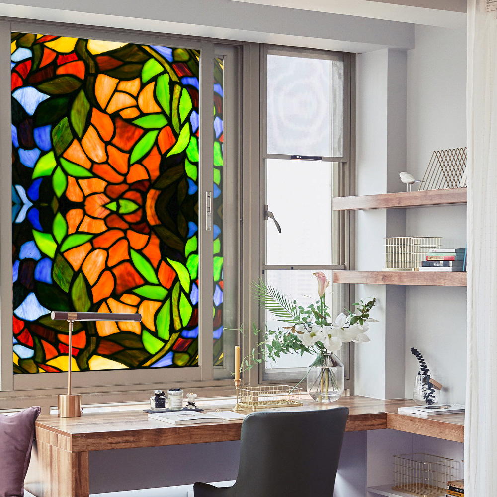 BL112-191 색 복고풍 꽃과 새 PVC 정전기 유리 스티커 접착제 창 필름 이동식 유리 창 그릴스토어 가기