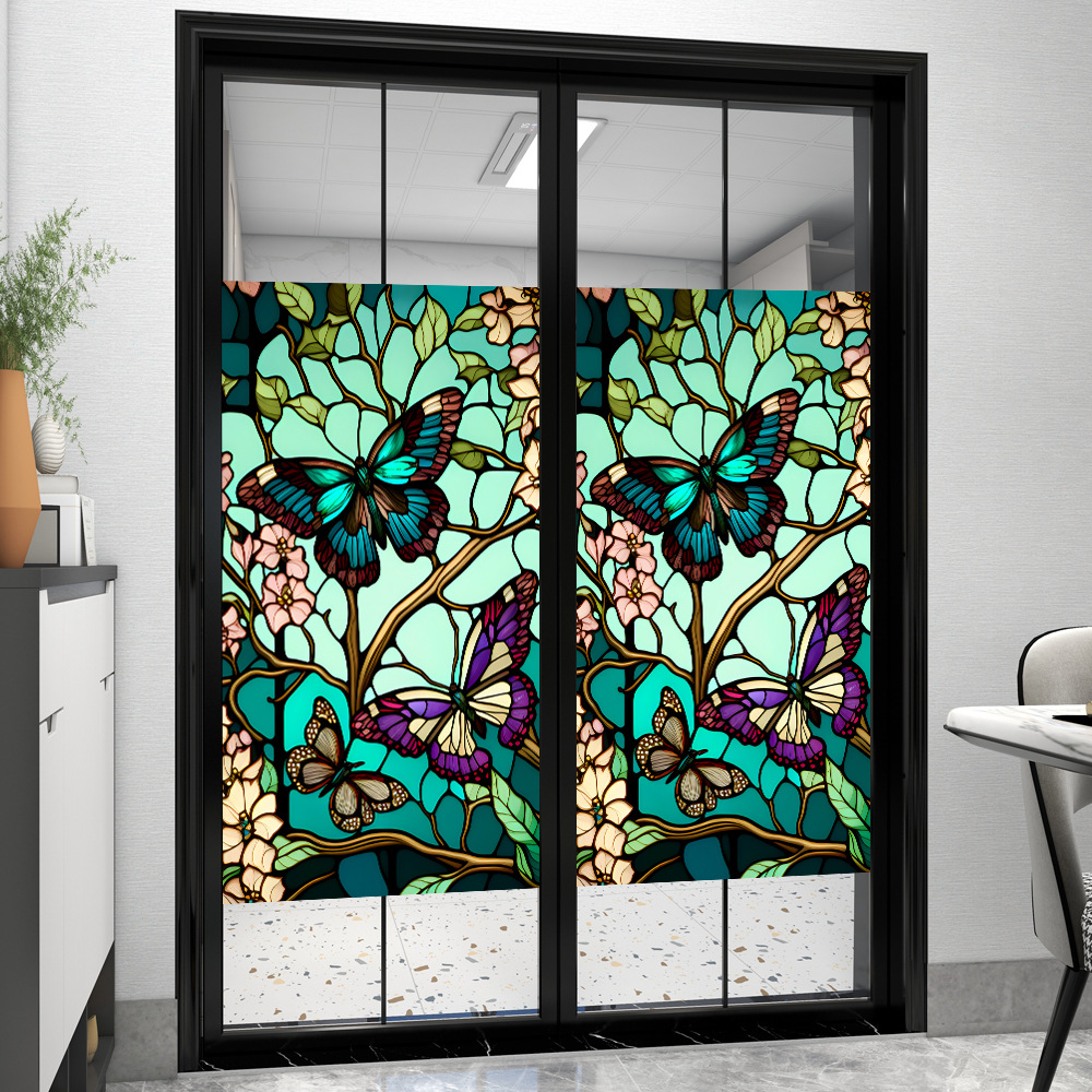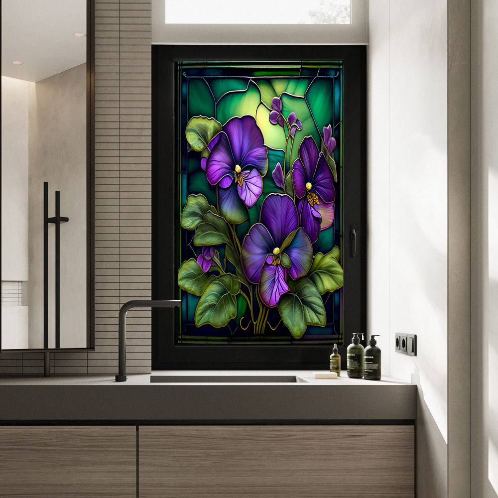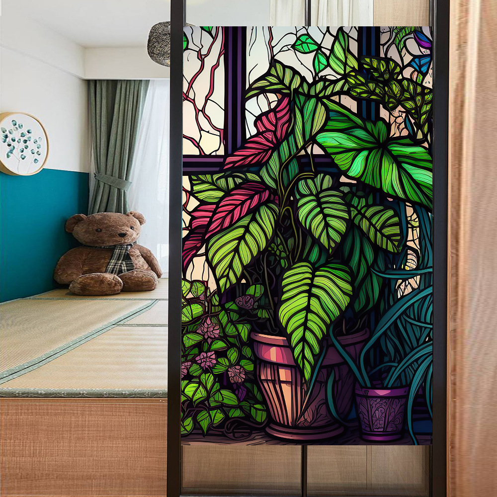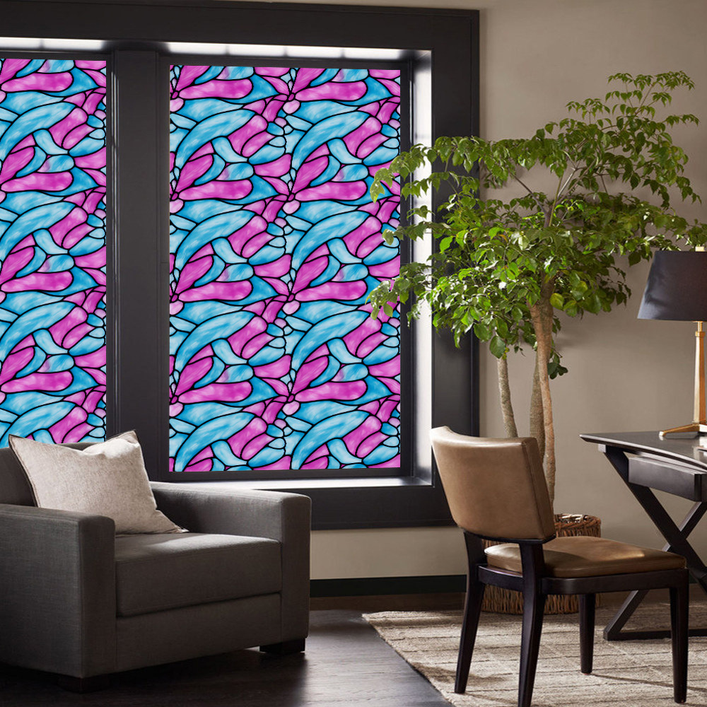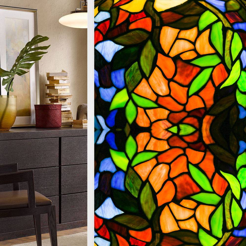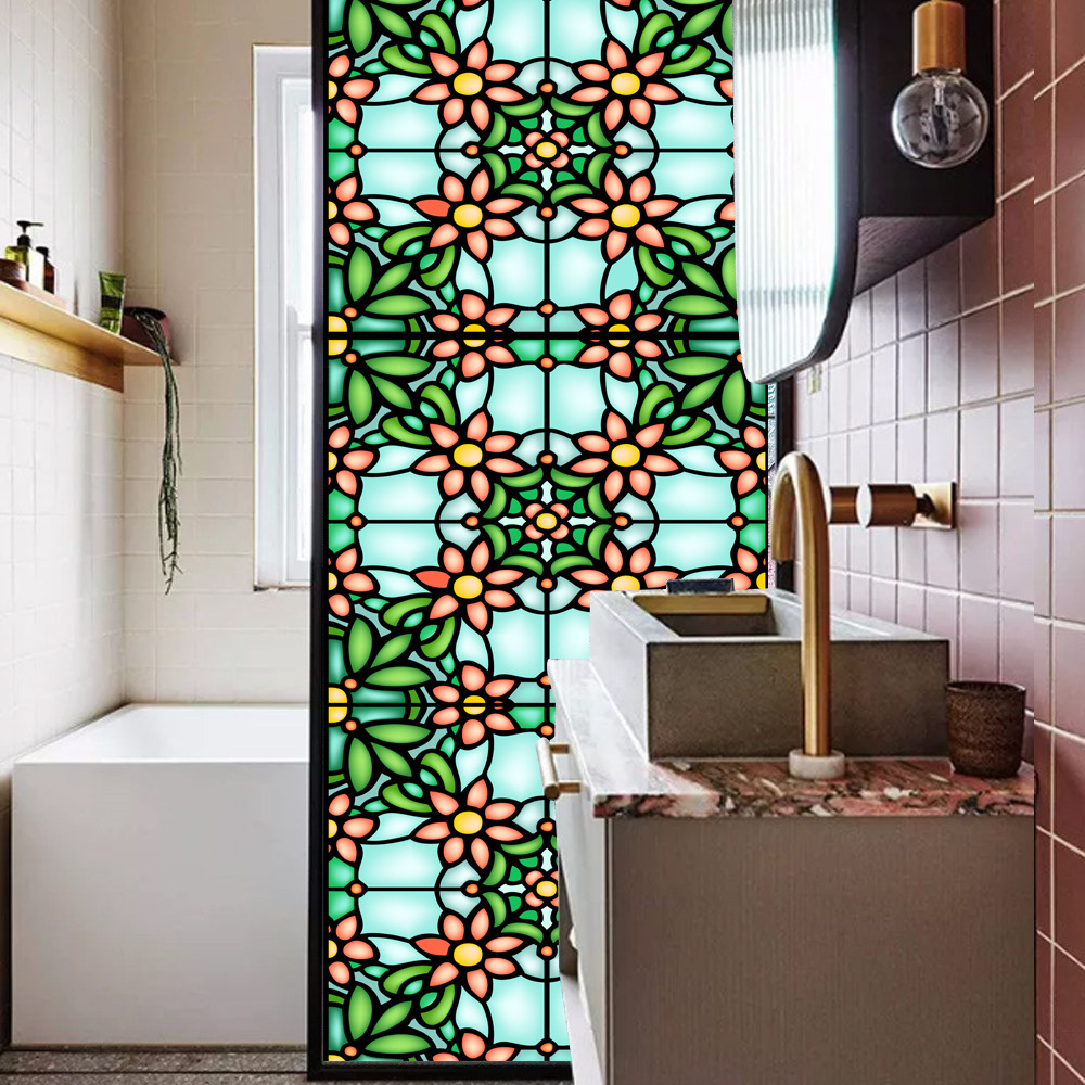 BL112-191 색 복고풍 꽃과 새 PVC 정전기 유리 스티커 접착제 창 필름 이동식 유리 창 그릴스토어 가기