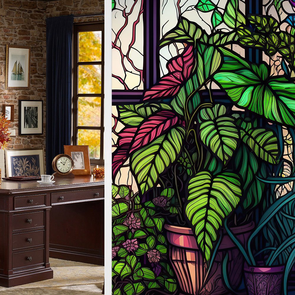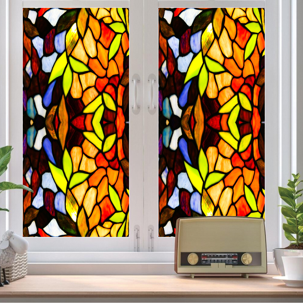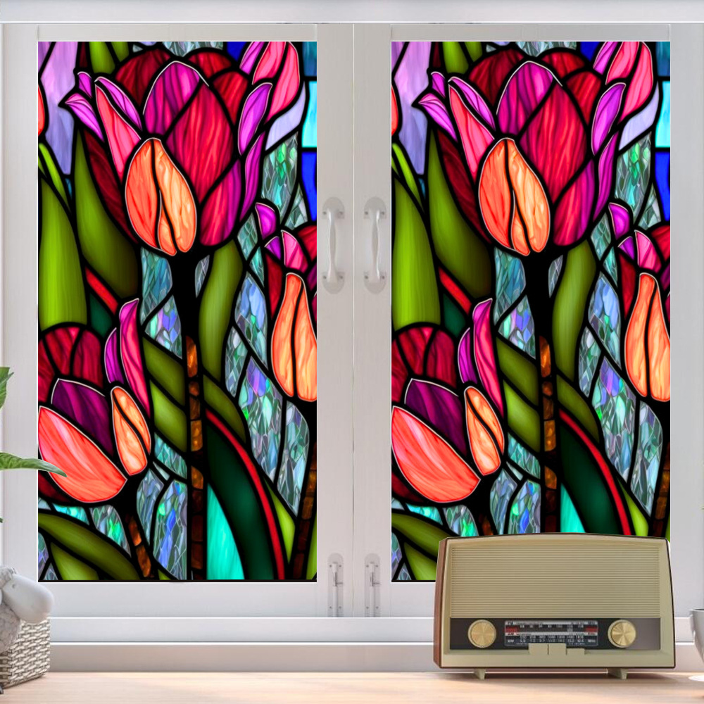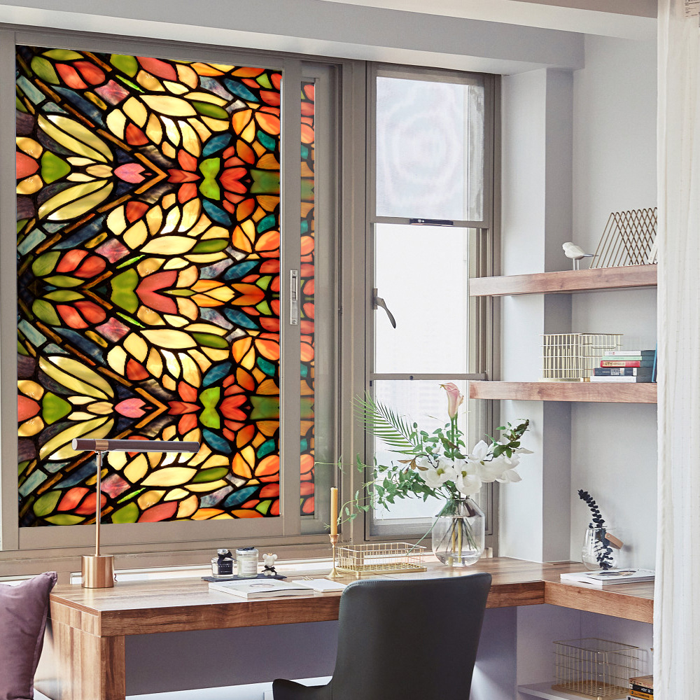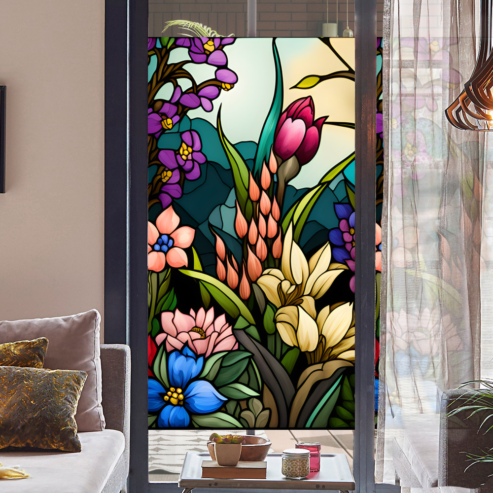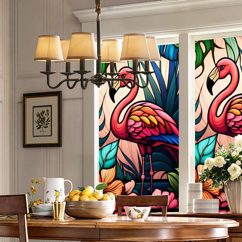BL112-191 색 복고풍 꽃과 새 PVC 정전기 유리 스티커 접착제 창 필름 이동식 유리 창 그릴스토어 가기