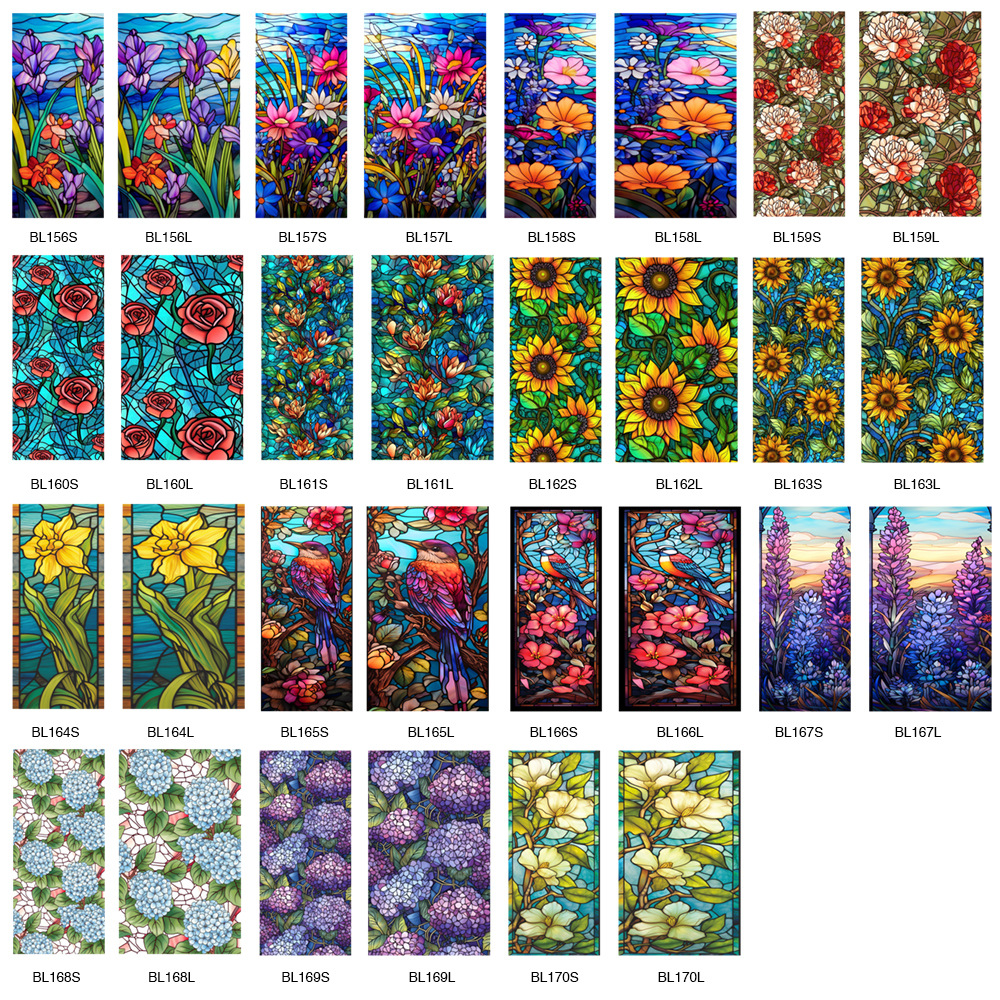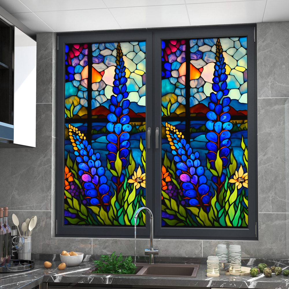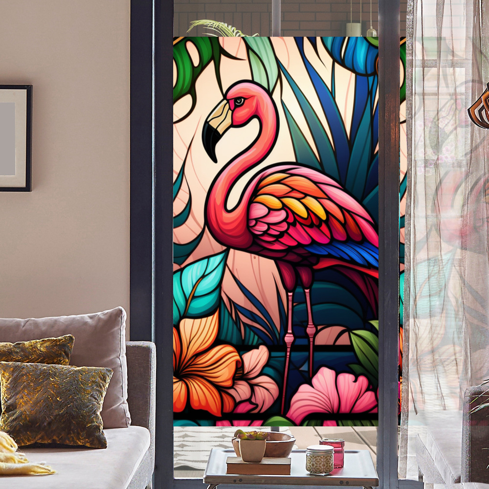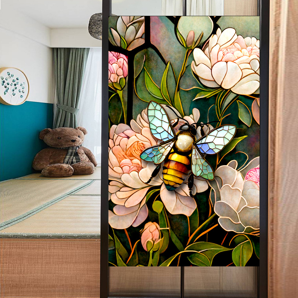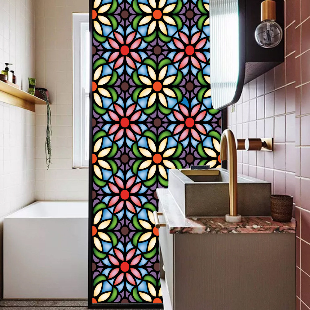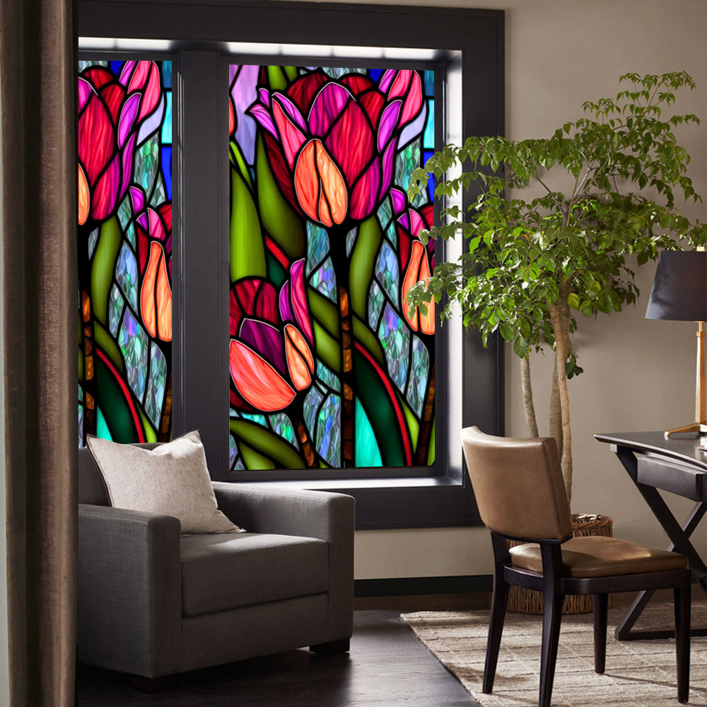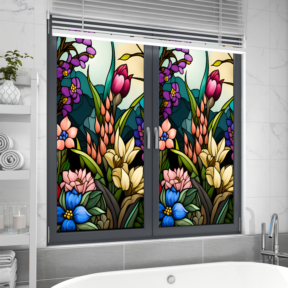 BL112-191 색 복고풍 꽃과 새 PVC 정전기 유리 스티커 접착제 창 필름 이동식 유리 창 그릴스토어 가기