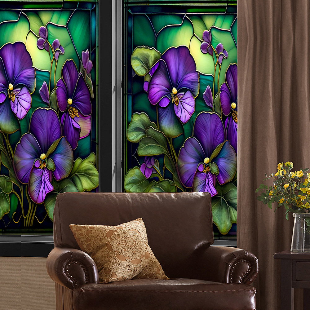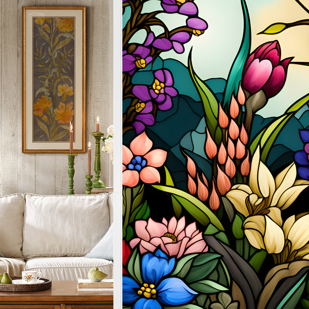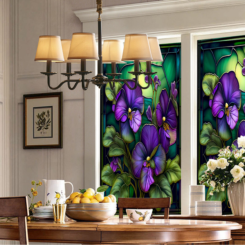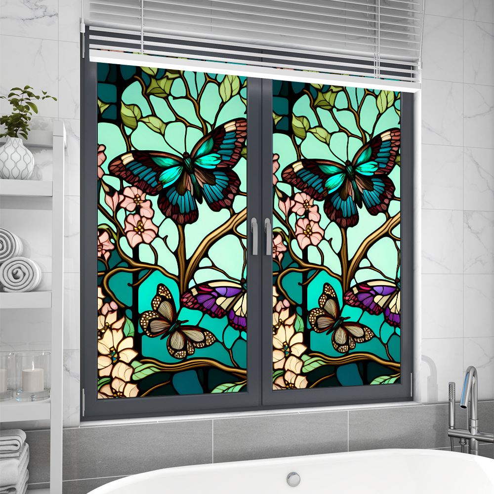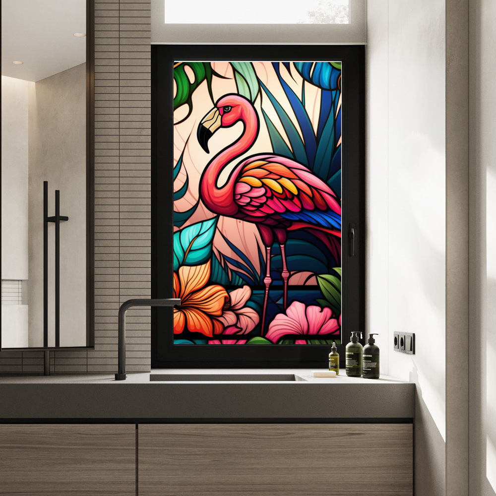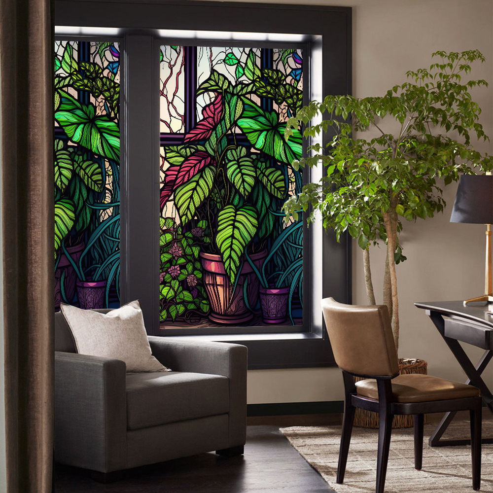 BL112-191 색 복고풍 꽃과 새 PVC 정전기 유리 스티커 접착제 창 필름 이동식 유리 창 그릴스토어 가기