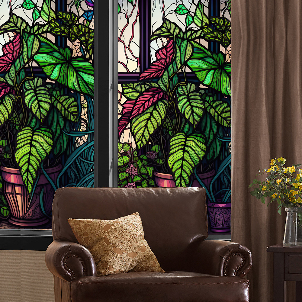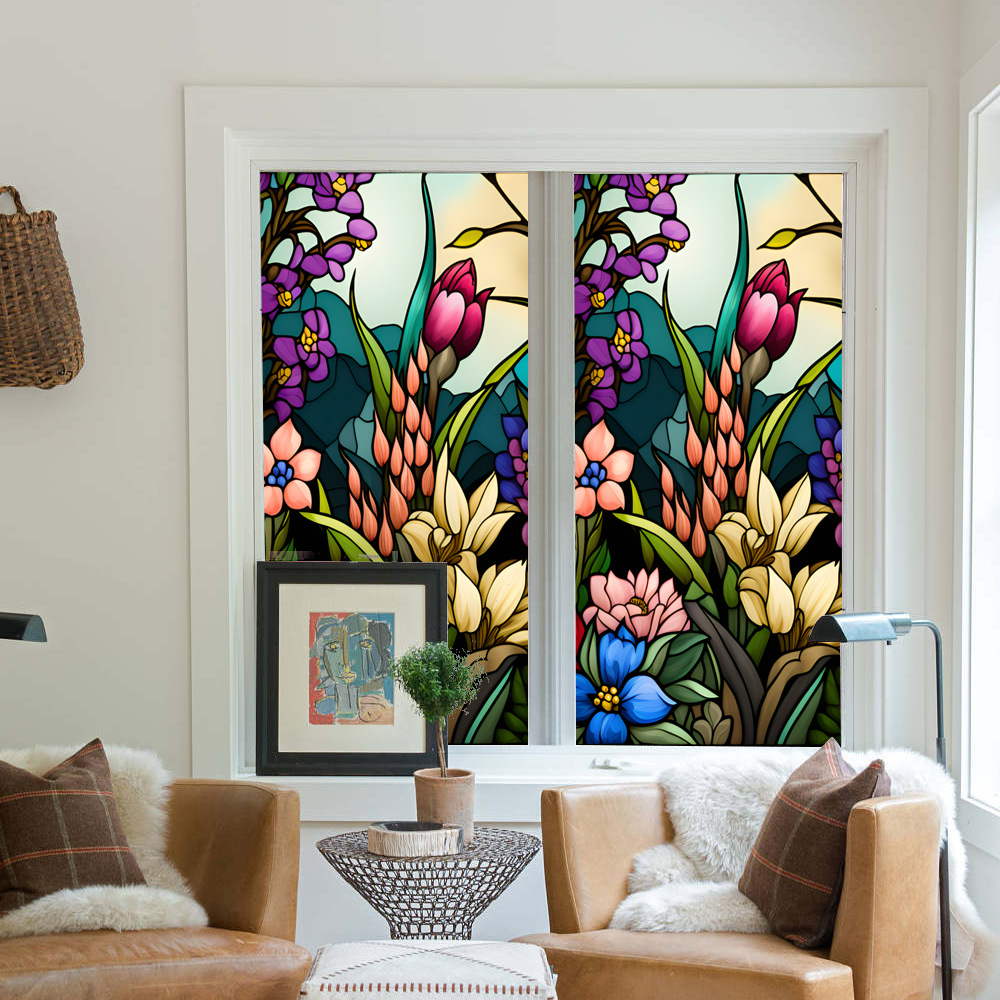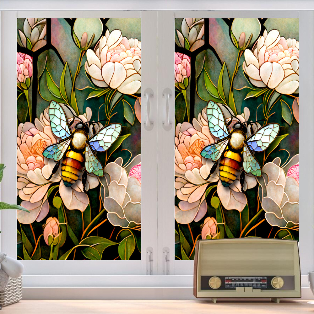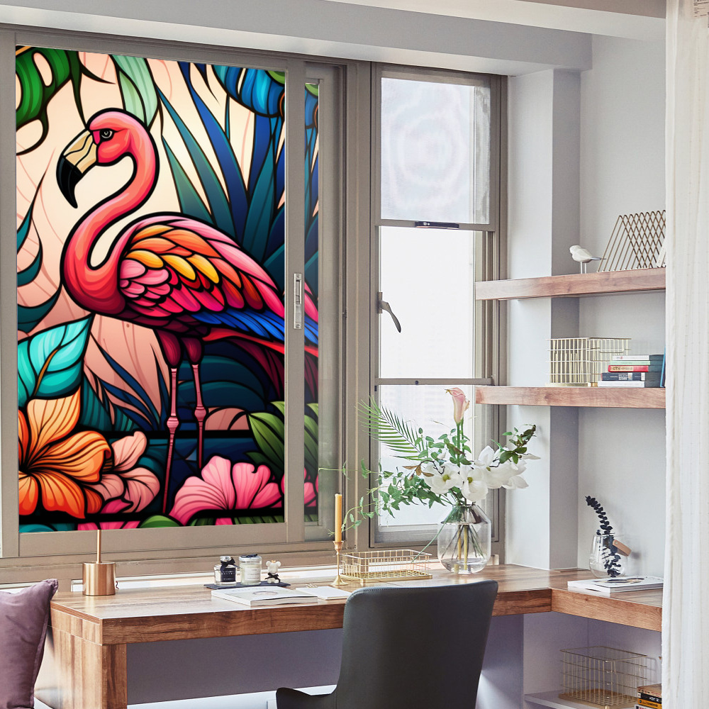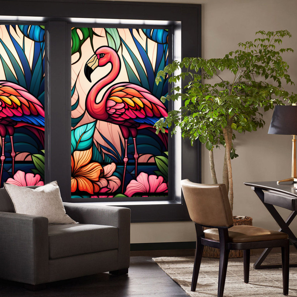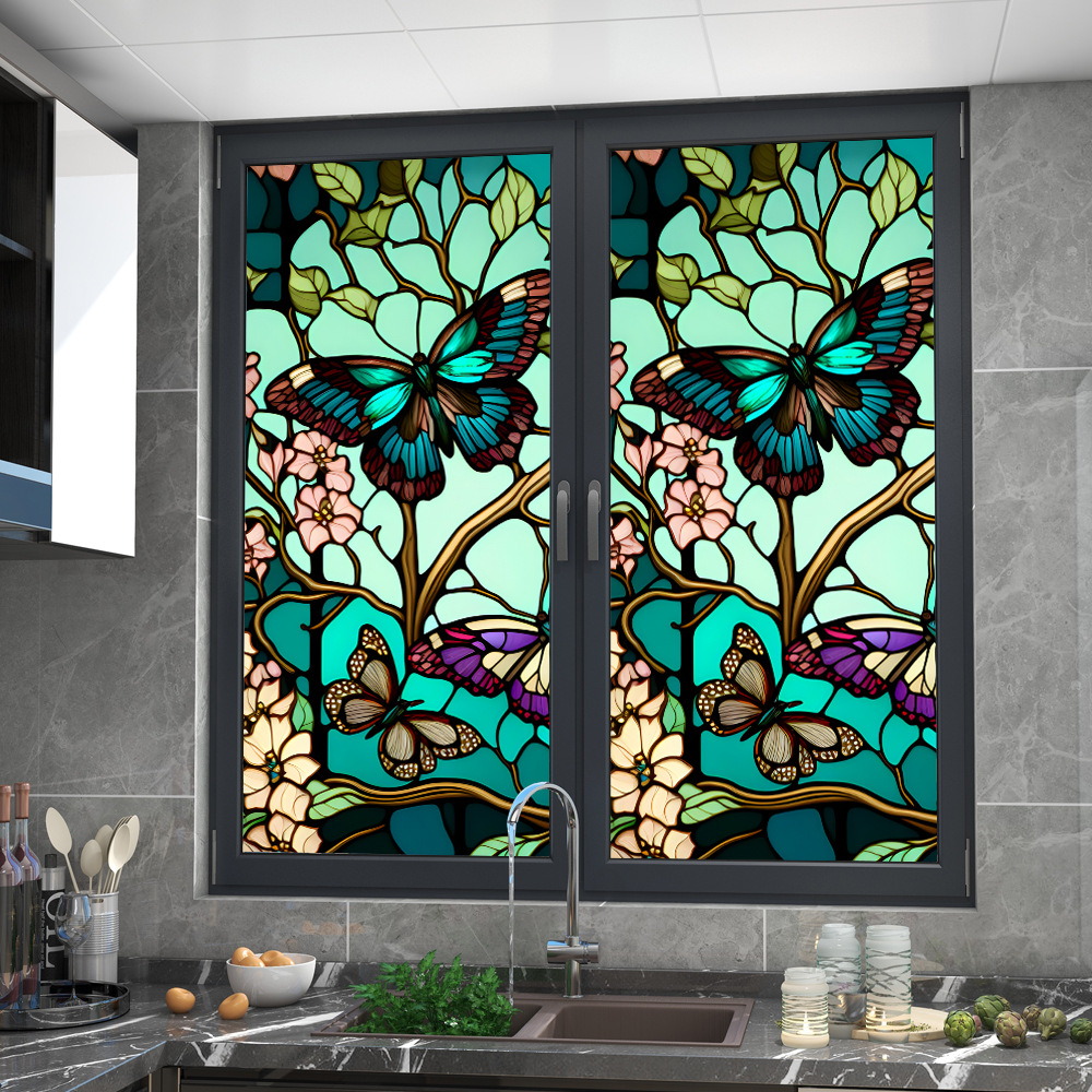 BL112-191 색 복고풍 꽃과 새 PVC 정전기 유리 스티커 접착제 창 필름 이동식 유리 창 그릴스토어 가기