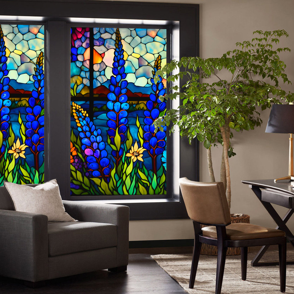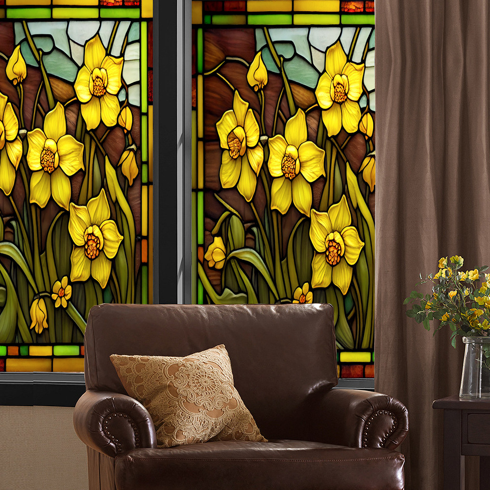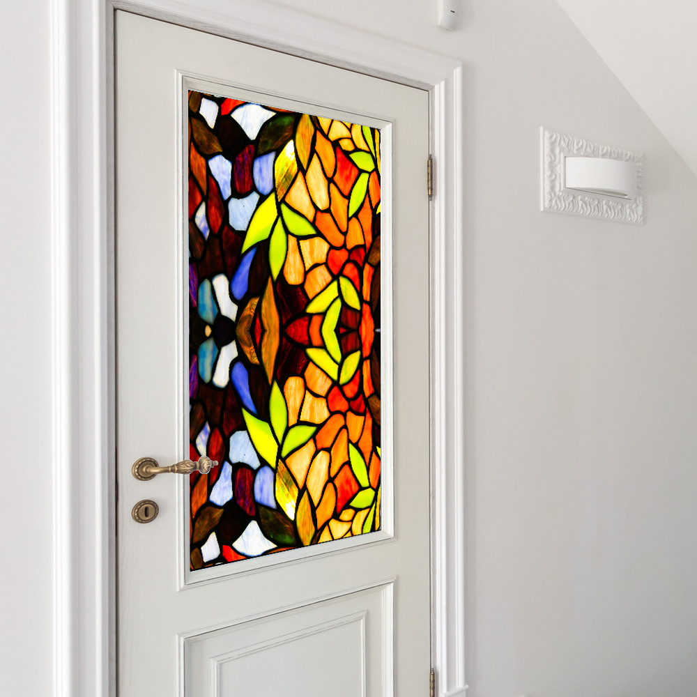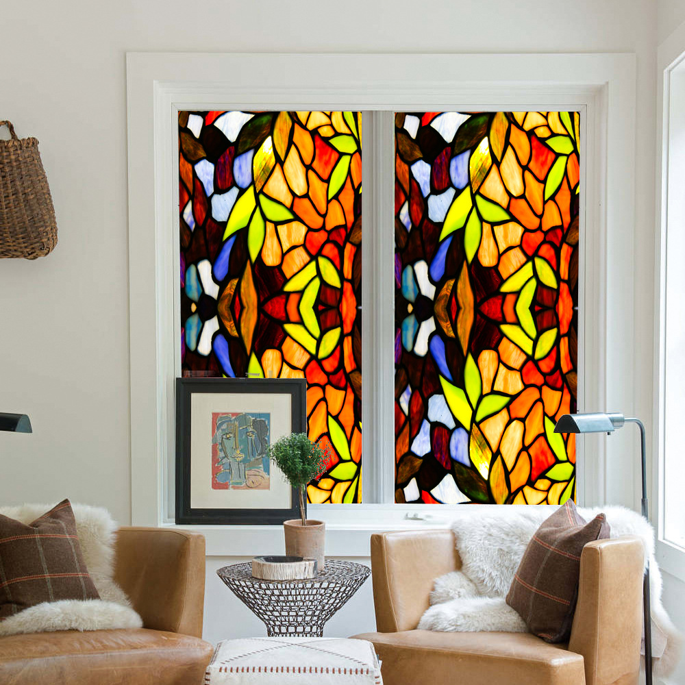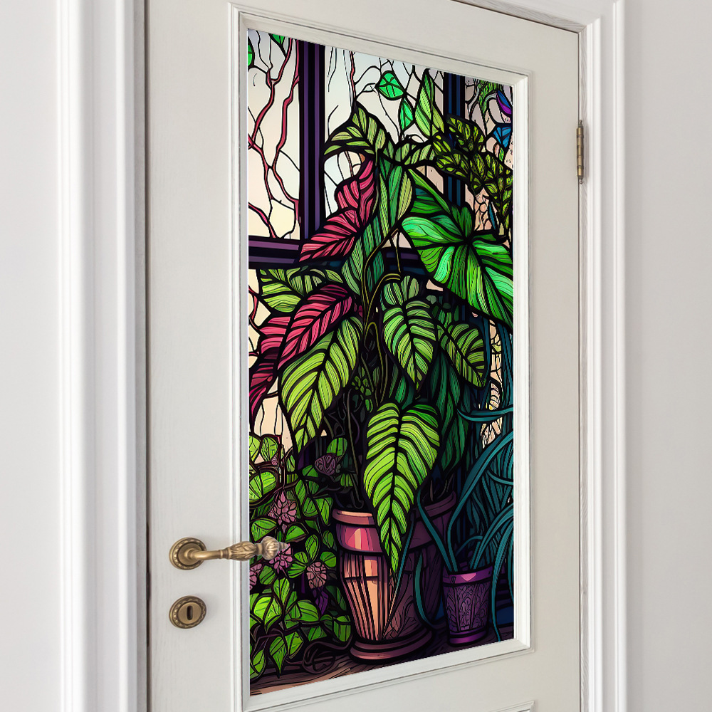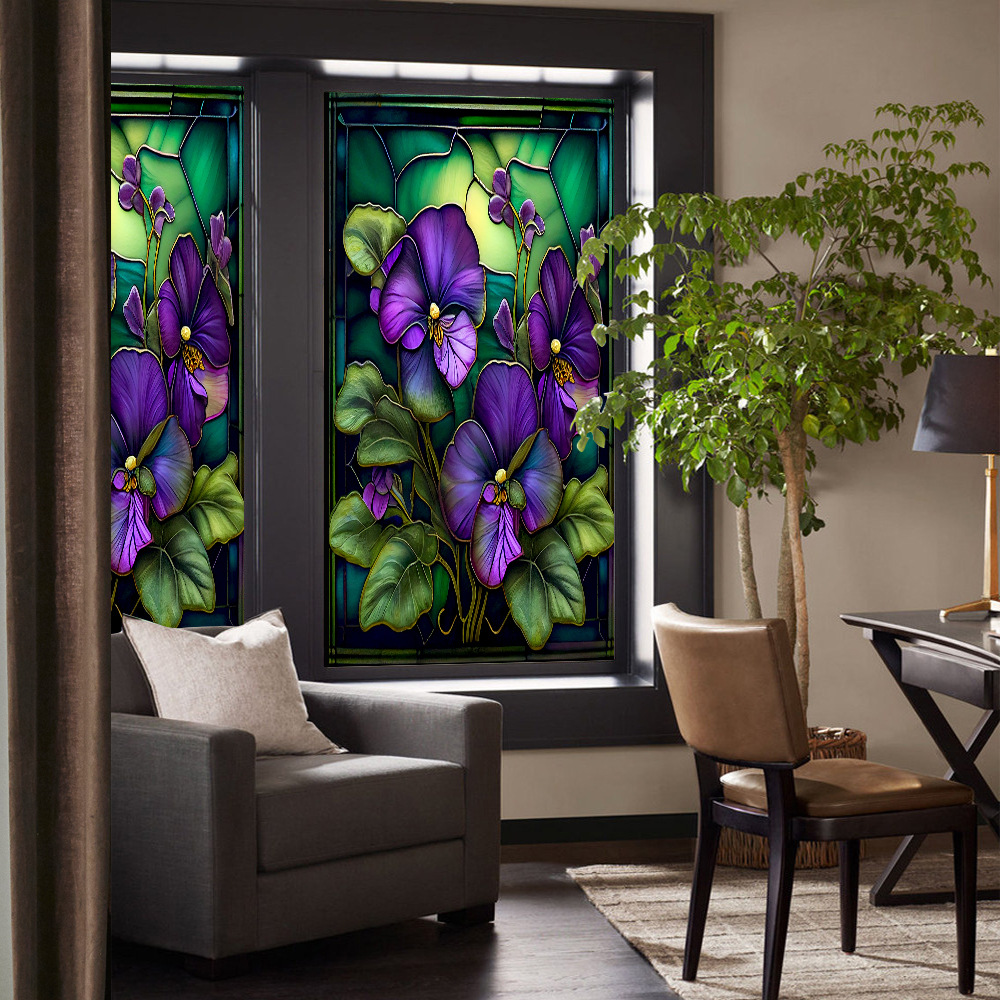 BL112-191 색 복고풍 꽃과 새 PVC 정전기 유리 스티커 접착제 창 필름 이동식 유리 창 그릴스토어 가기