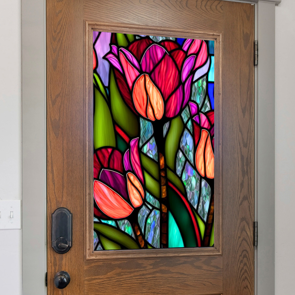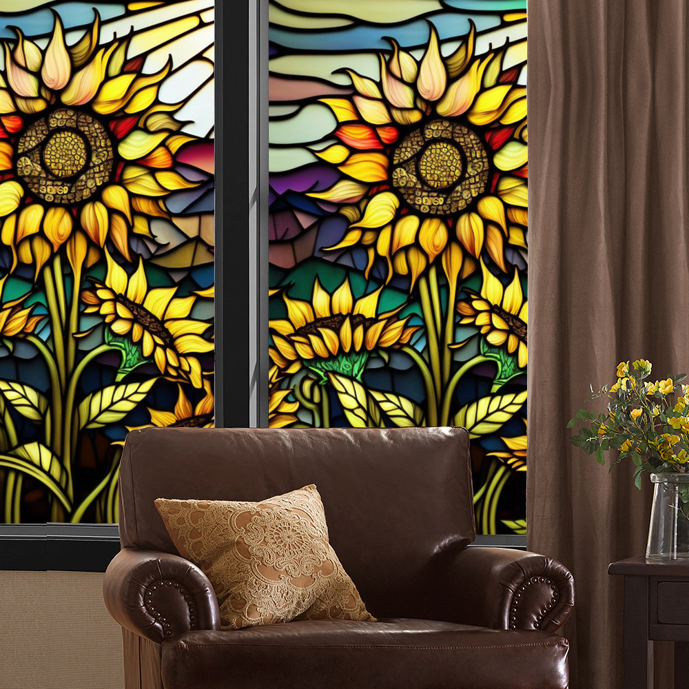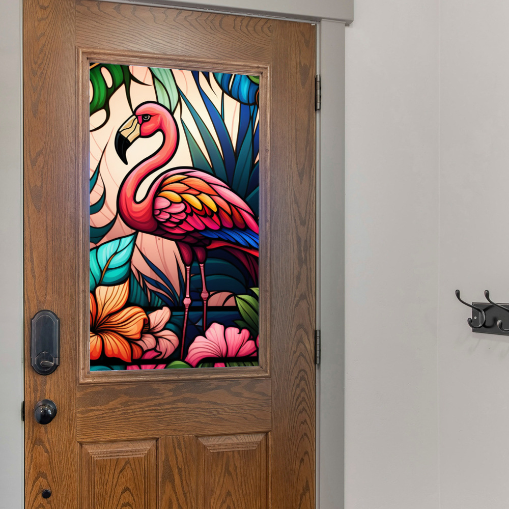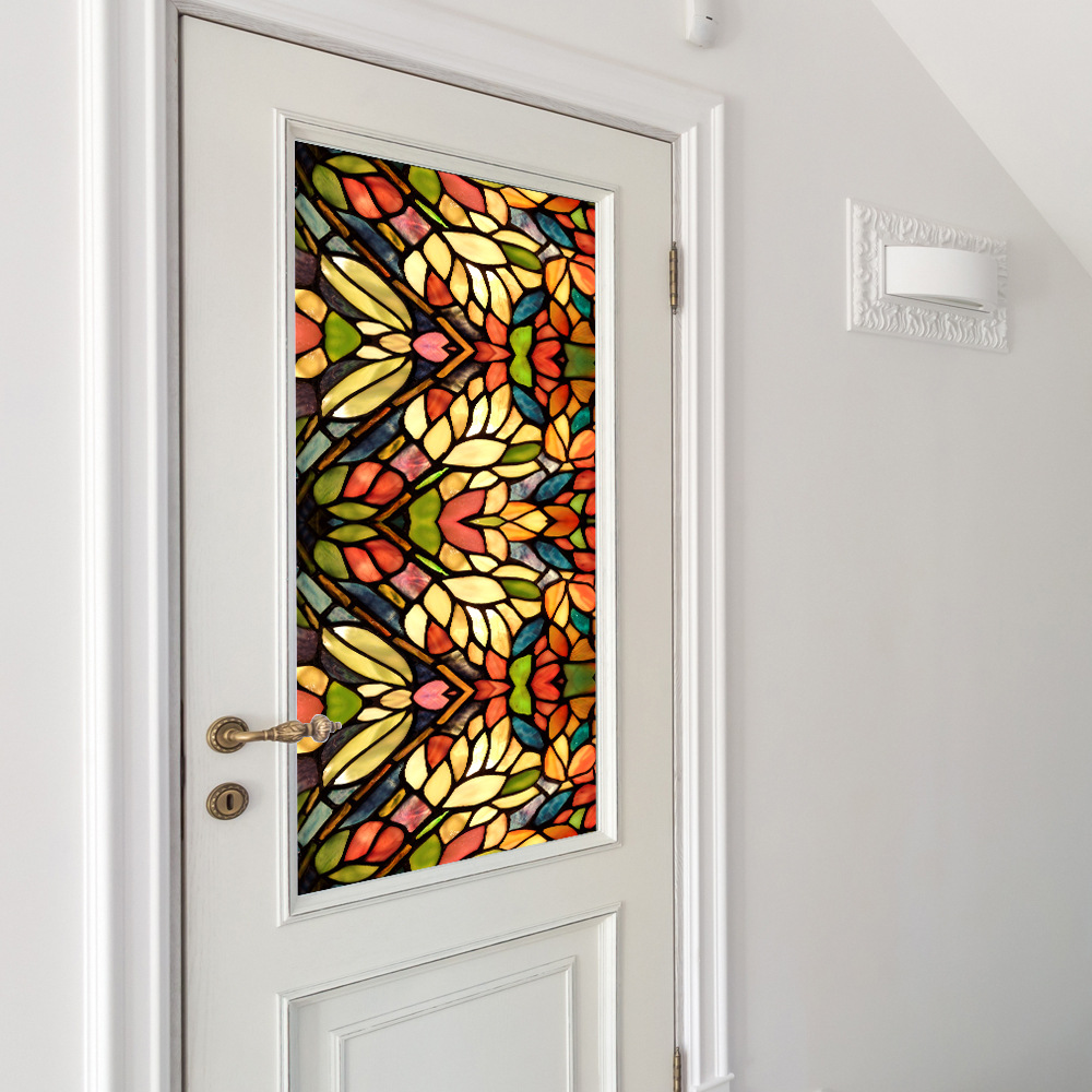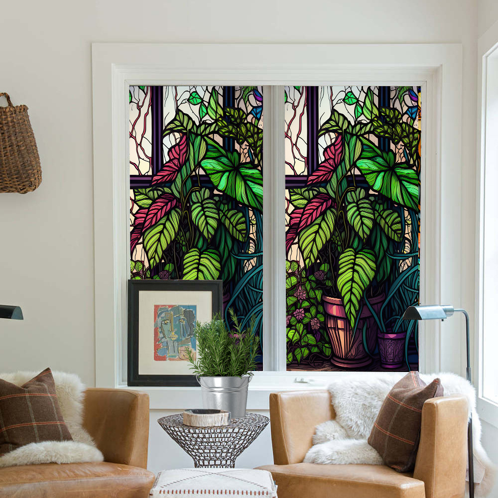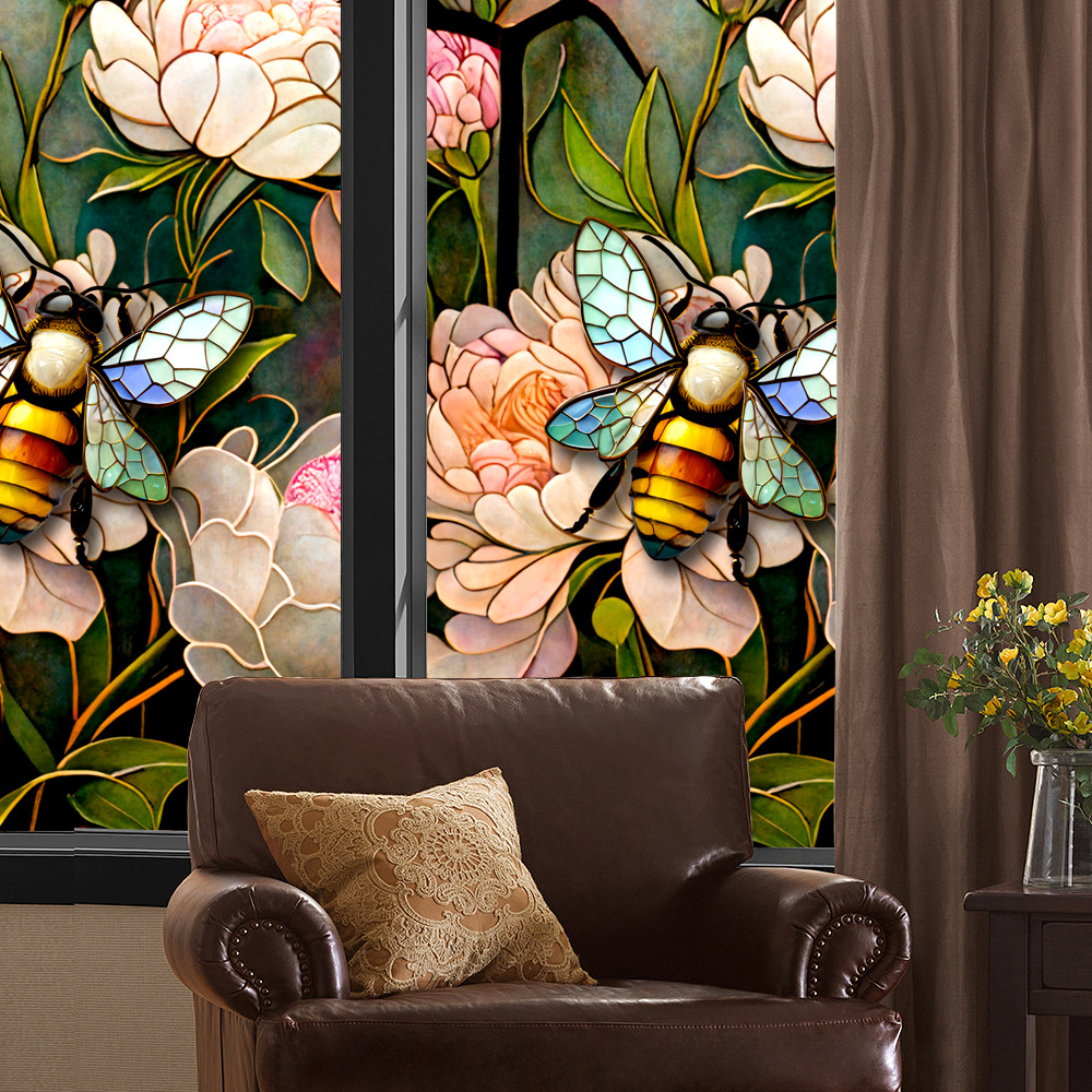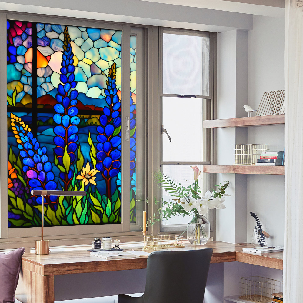 BL112-191 색 복고풍 꽃과 새 PVC 정전기 유리 스티커 접착제 창 필름 이동식 유리 창 그릴스토어 가기