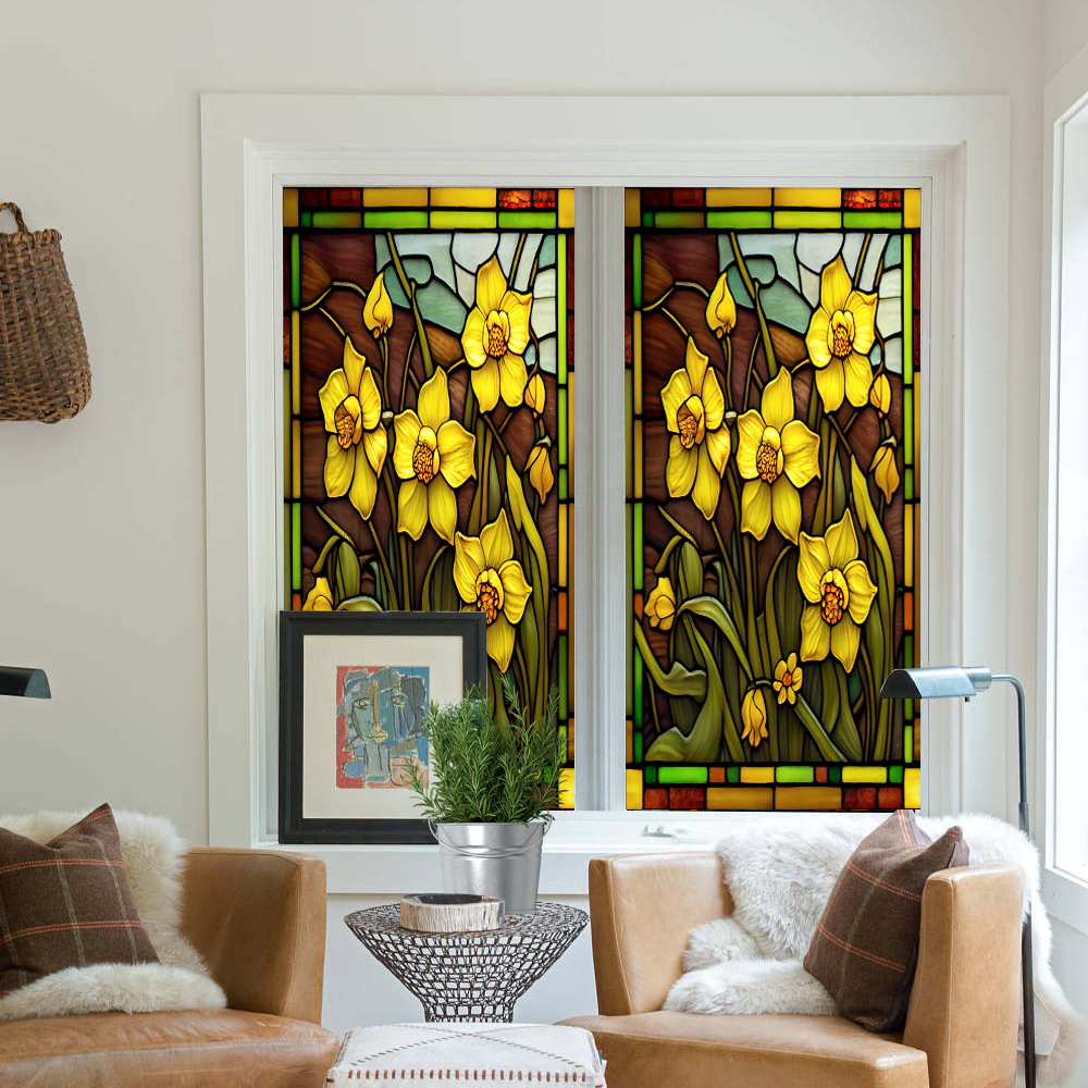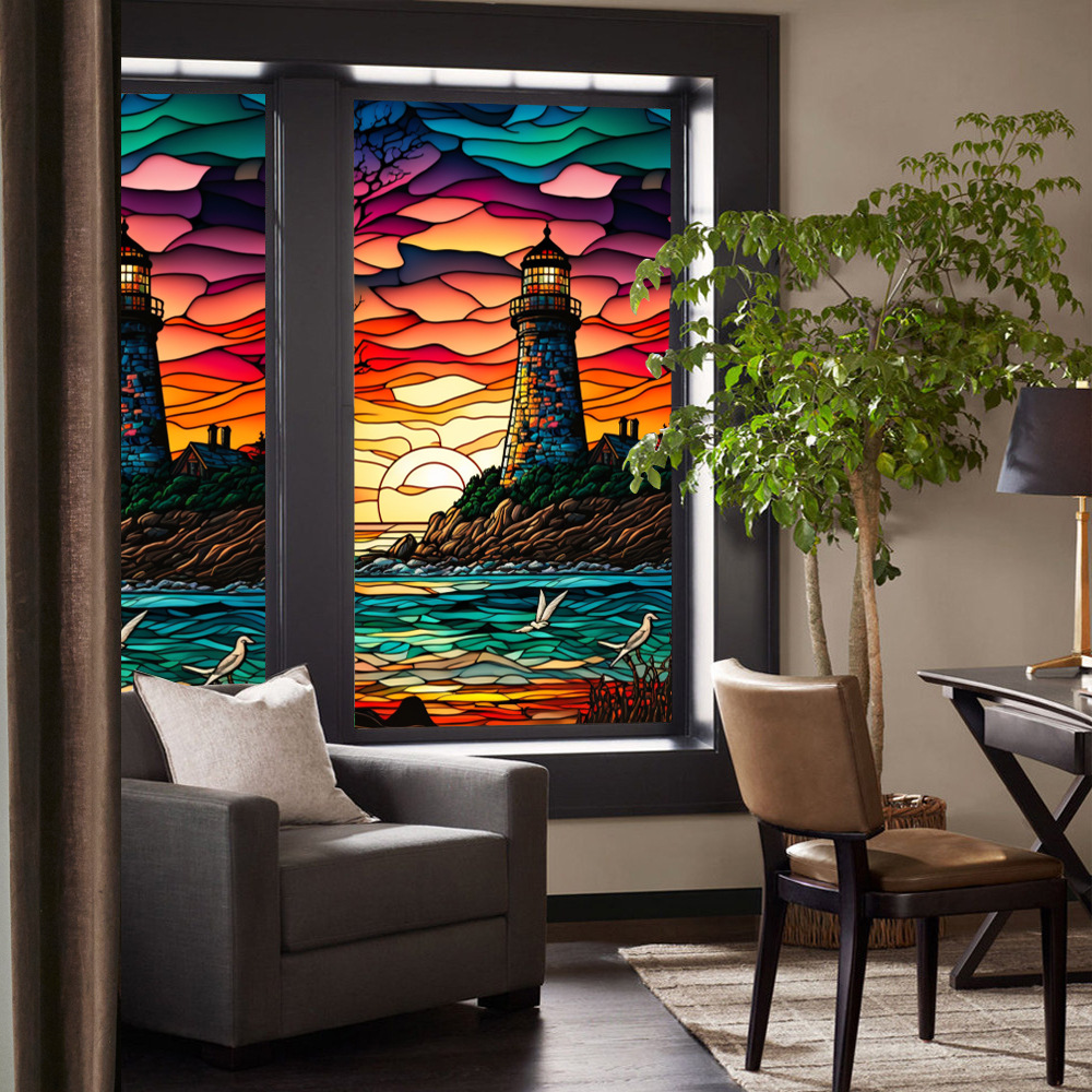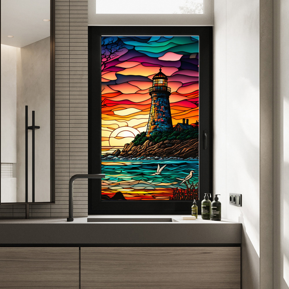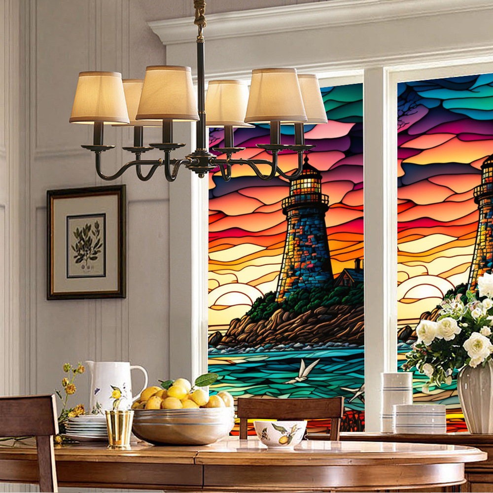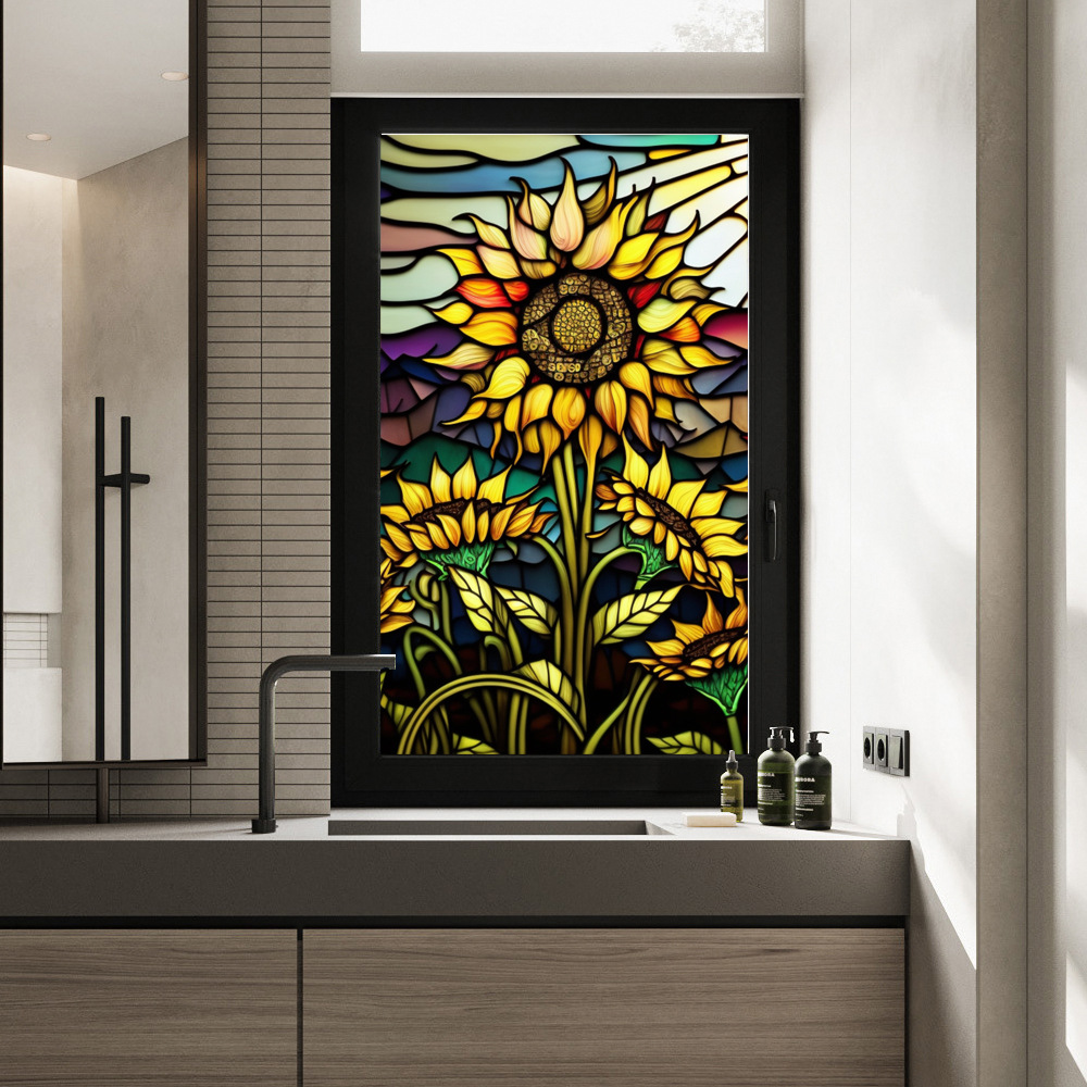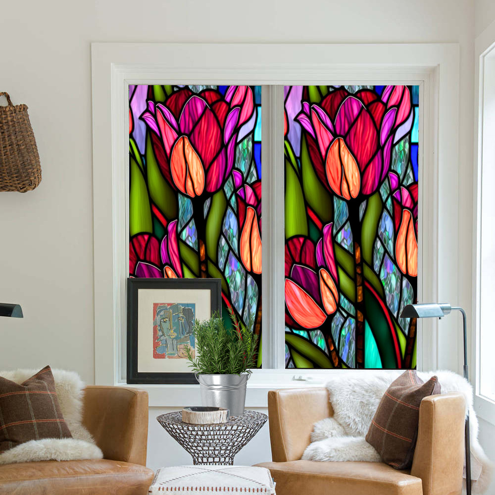 BL112-191 색 복고풍 꽃과 새 PVC 정전기 유리 스티커 접착제 창 필름 이동식 유리 창 그릴스토어 가기