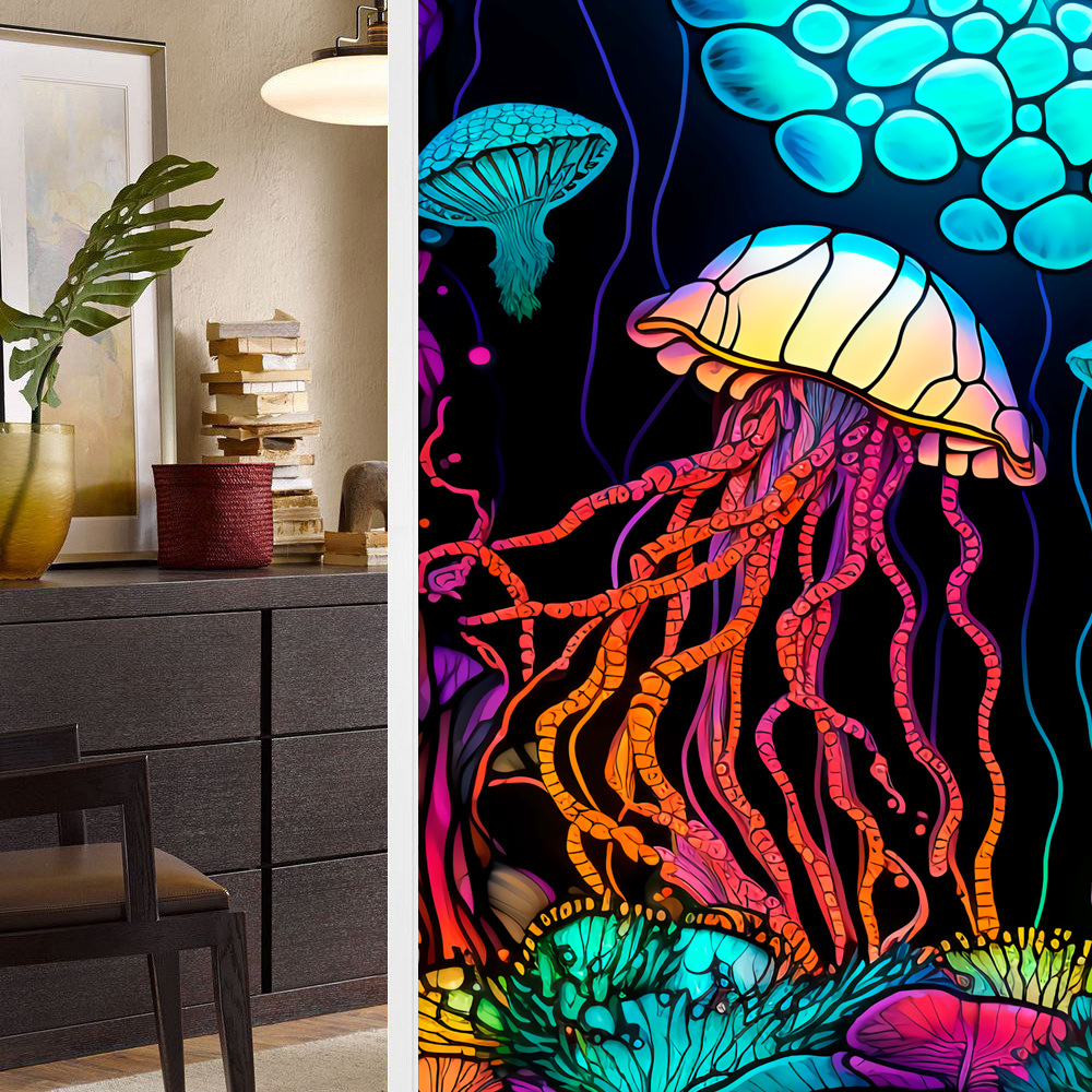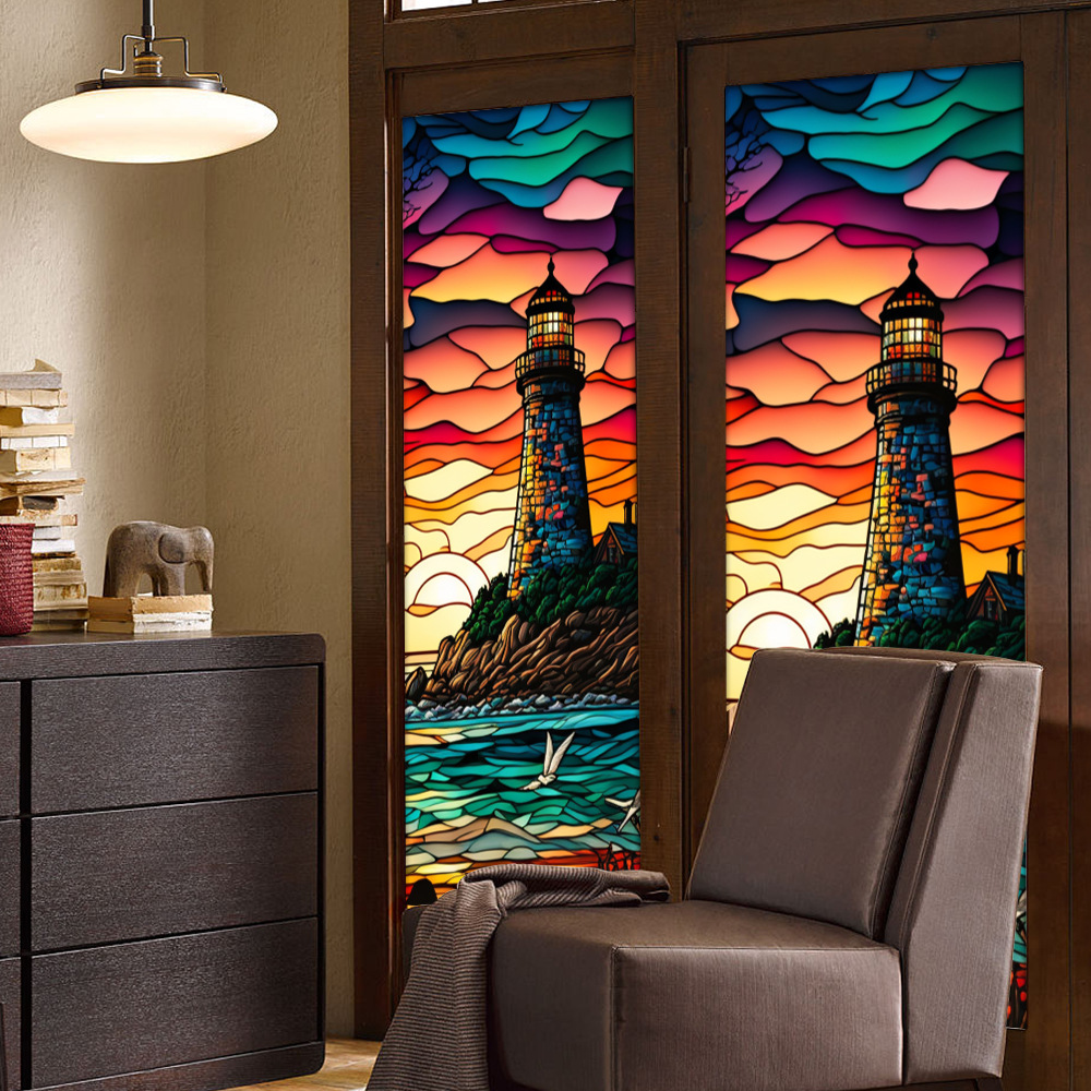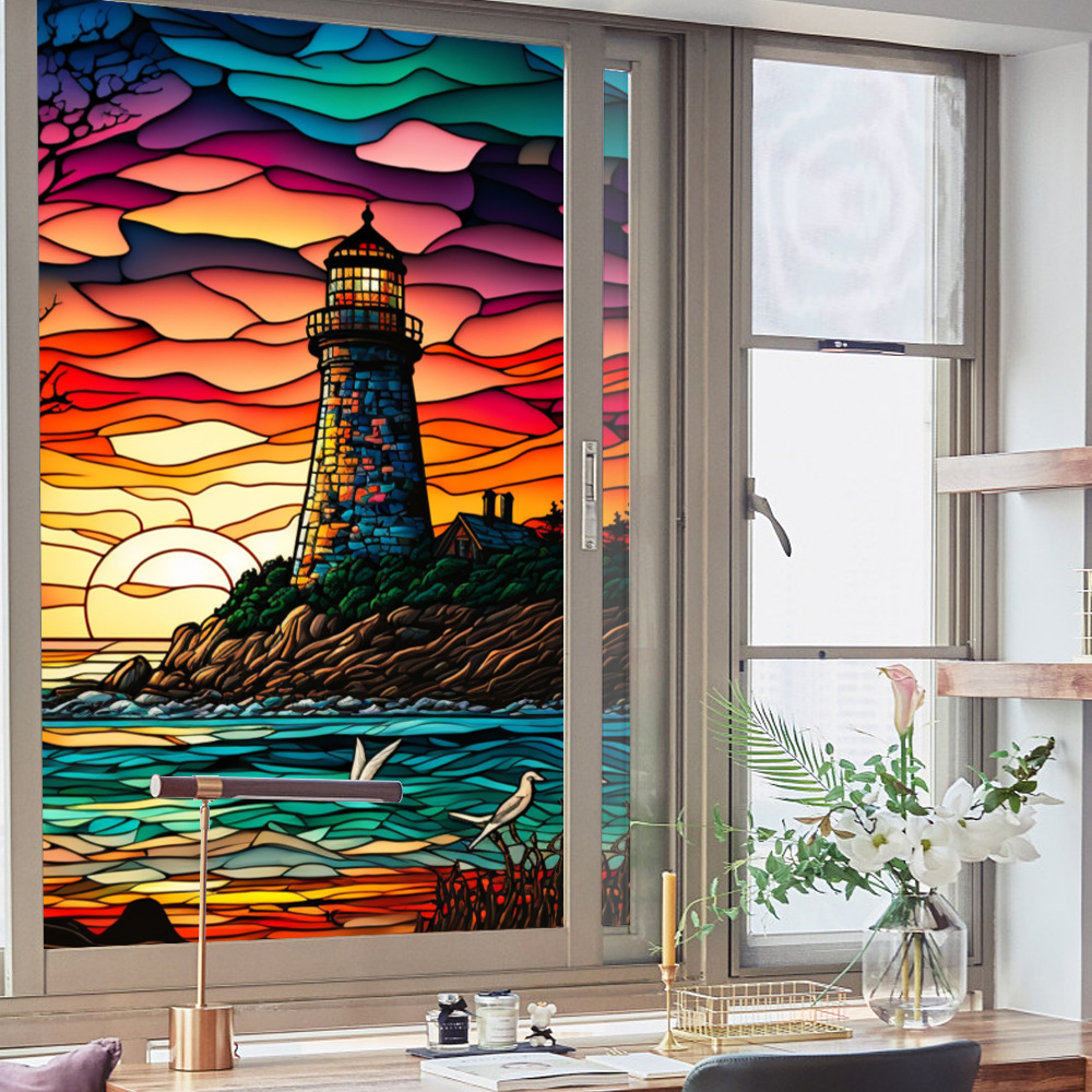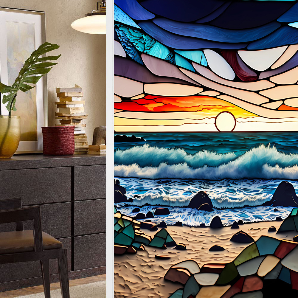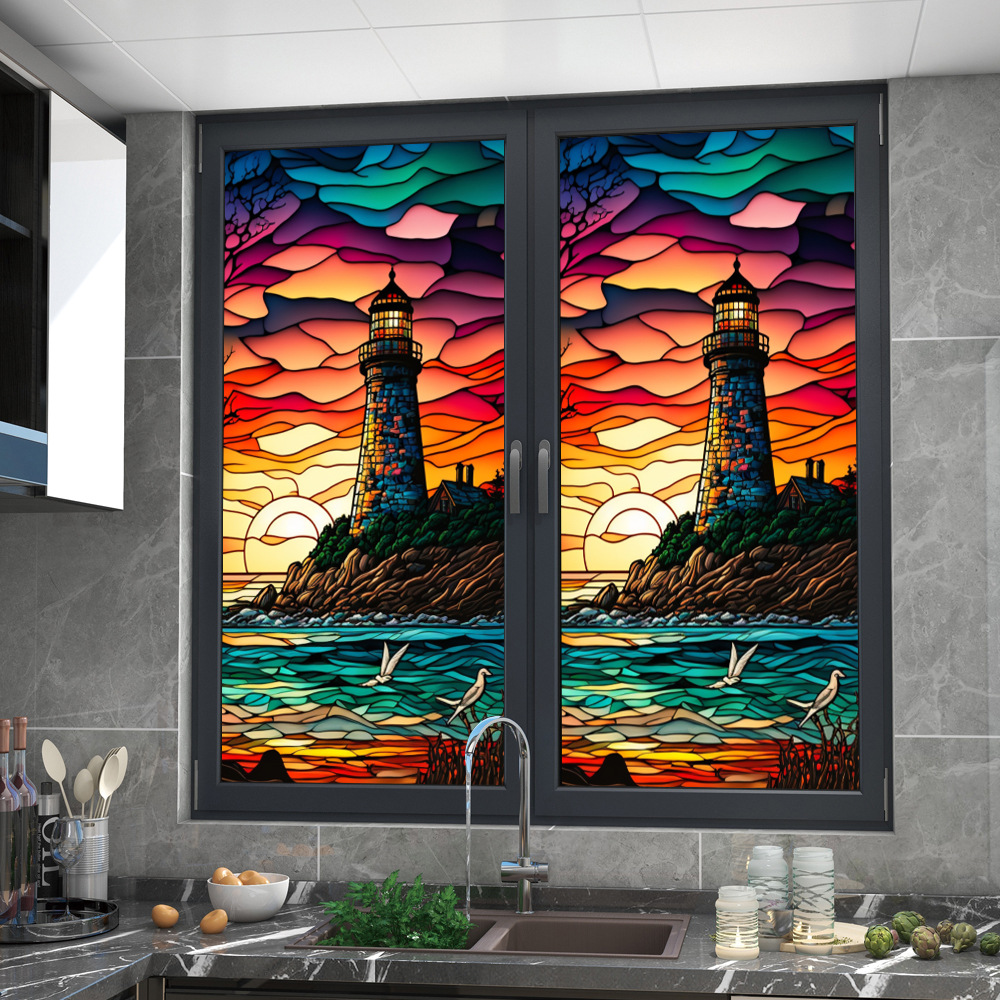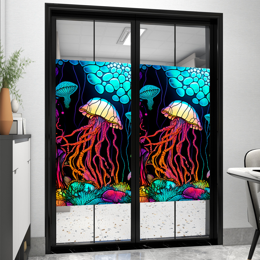 BL112-191 색 복고풍 꽃과 새 PVC 정전기 유리 스티커 접착제 창 필름 이동식 유리 창 그릴스토어 가기