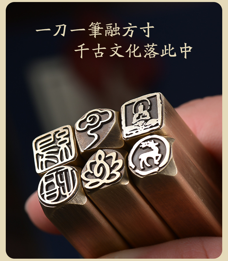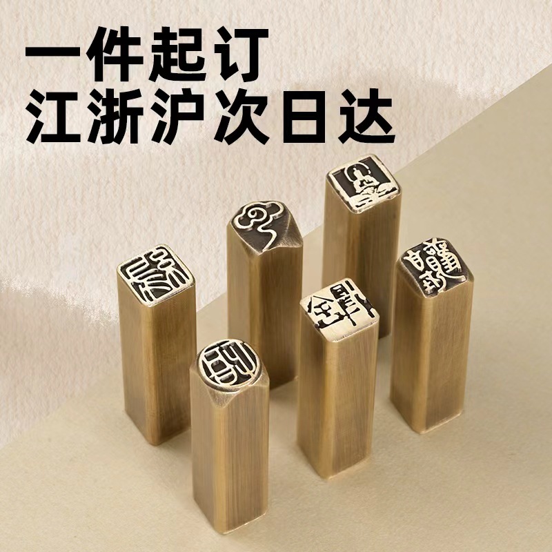 젠지에 완제품 구리 인센 스탬프, 하드펜 중국화 서예 각인, 순황동 레트로 수첩 구리 인감, 제조업체 도매스토어 가기