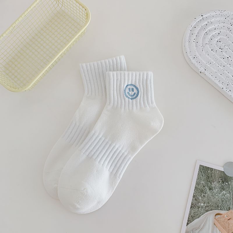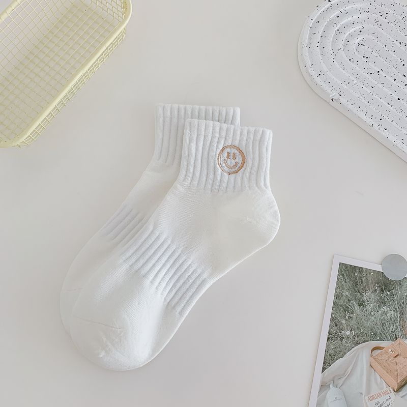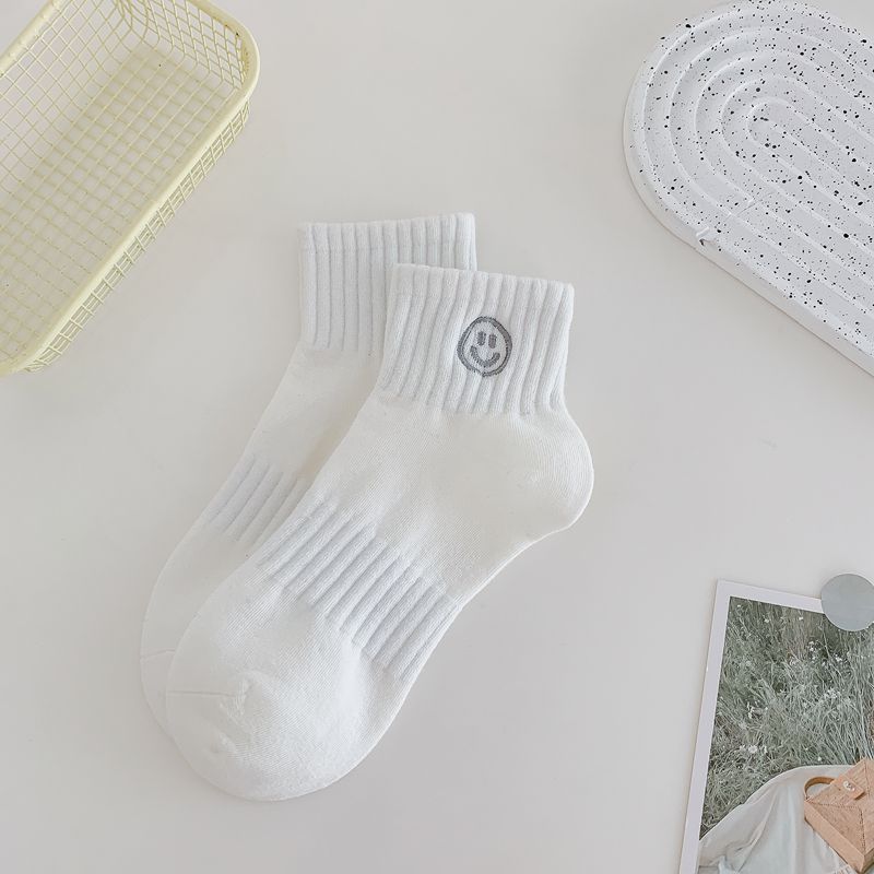 봄과 여름 새로운 흰색 스마일 자수 얇은 면 스포츠 양말 어린이 귀여운 통기성 자수 양말스토어 가기