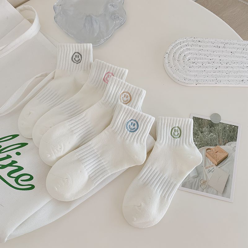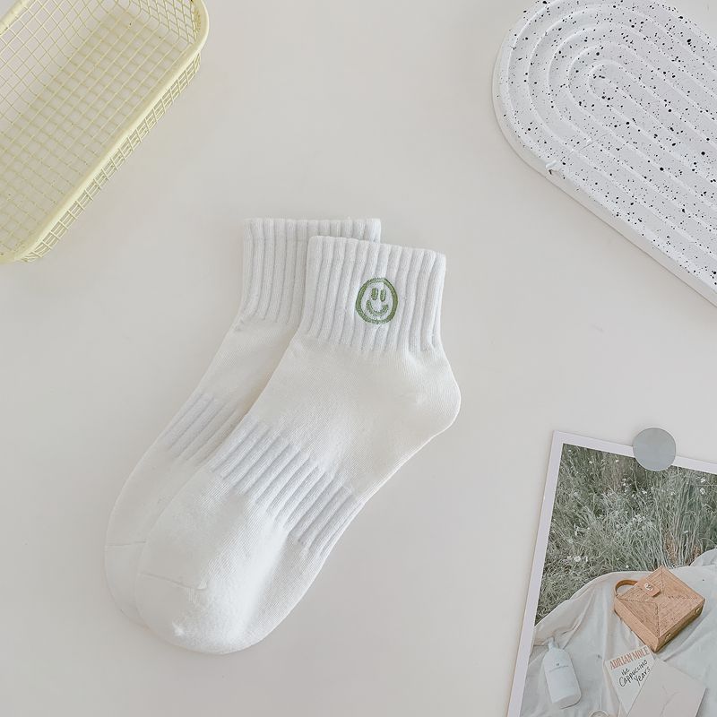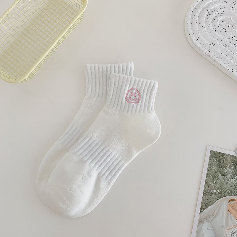 봄과 여름 새로운 흰색 스마일 자수 얇은 면 스포츠 양말 어린이 귀여운 통기성 자수 양말
