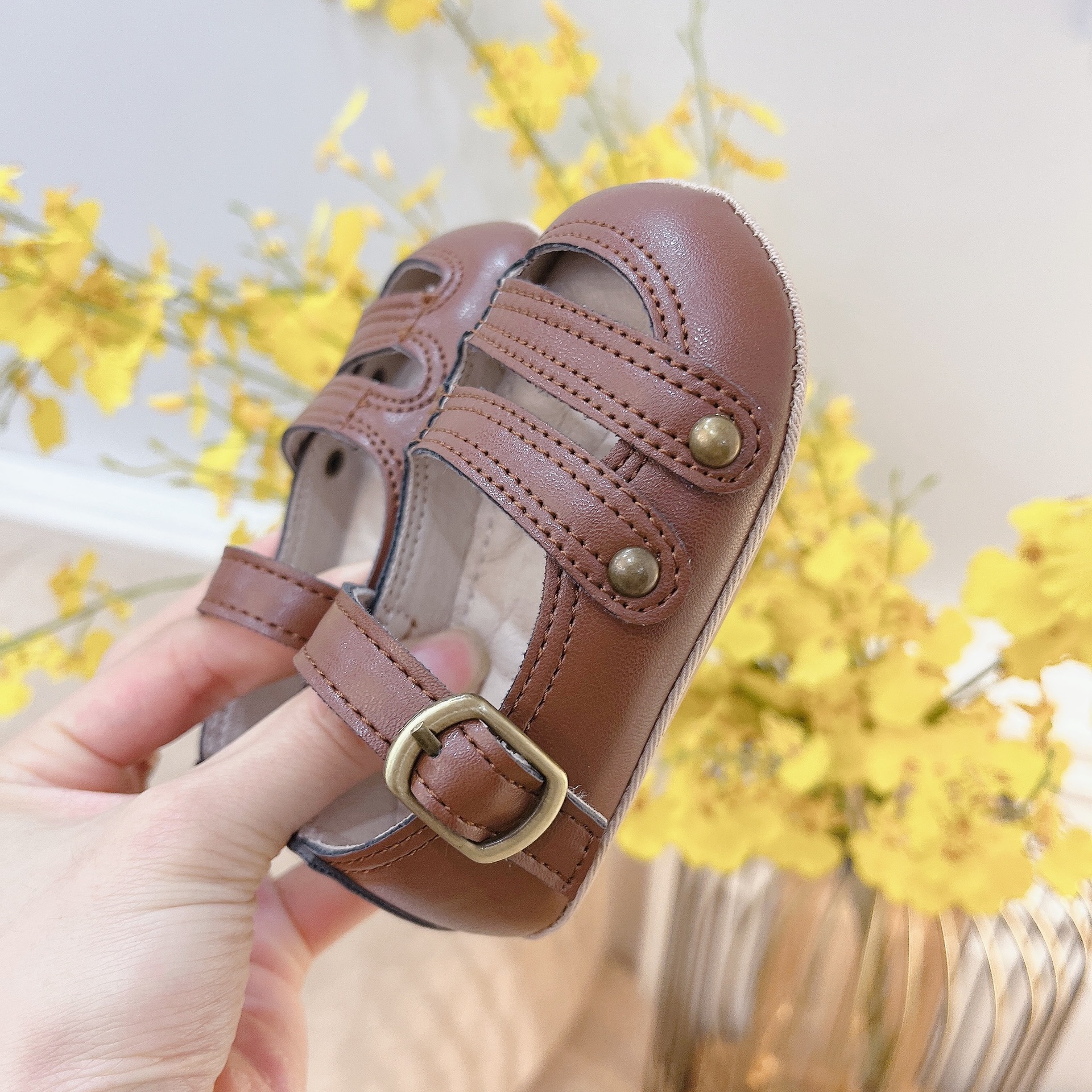 공장 직공급 샌들 중공 둥근 머리 조커 부드러운 바닥 새로운 아기 소녀 여름 아기 유아 신발 도매스토어 가기