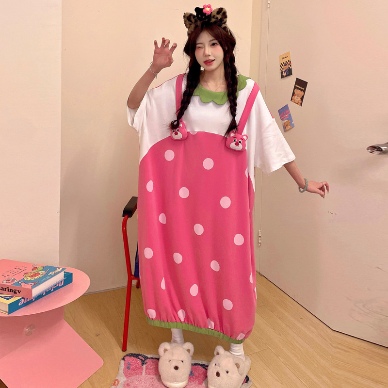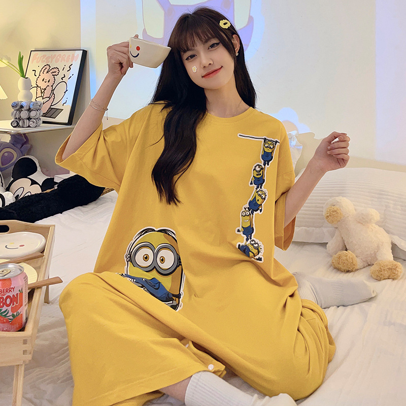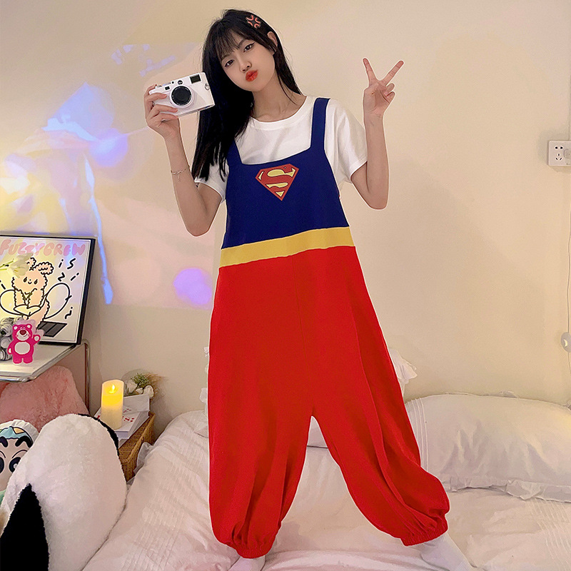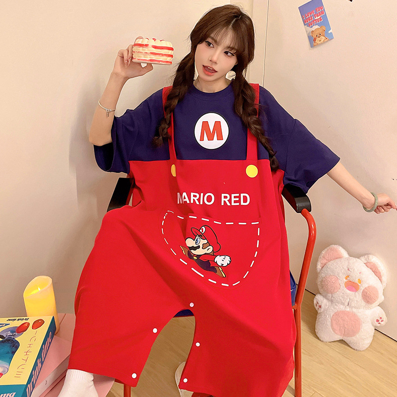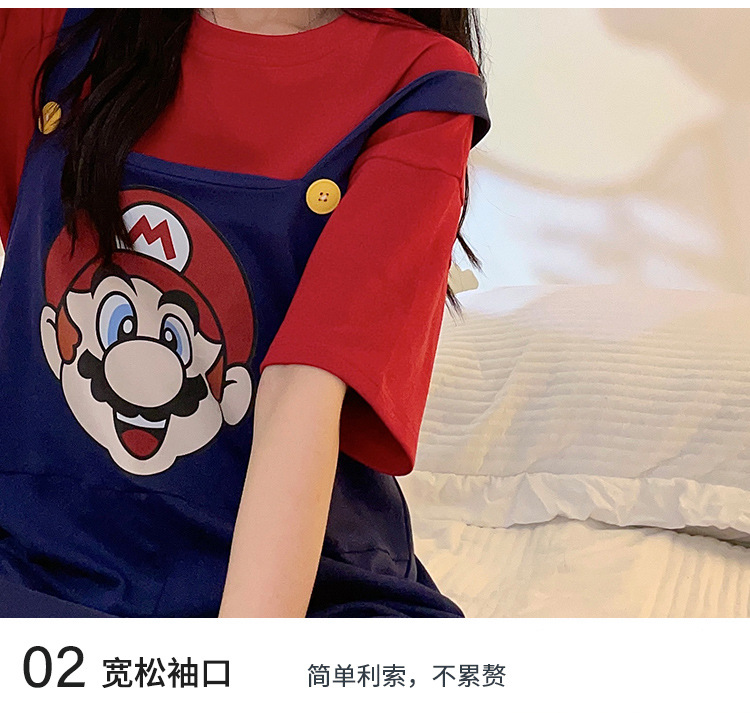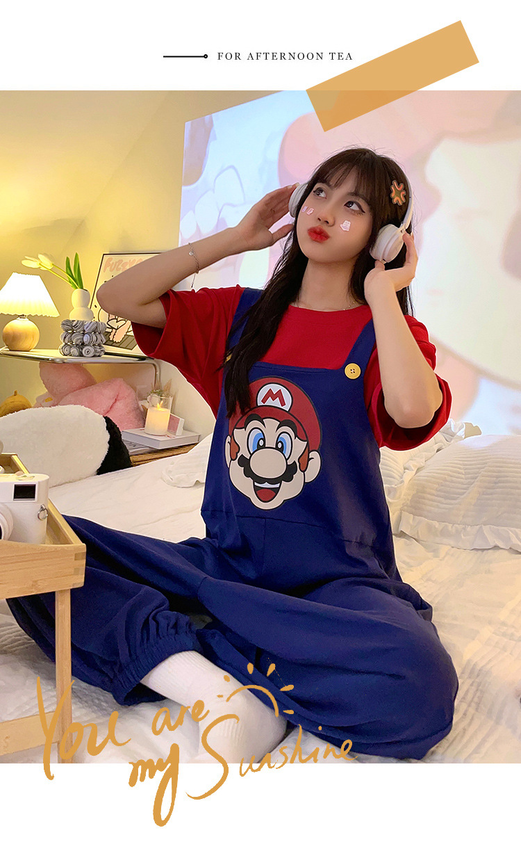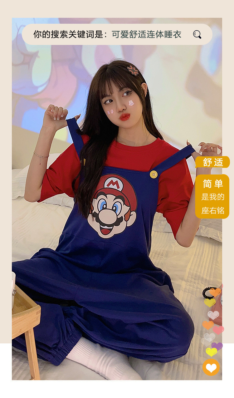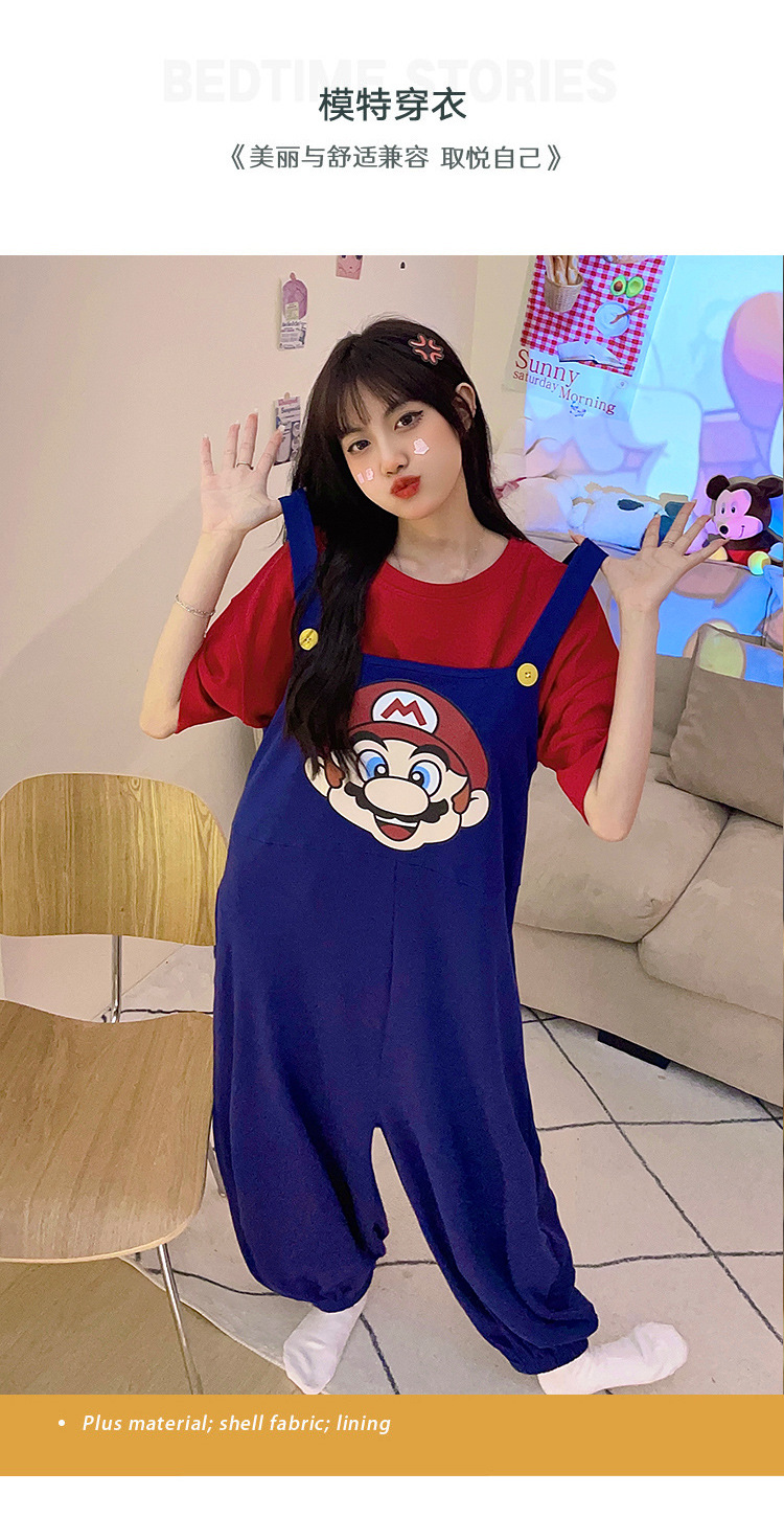 여성의 봄과 여름 얇은 귀여운 만화 소매 바지 면 반팔 외부 세트 소매 파자마스토어 가기