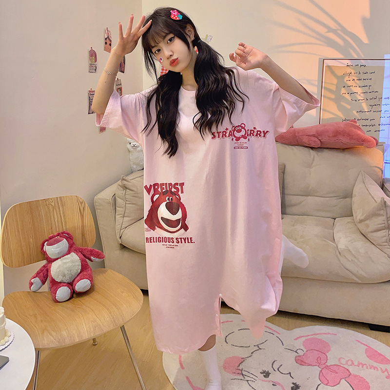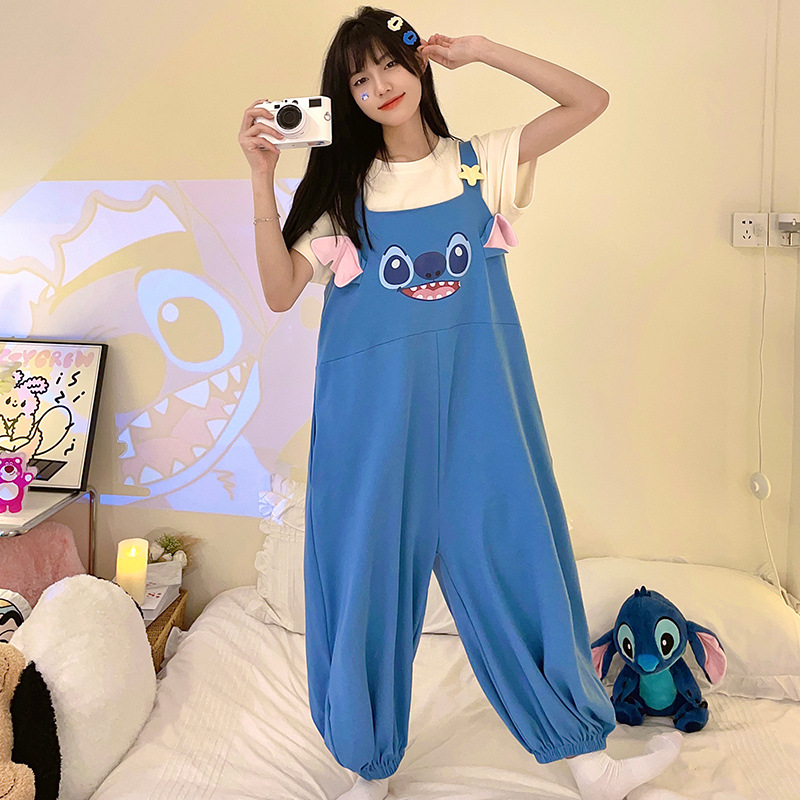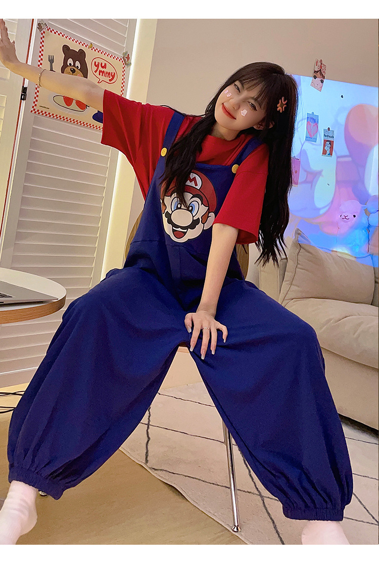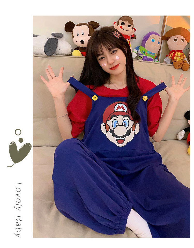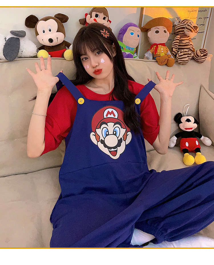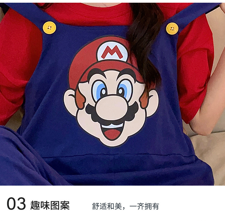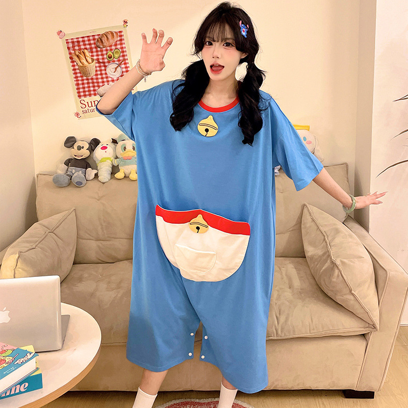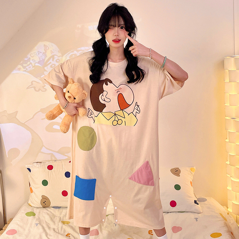 여성의 봄과 여름 얇은 귀여운 만화 소매 바지 면 반팔 외부 세트 소매 파자마스토어 가기