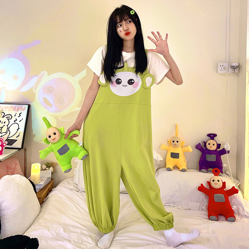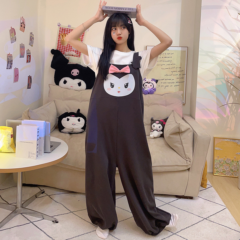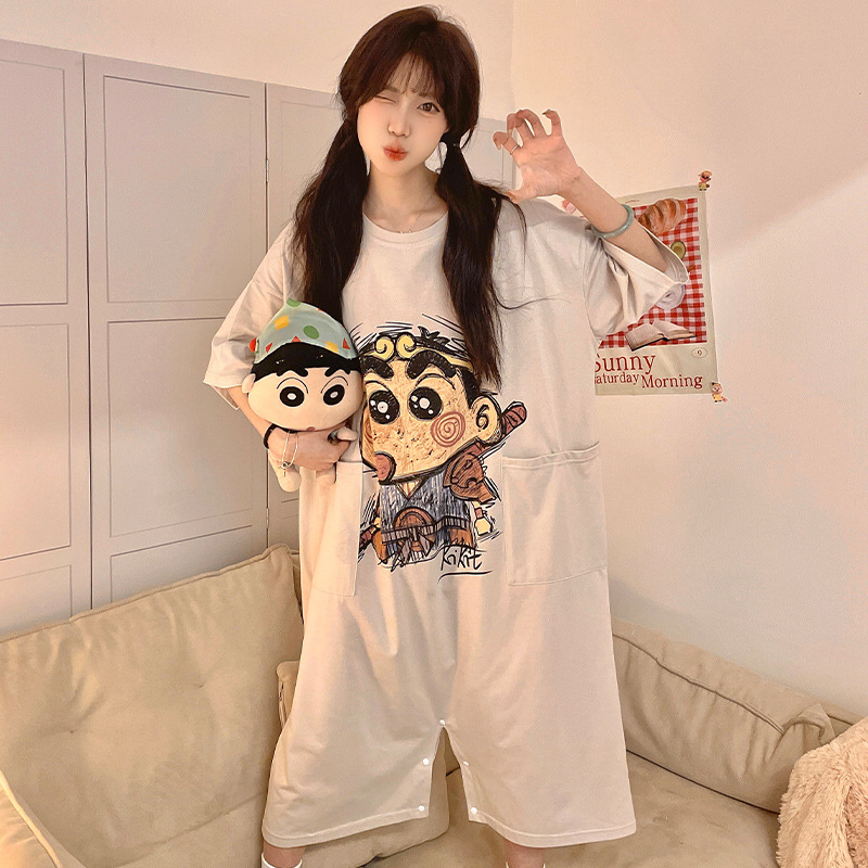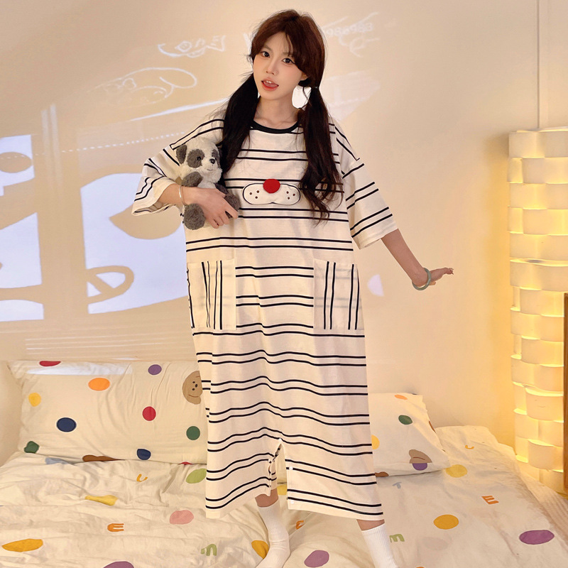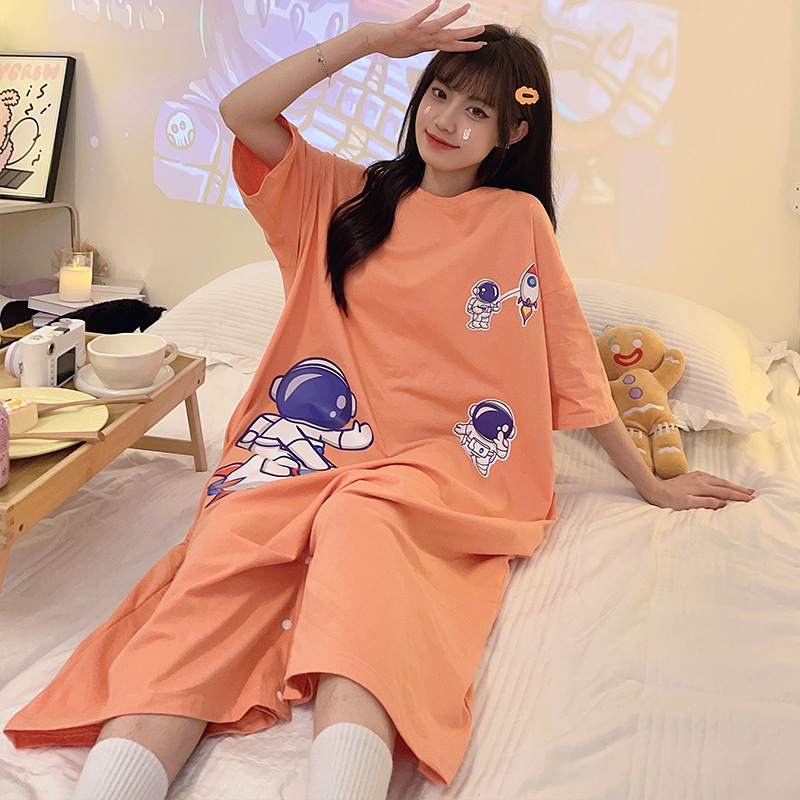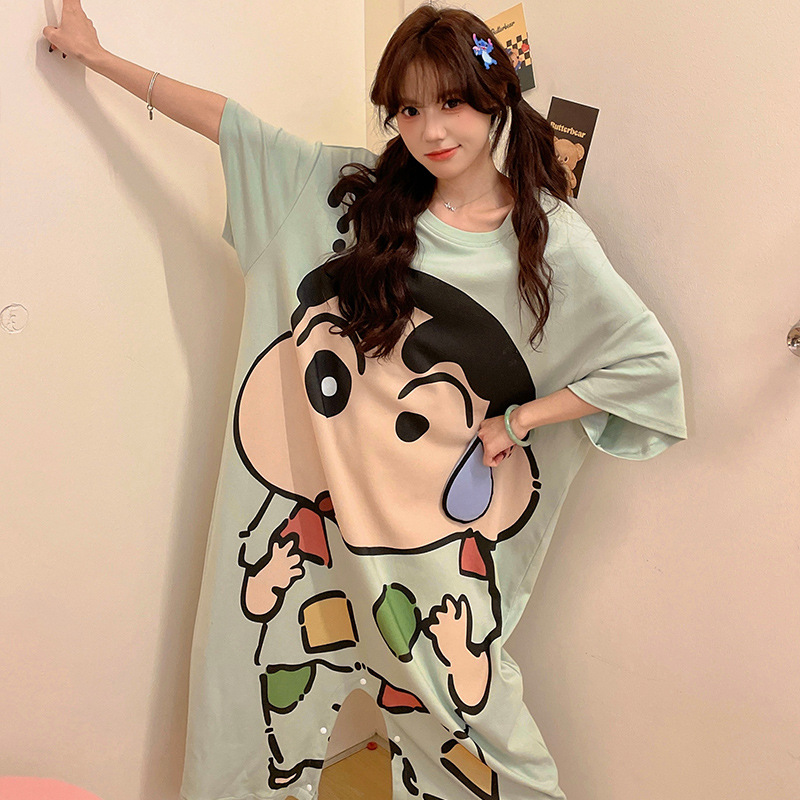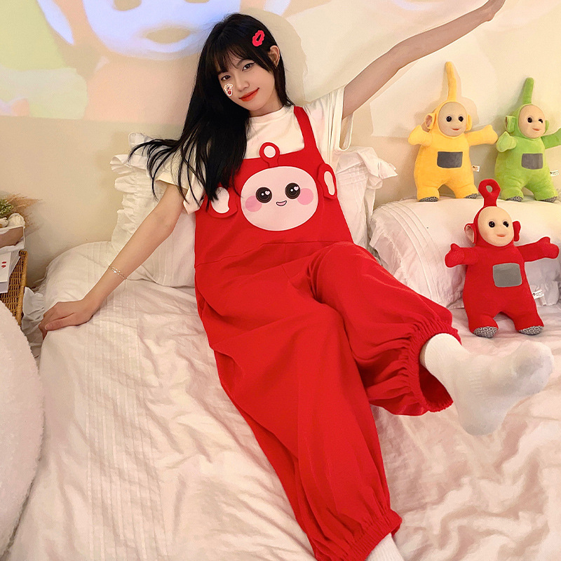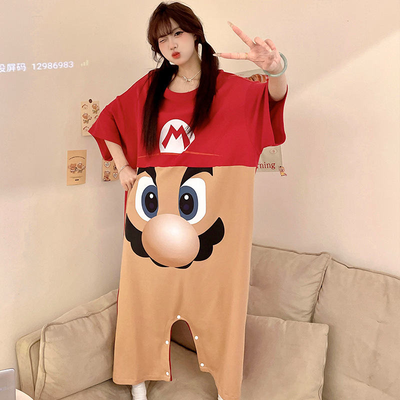 여성의 봄과 여름 얇은 귀여운 만화 소매 바지 면 반팔 외부 세트 소매 파자마스토어 가기