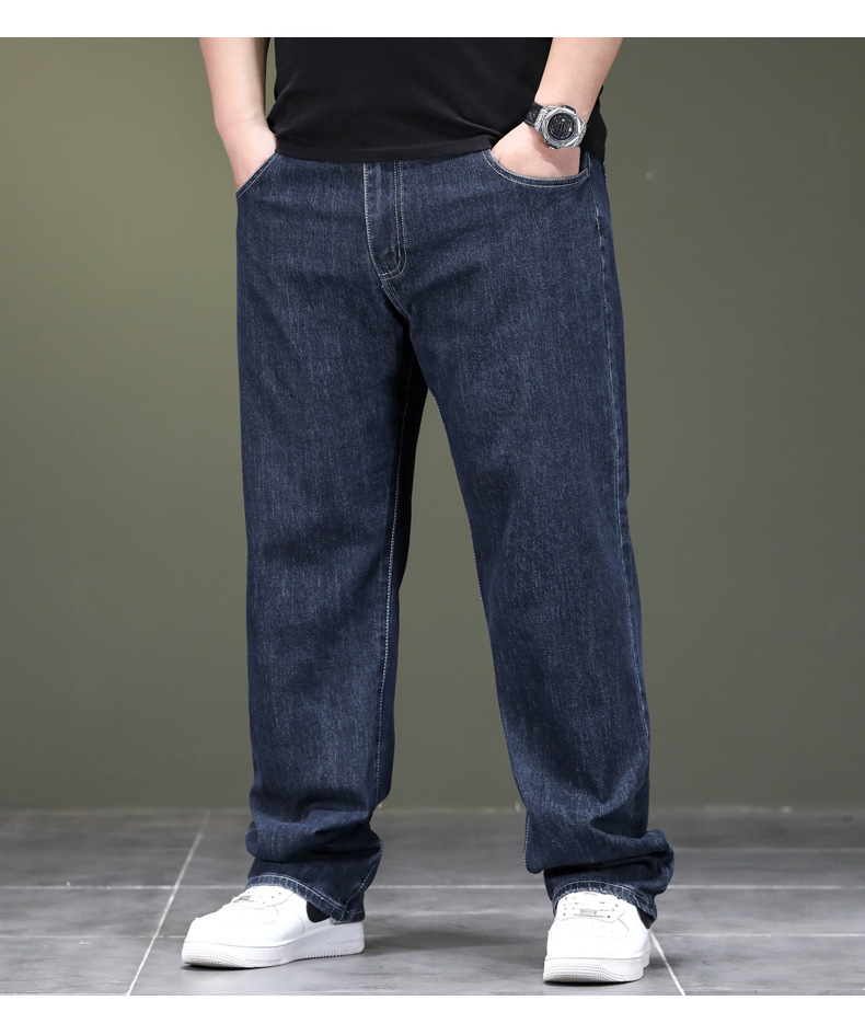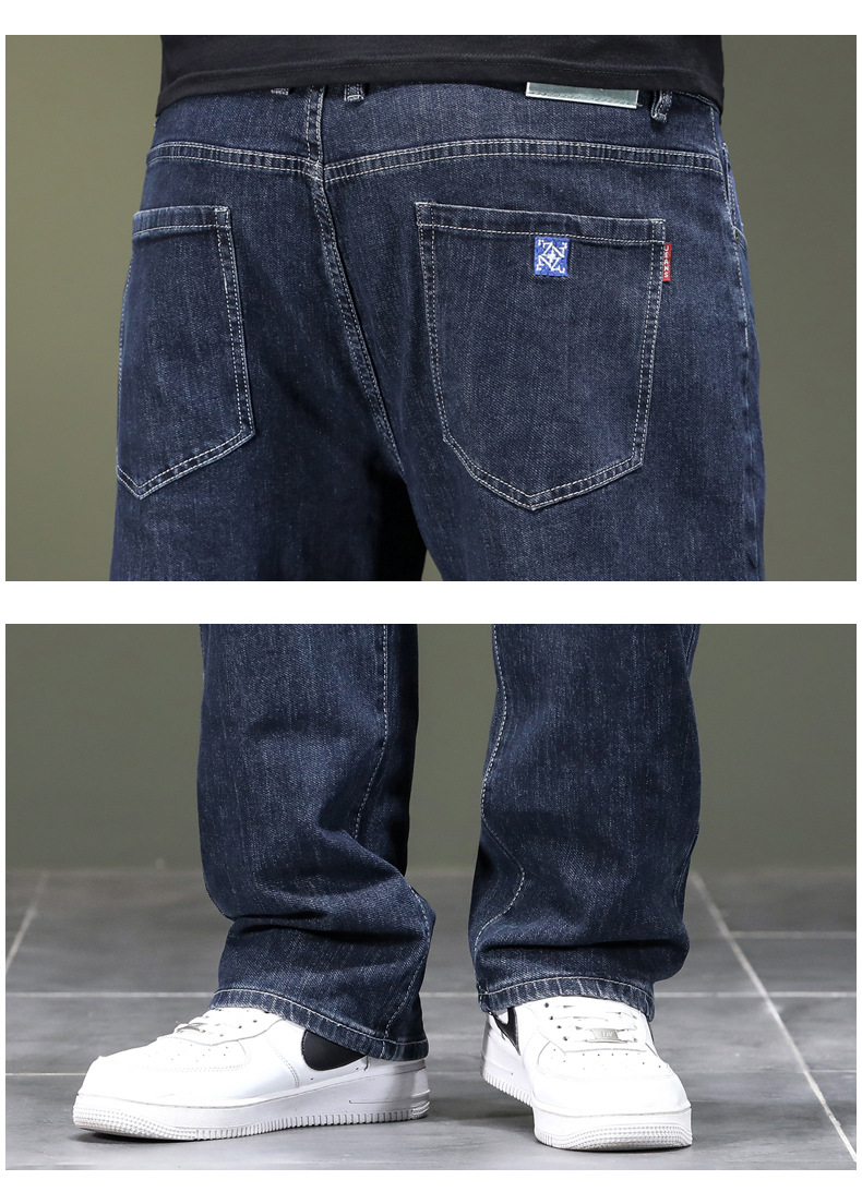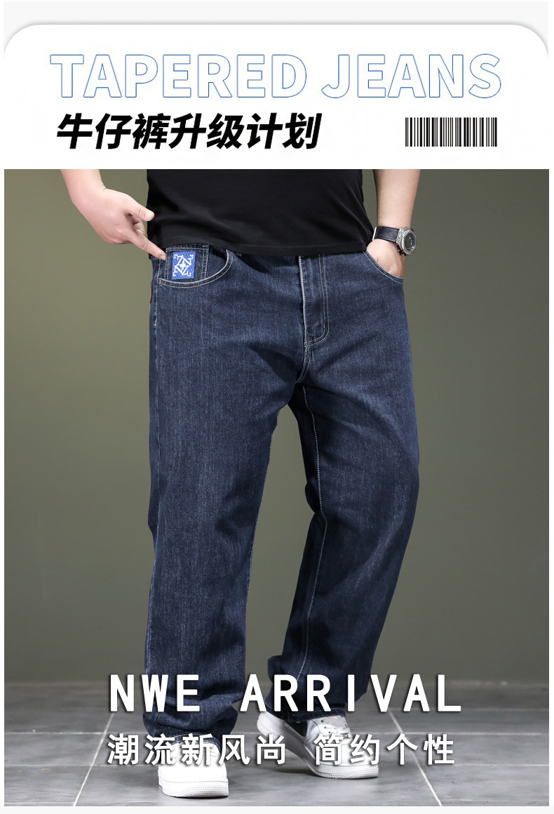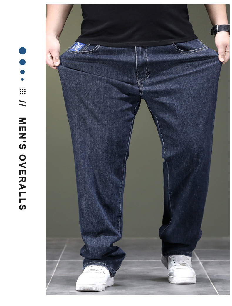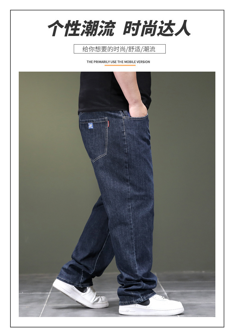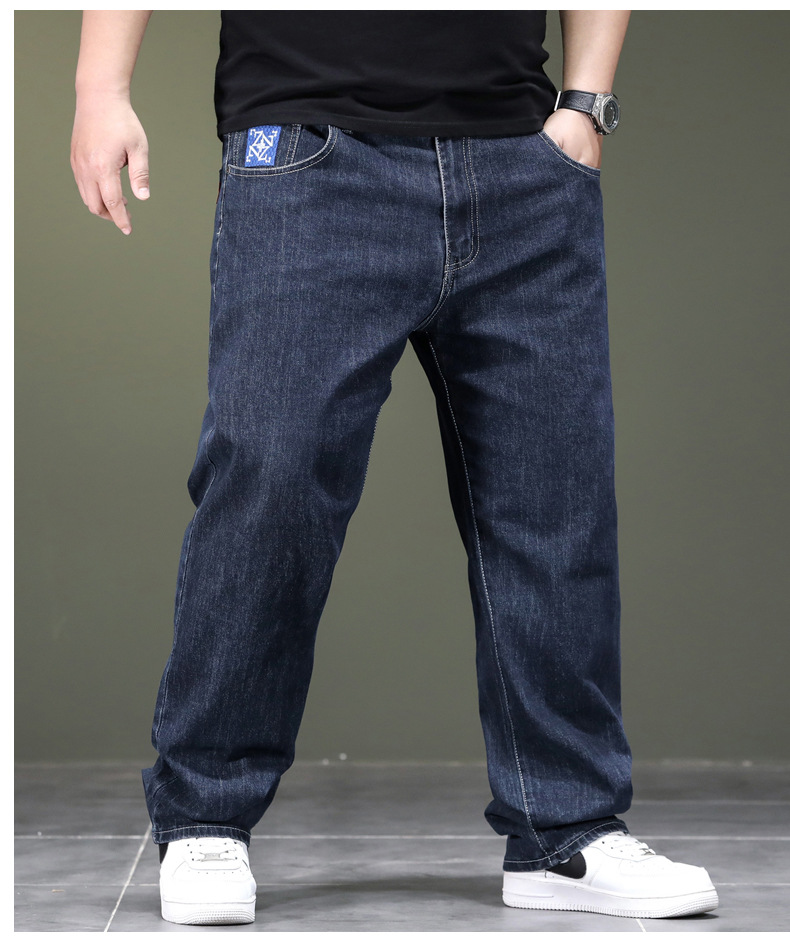 빅사이즈 남성복, 봄여름 자수 블루 데님 팬츠, 남성용 플러스 사이즈 스트레이트 레그 비즈니스 팬츠스토어 가기