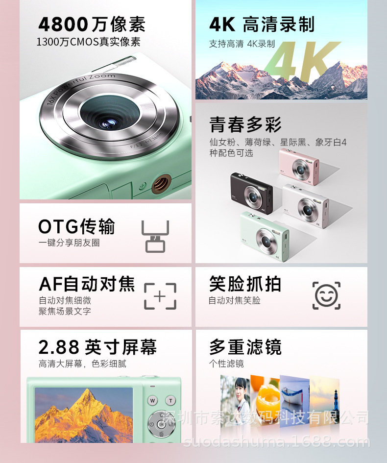국경 간 도매 고화질 디지털 카메라 학생용 어린이 가정용 미니 셀카 카메라 고화질 촬영 ccd