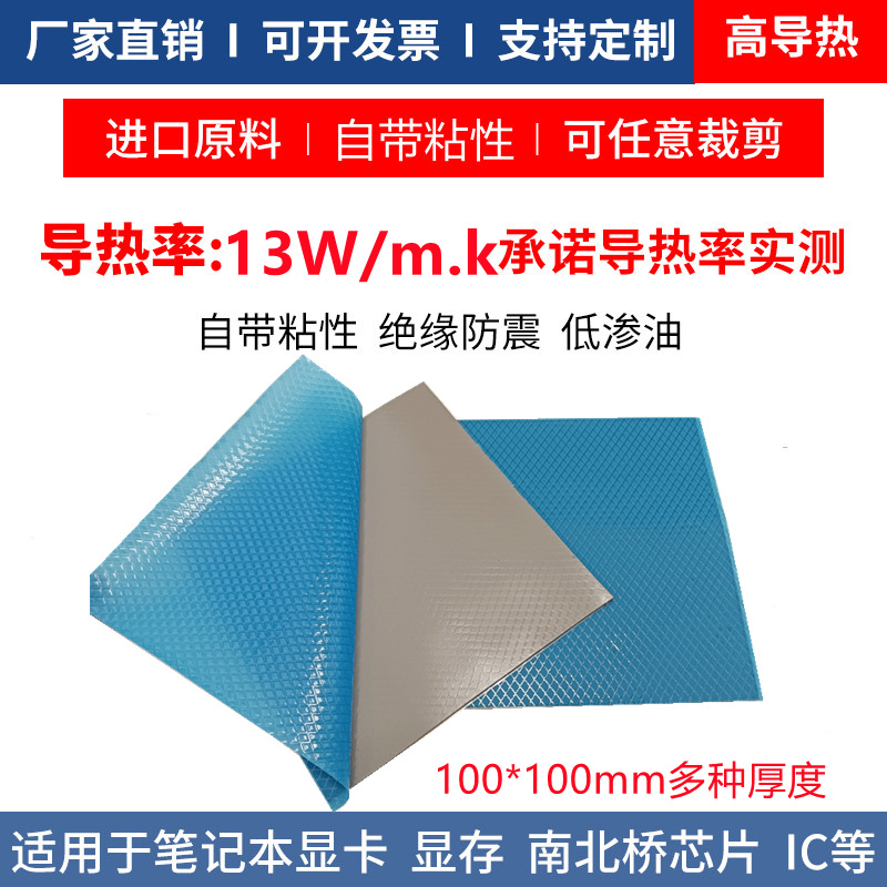 고전도성 열전도 실리콘 패드 13W 무접착 방열 패치 CPU 그래픽 카드 컴퓨터 냉각 패드 100*100MM
