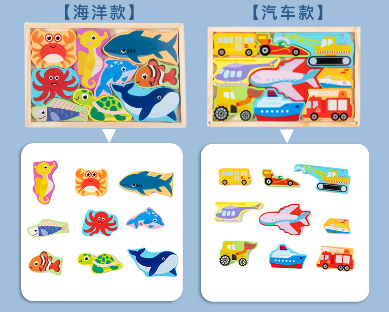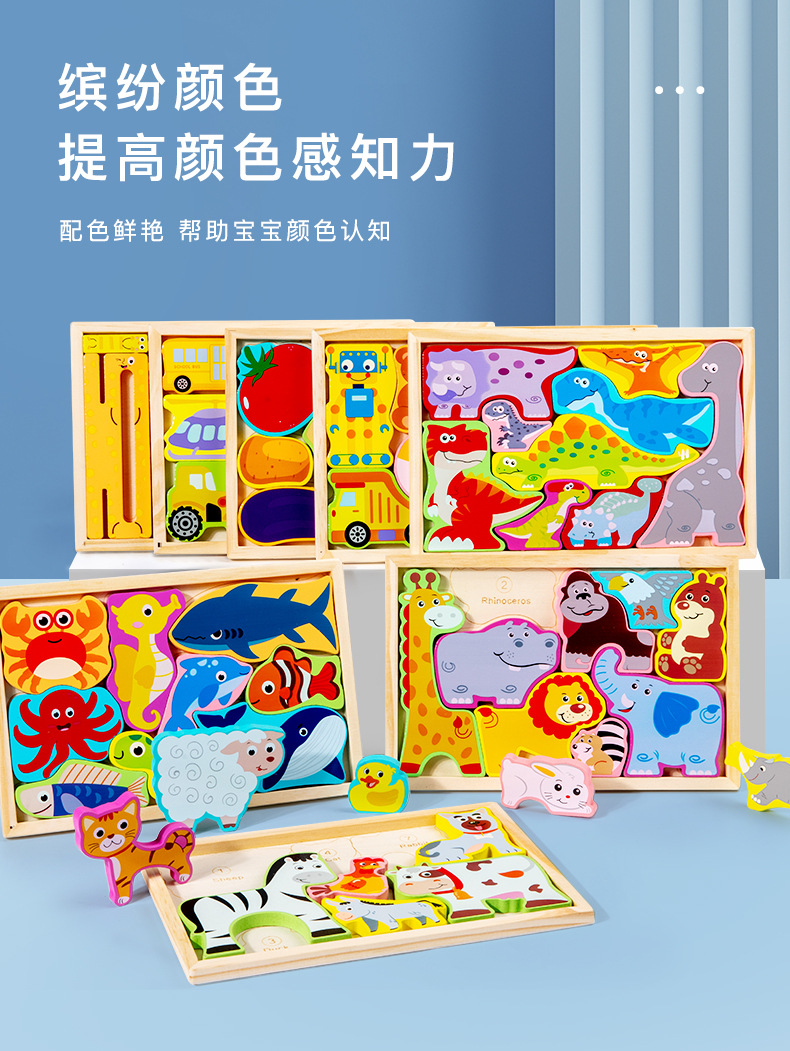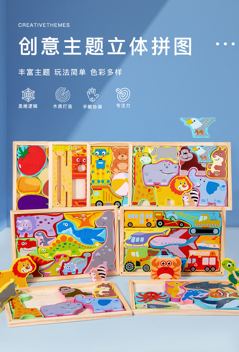 어린이 퍼즐 창조적 인 나무 입체 퍼즐 테트리스 동물 교통 과일 퍼즐 빌딩 블록 장난감스토어 가기