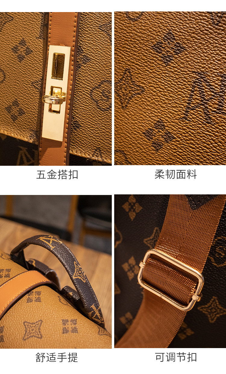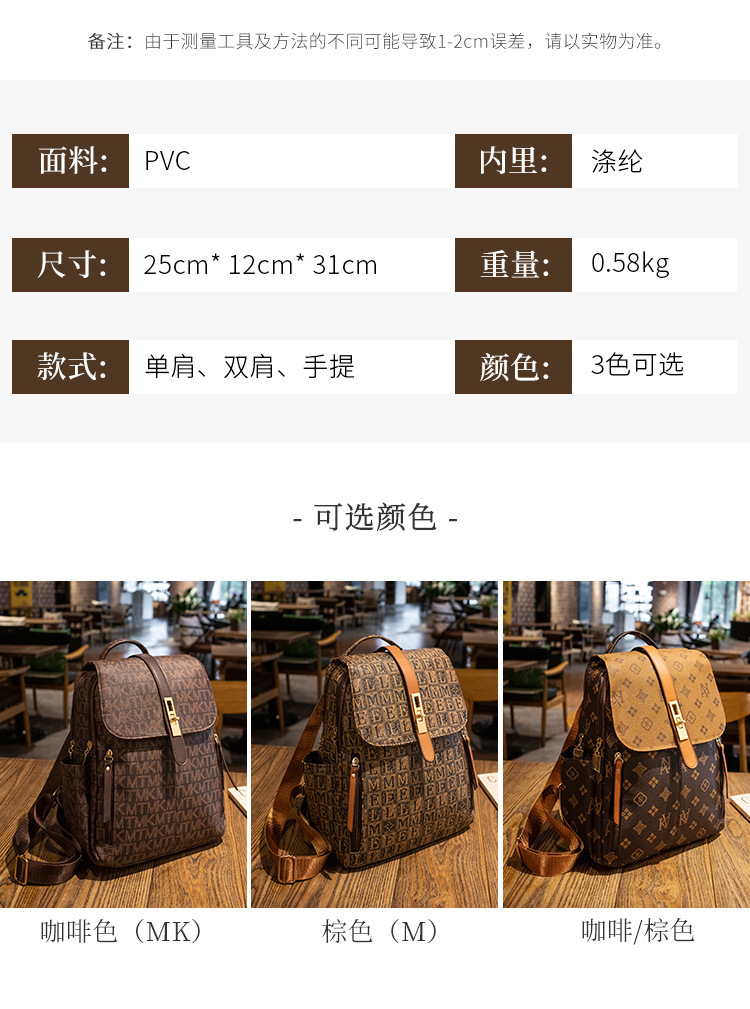 【产品特色】产品使用定制仿牛仔布纹路PVC面料,颜色自然,手感舒适柔软;产品除背后的双肩背带以外另外单独配置同主料单肩带,增加产品的更多背负选择;使用加粗加重挂镀工艺的定制五金配件,光泽度好,拉力强,寿命长;产品内部使用加厚里布,顺滑舒适,不易磨损;内部小袋配置主料包边设计,美观且耐磨;产品使用丝质缝纫线,拉力均匀车线紧密,简洁大方。