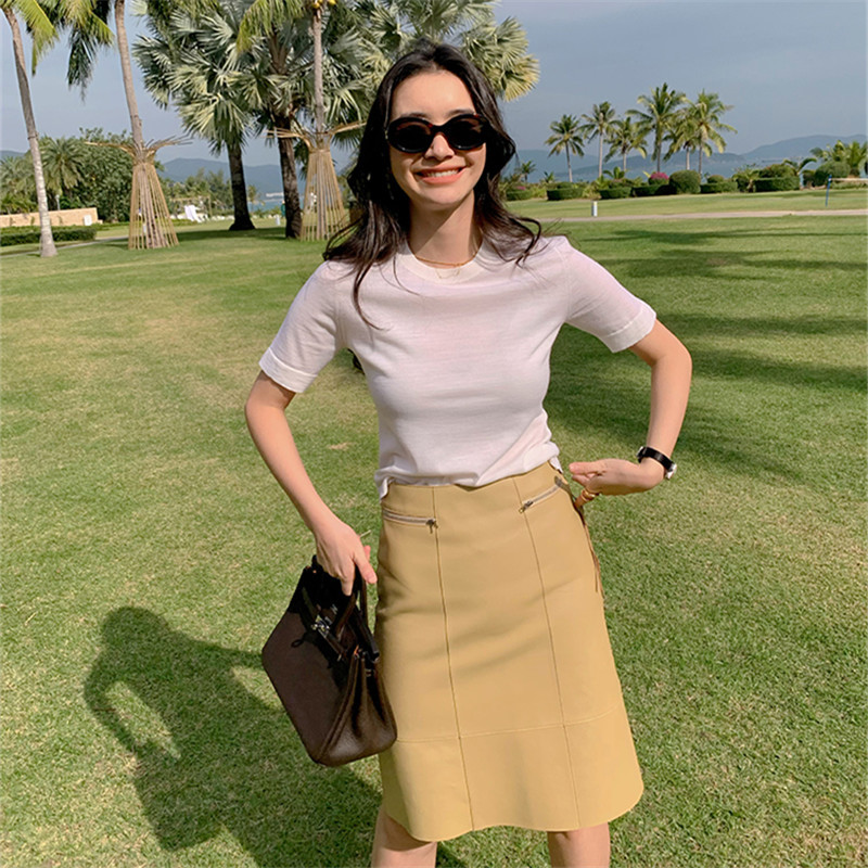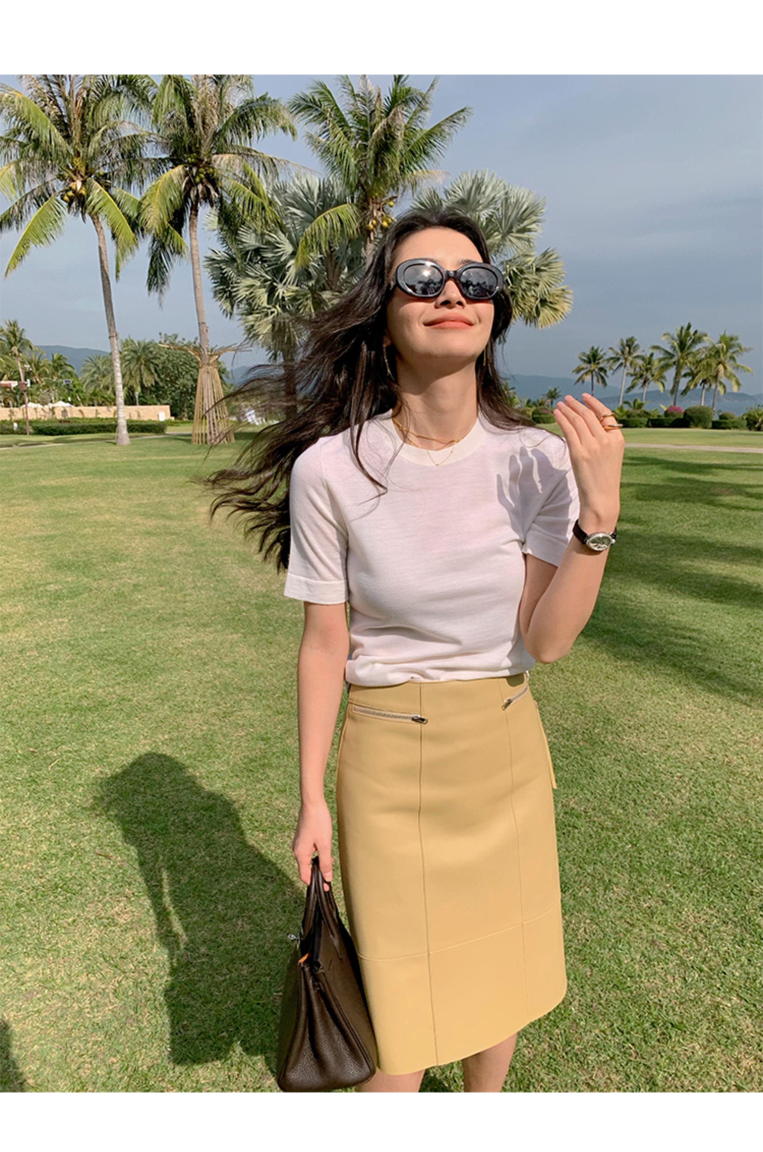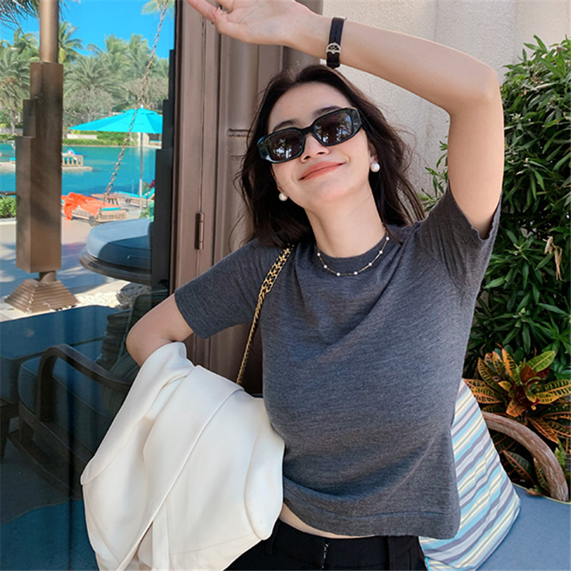 2024 봄 여름 초극세 울 니트 반팔 여성용 루즈 슬리밍 티셔츠 니트 스웨터 베이스 레이어 다용도 탑스토어 가기