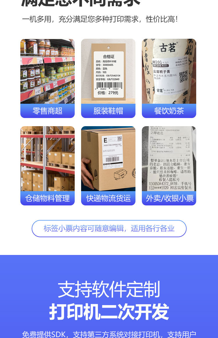 열 라벨 프린터 바코드 2 차원 코드 멀티 인터페이스 병원 우유 차 가게 사용 스티커 프린터