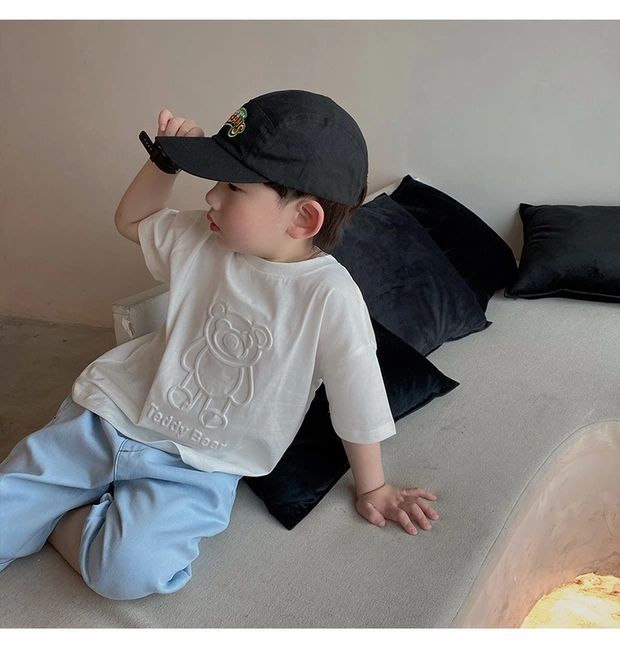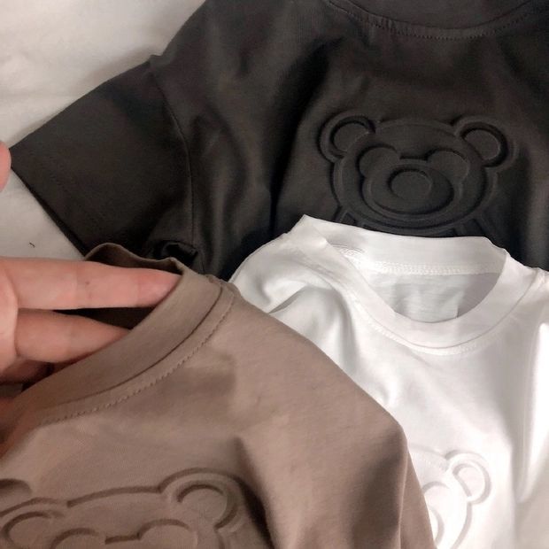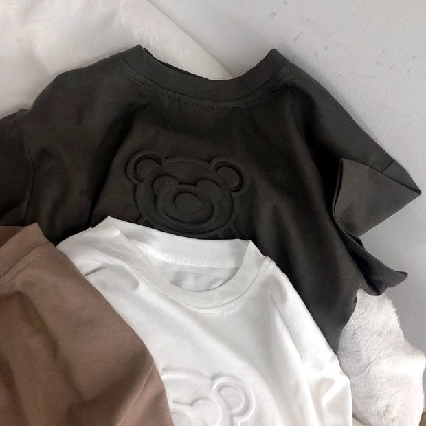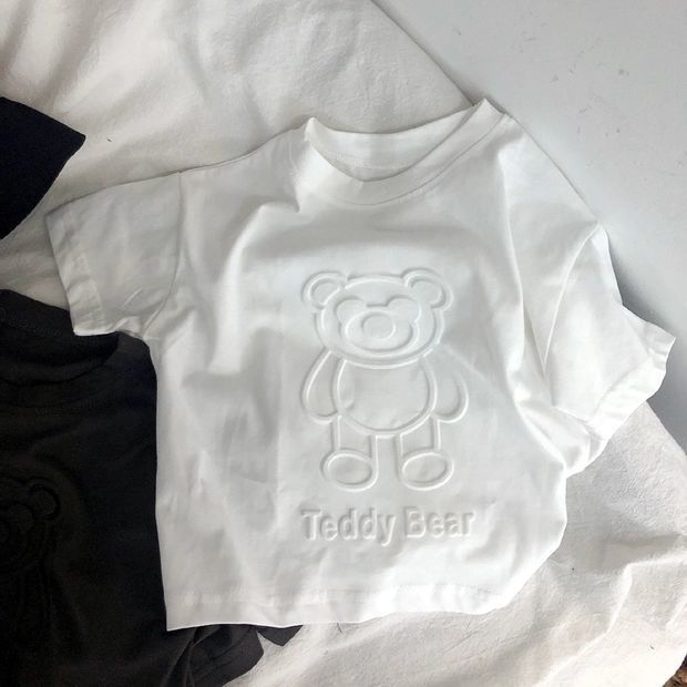 2024 소년 티셔츠 인쇄 곰 어린이 3 차원 연면 여름 반소매 티셔츠 여성 캐주얼 탑 베이스