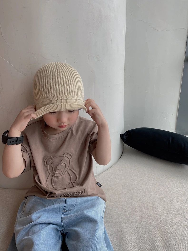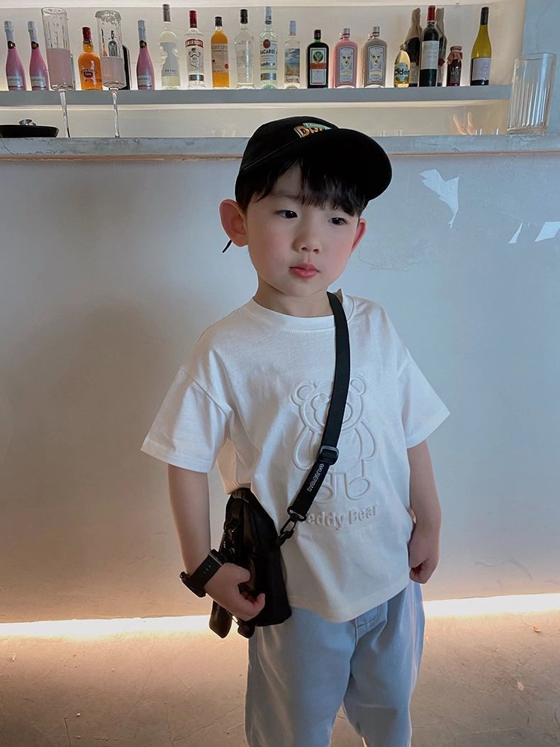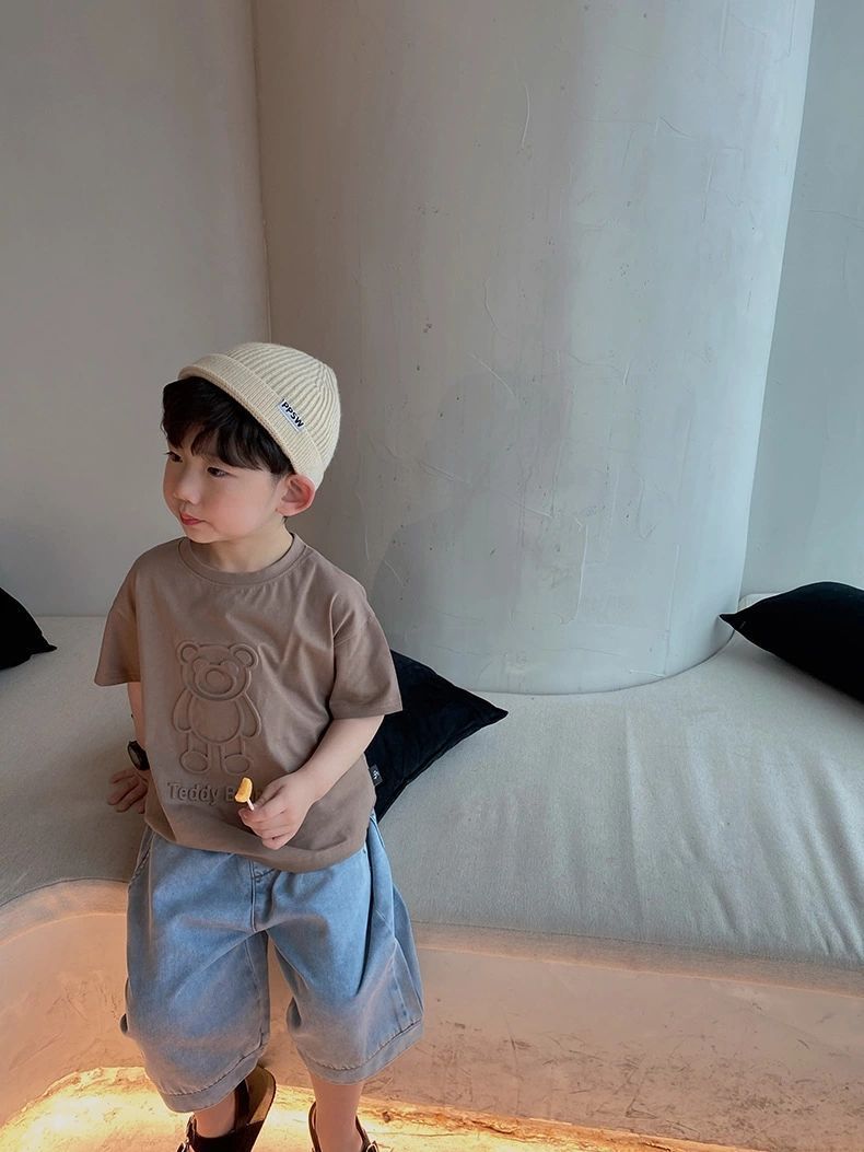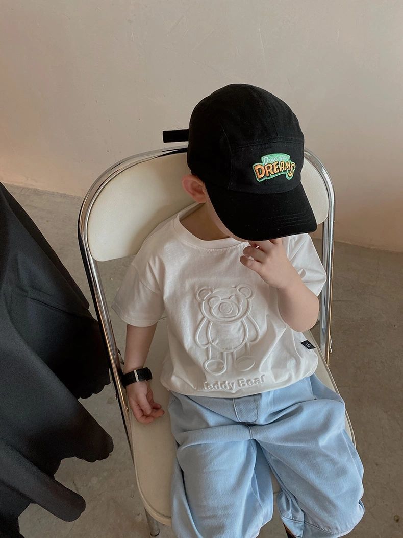 2024 소년 티셔츠 인쇄 곰 어린이 3 차원 연면 여름 반소매 티셔츠 여성 캐주얼 탑 베이스스토어 가기