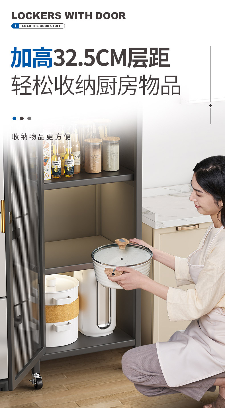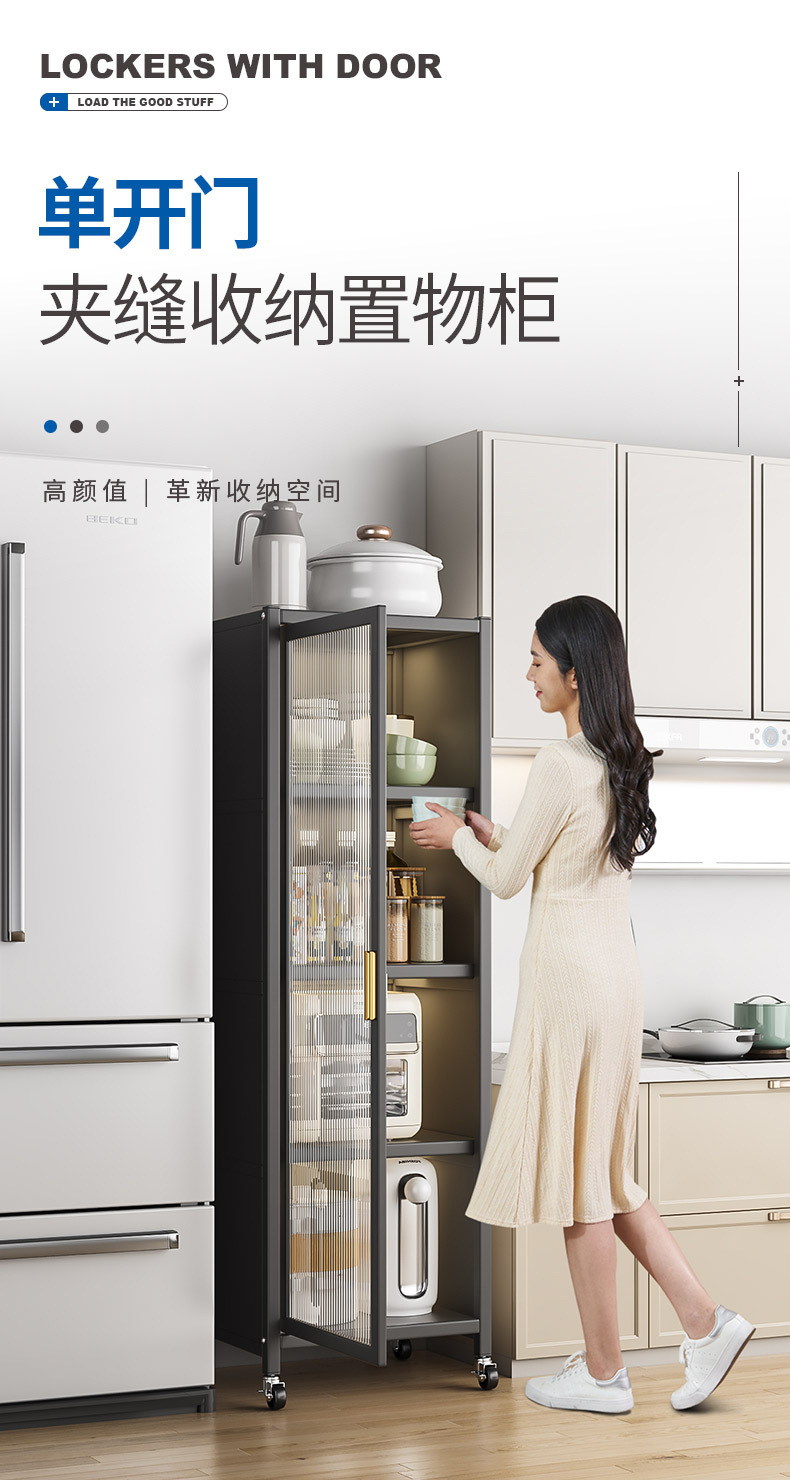 주방 수납 랙 수납 캐비닛 틈새 캐비닛 도어 냉장고가있는 바닥 스탠딩 조리기구 좁은 간격 보관 그릇 및 접시 보관함스토어 가기