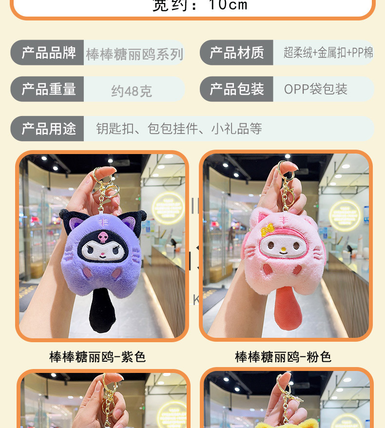 롤리팝 토끼 플러시 펜던트, 멜로디 인형, 도매 노점상 상품, 인형 열쇠고리, 플러시 장난감스토어 가기