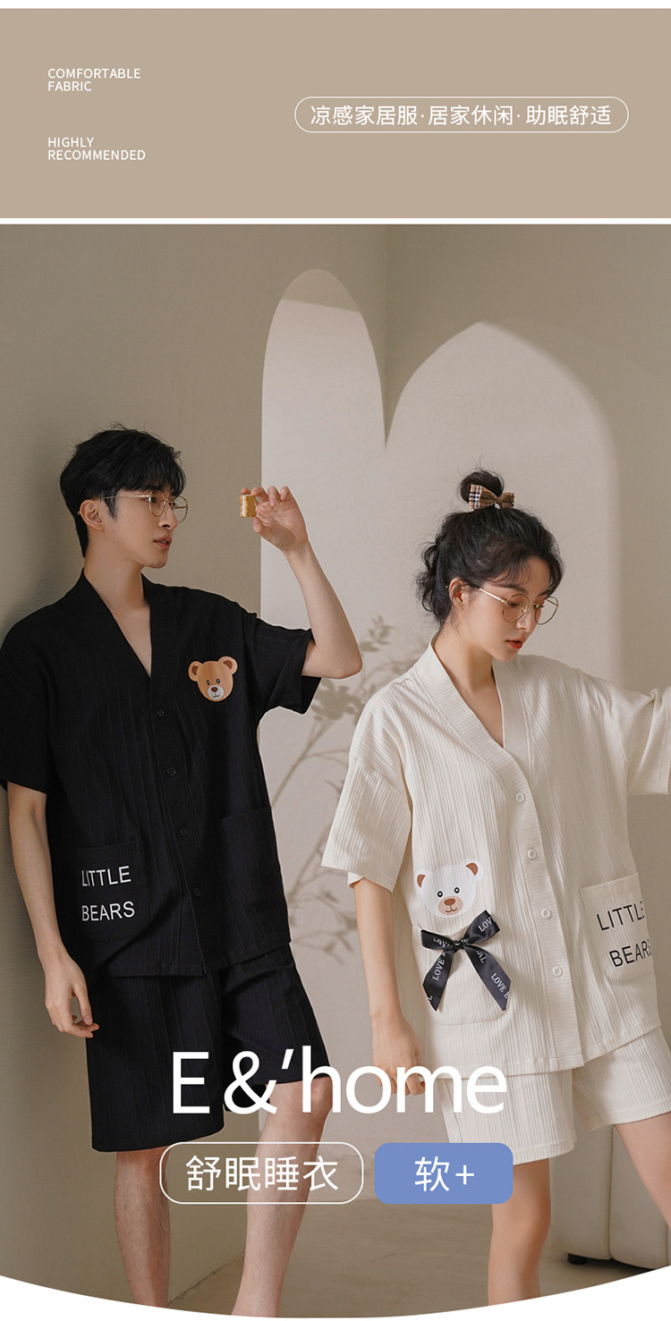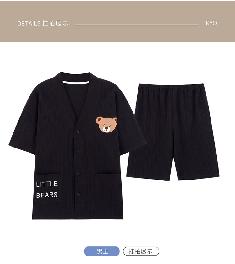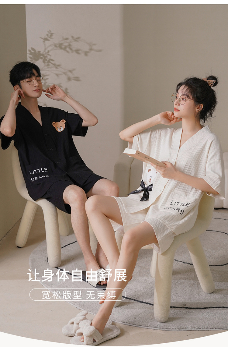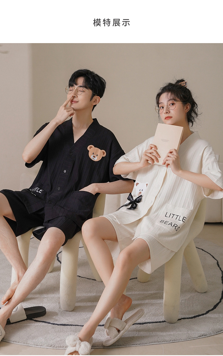 커플 잠옷 여성 기모노 여름 코튼 가디건은 만화 잠옷 남성과 여성 반팔 반바지 옷깃 세트 외부에서 착용 가능스토어 가기