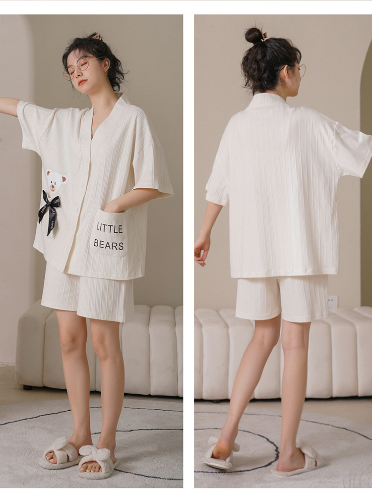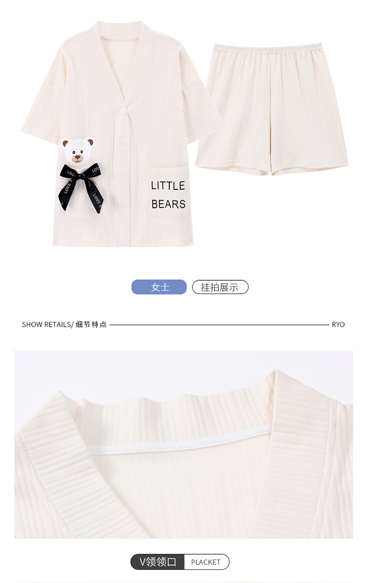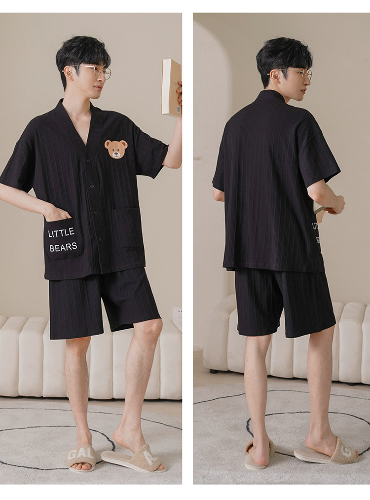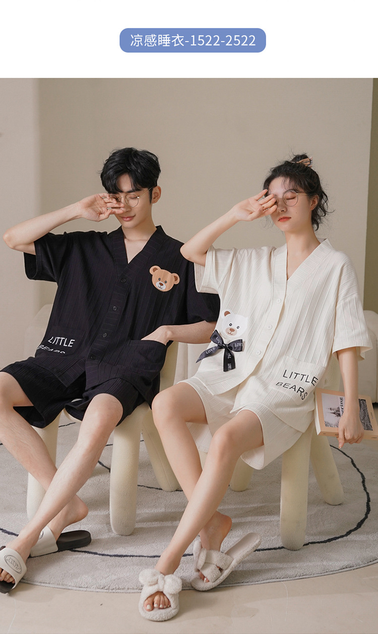 커플 잠옷 여성 기모노 여름 코튼 가디건은 만화 잠옷 남성과 여성 반팔 반바지 옷깃 세트 외부에서 착용 가능스토어 가기