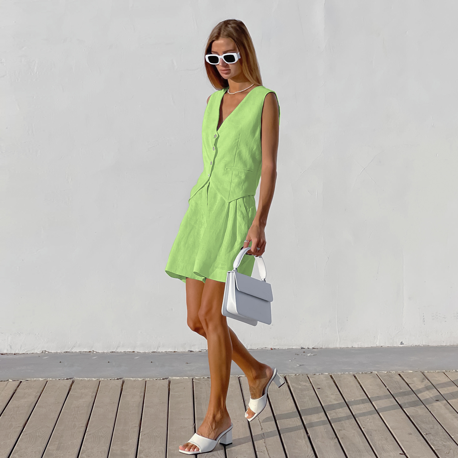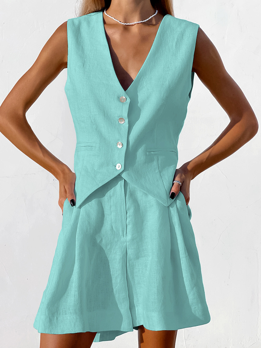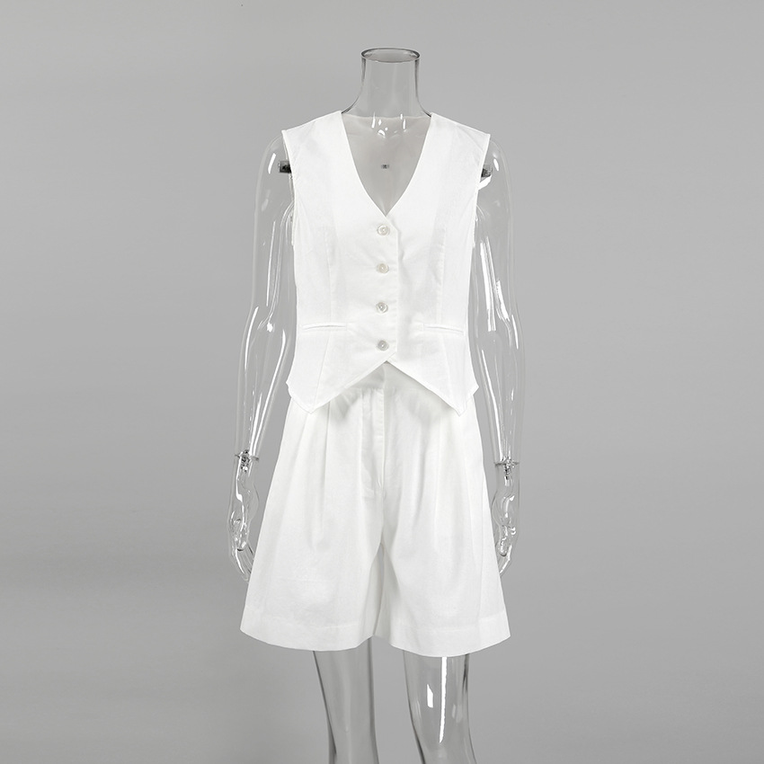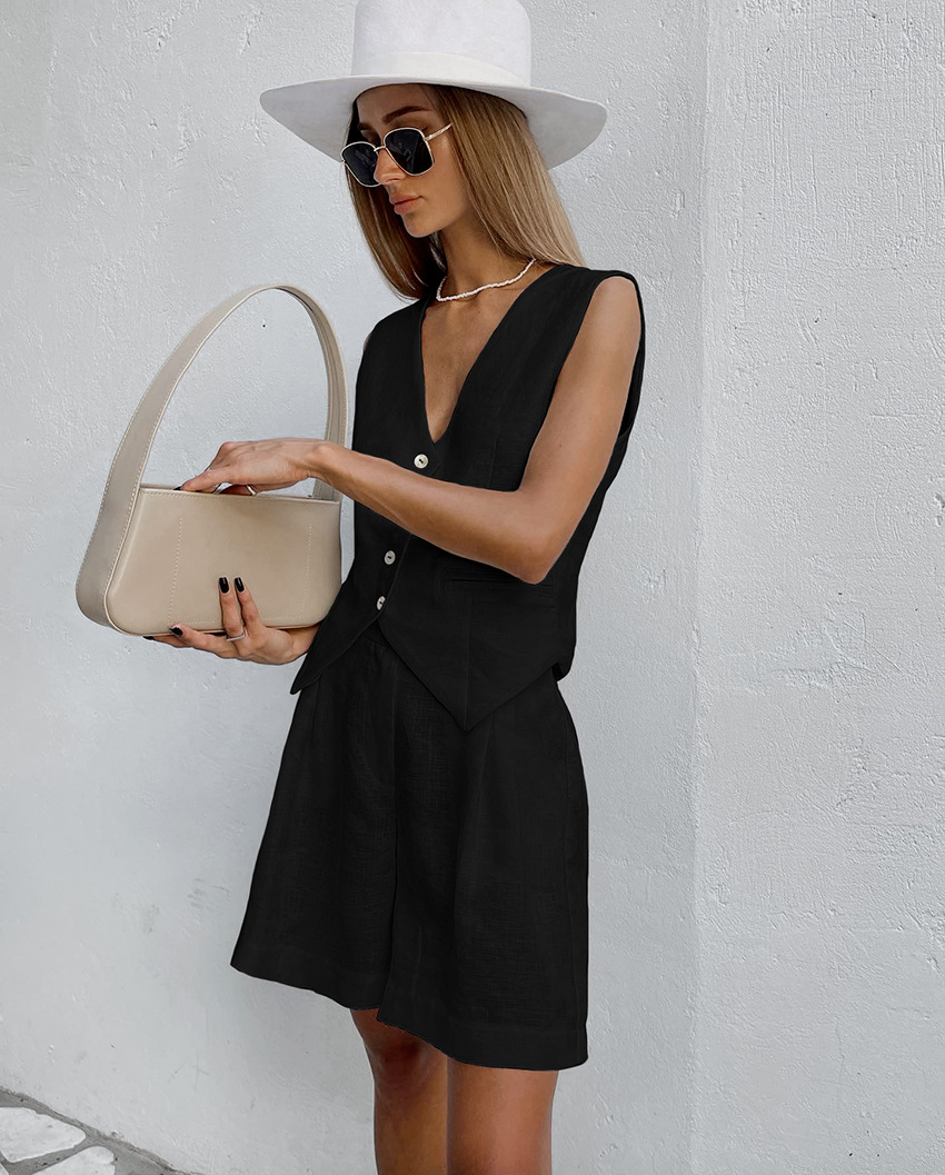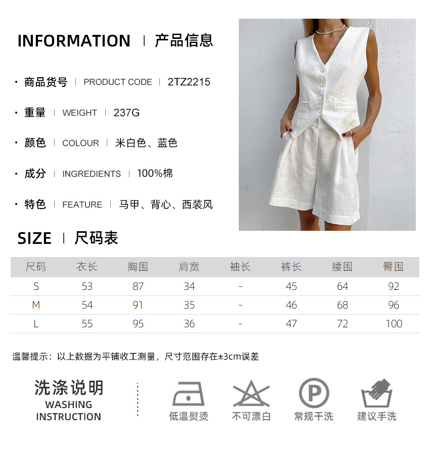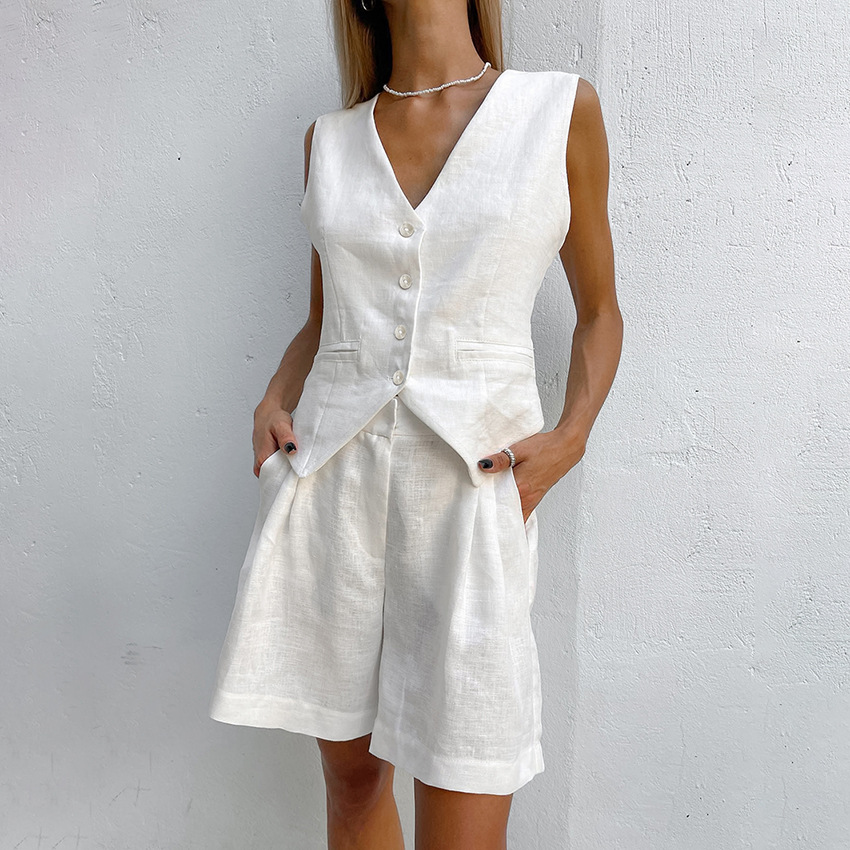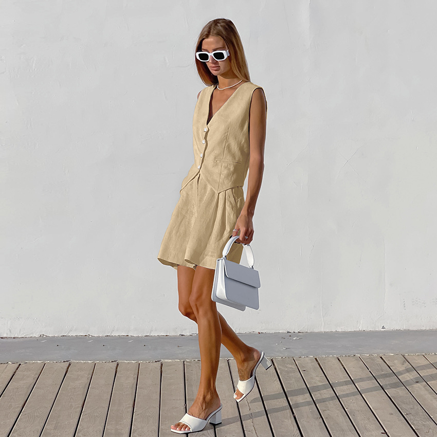 2025 작은 세트 조끼 세트 여름 새로운면 및 린넨 기질 통근 간단한 유럽과 미국의 국경 패션 여성 의류스토어 가기