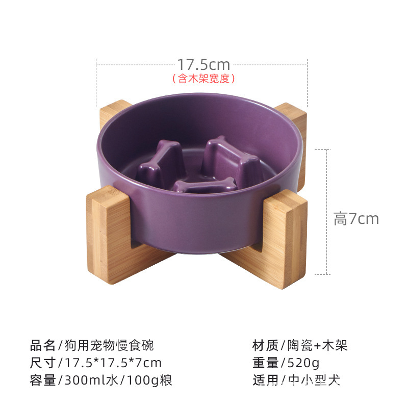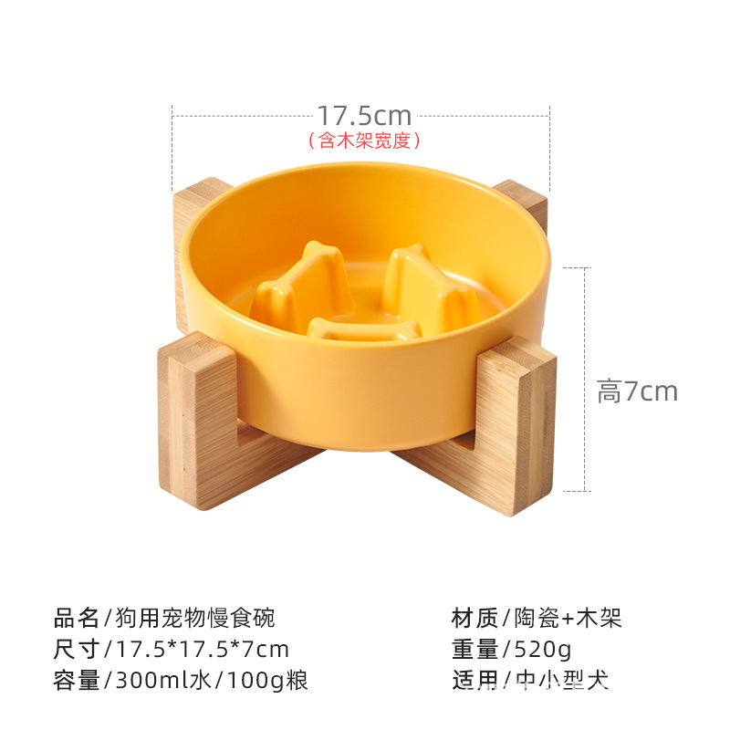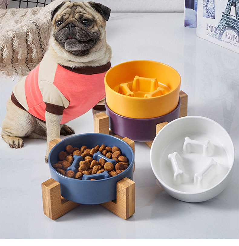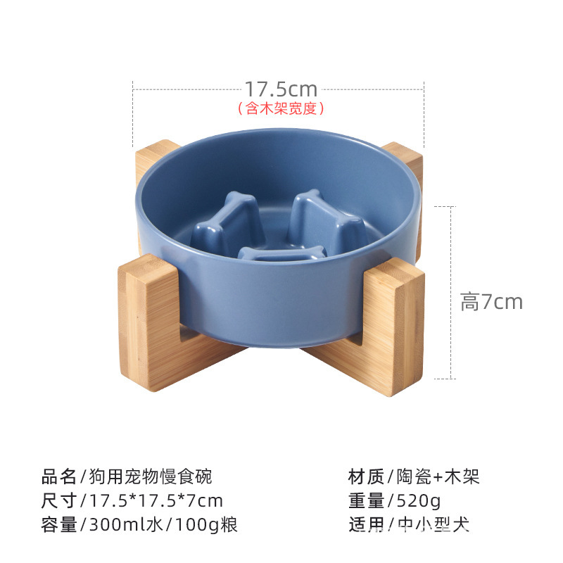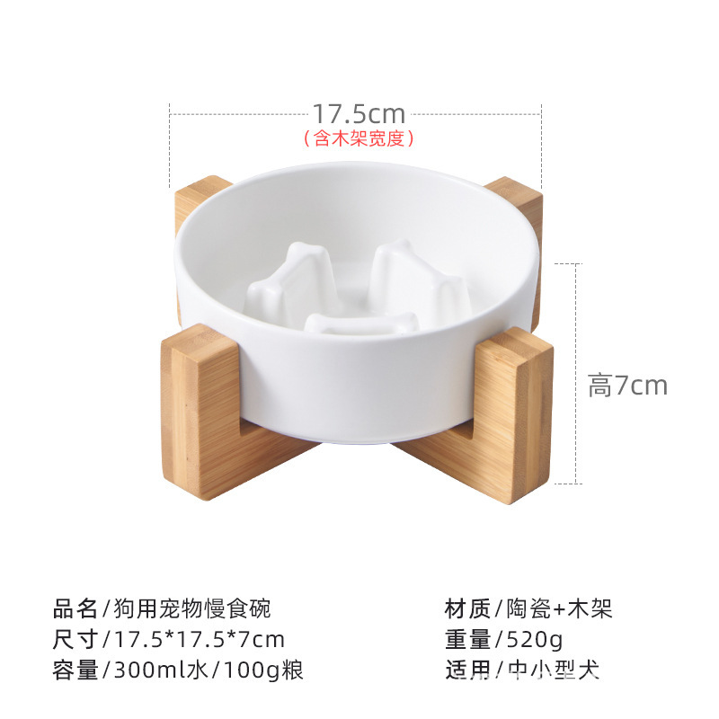 애완 동물 그릇 슬로우 푸드 분지 미끄럼 방지 개 피더 통합 나무 프레임 경추 보호 질식 방지 고양이 그릇 슬로우 푸드 세라믹 개 그릇스토어 가기