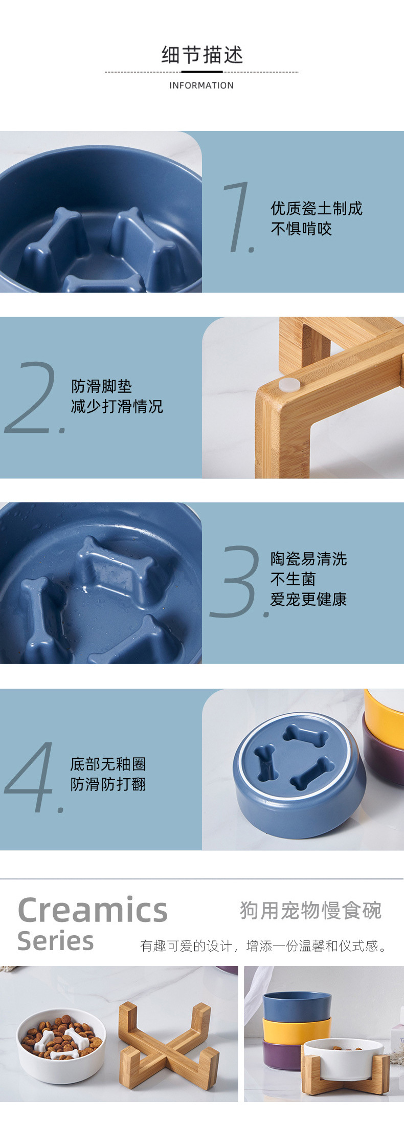 애완 동물 그릇 슬로우 푸드 분지 미끄럼 방지 개 피더 통합 나무 프레임 경추 보호 질식 방지 고양이 그릇 슬로우 푸드 세라믹 개 그릇