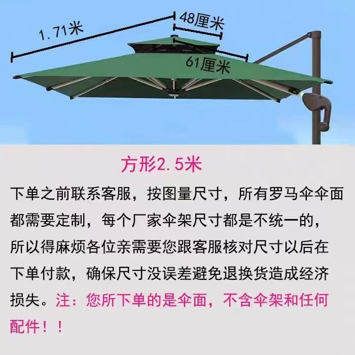 • 맞춤형 더블 탑 카키 2.5m 스퀘어 로마 우산 천(고객 서비스에 문의)