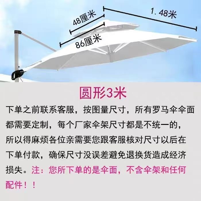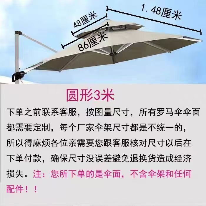 • 맞춤형 더블 탑 미색 3m 원형 로마 파라솔 천(고객 서비스에 문의)