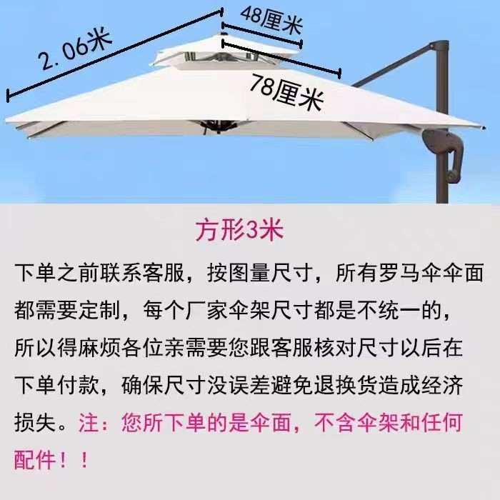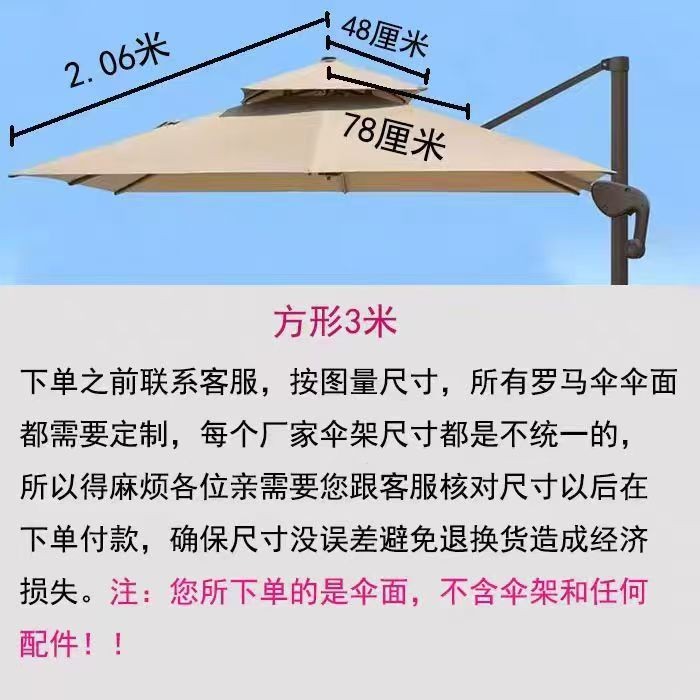 • 맞춤형 더블 탑 미색 3m 정사각형 로마 우산 천(고객 서비스에 문의)