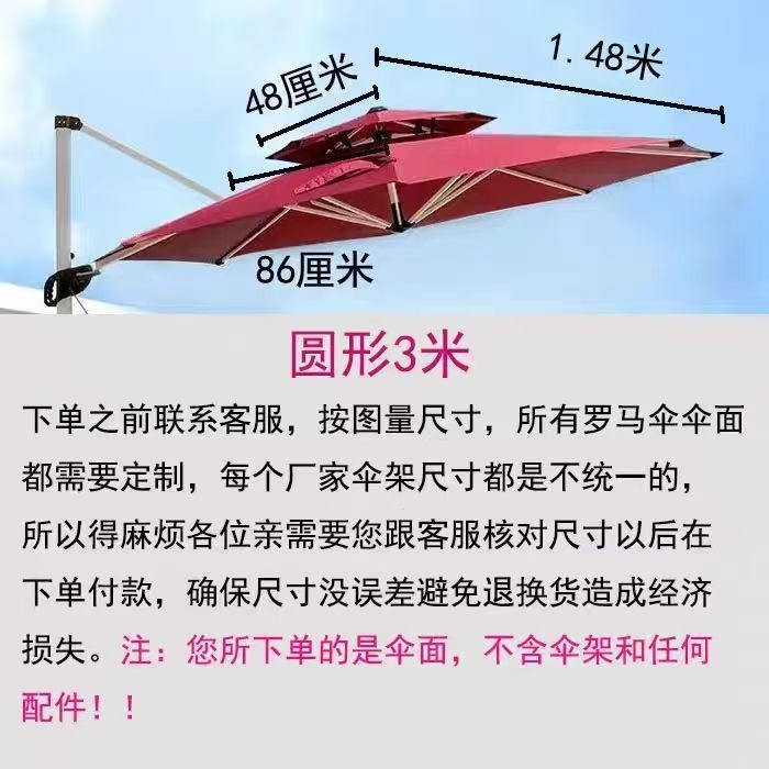 • 맞춤형 더블 탑 버건디 3m 라운드 로마 우산 천(고객 서비스에 문의)